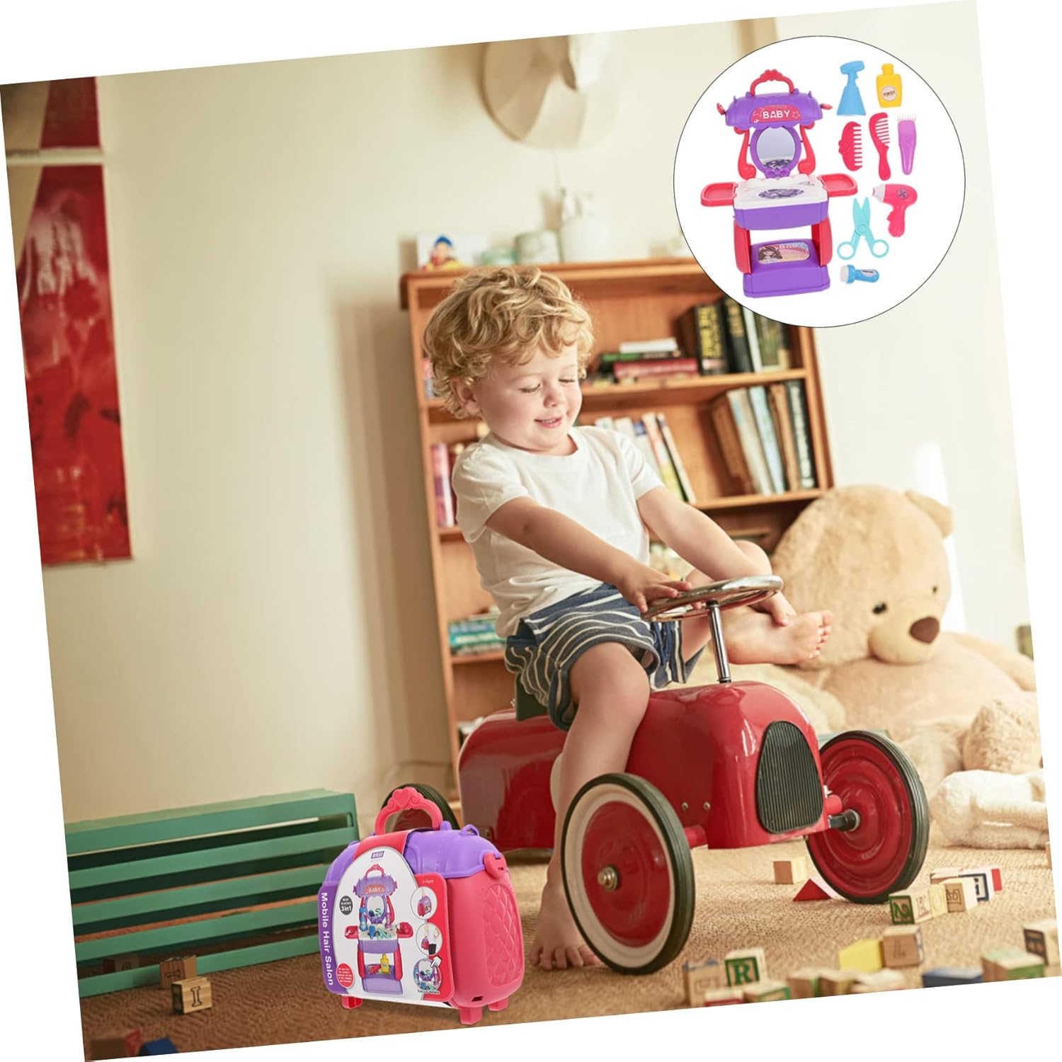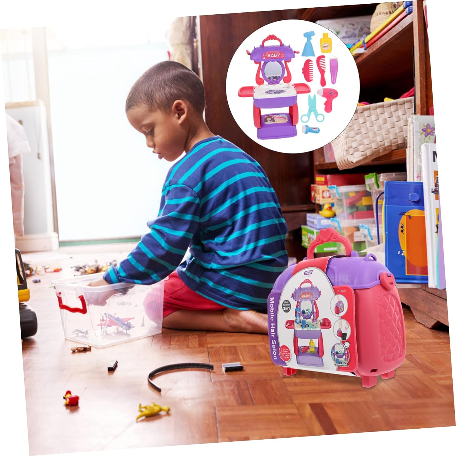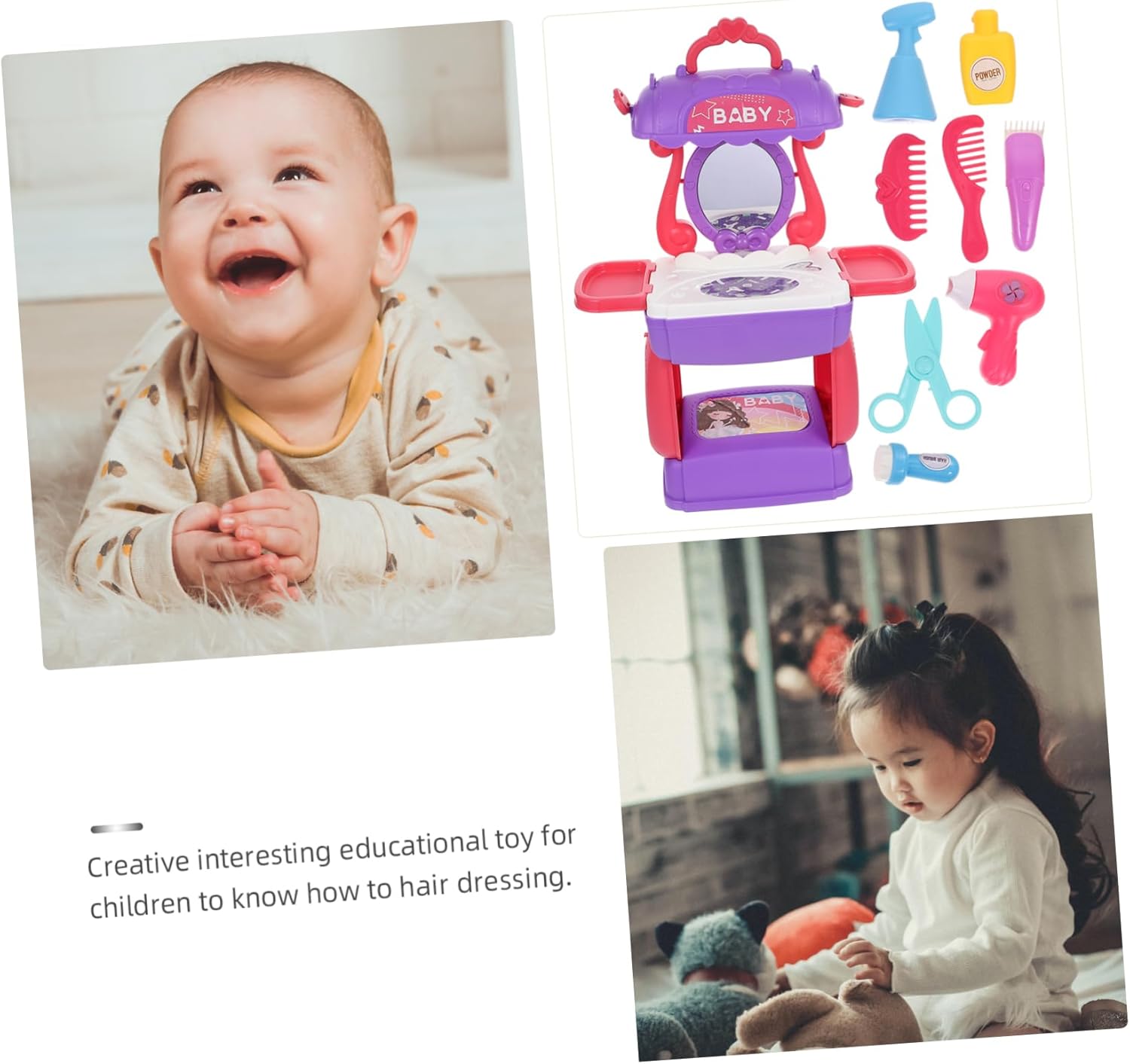 Cosmetici per capelli in plastica - design a valigia portatile, tutti gli accessori per parrucchieri possono essere facilmente riposti in questa custodia pieghevole per cosmetici e portati con te sempre e ovunque, trucco educativo per - è per lo sviluppo del cervello e promuove la tua intelligenza, set da parrucchiere per simulazione di parrucchiere - con design aerodinamico e custodia premurosa per insegnare ai più piccoli come mettere in ordine le proprie cose., Beauty Funny - Aiuta a sviluppare la mente, la creatività e la capacità di pensiero e allena la coordinazione occhio-mano e la flessibilità della mano attraverso la propria educazione precoce Simulazione di acconciature - con aspetto realistico, può stimolarti, sviluppare abilità pratiche, cognitive