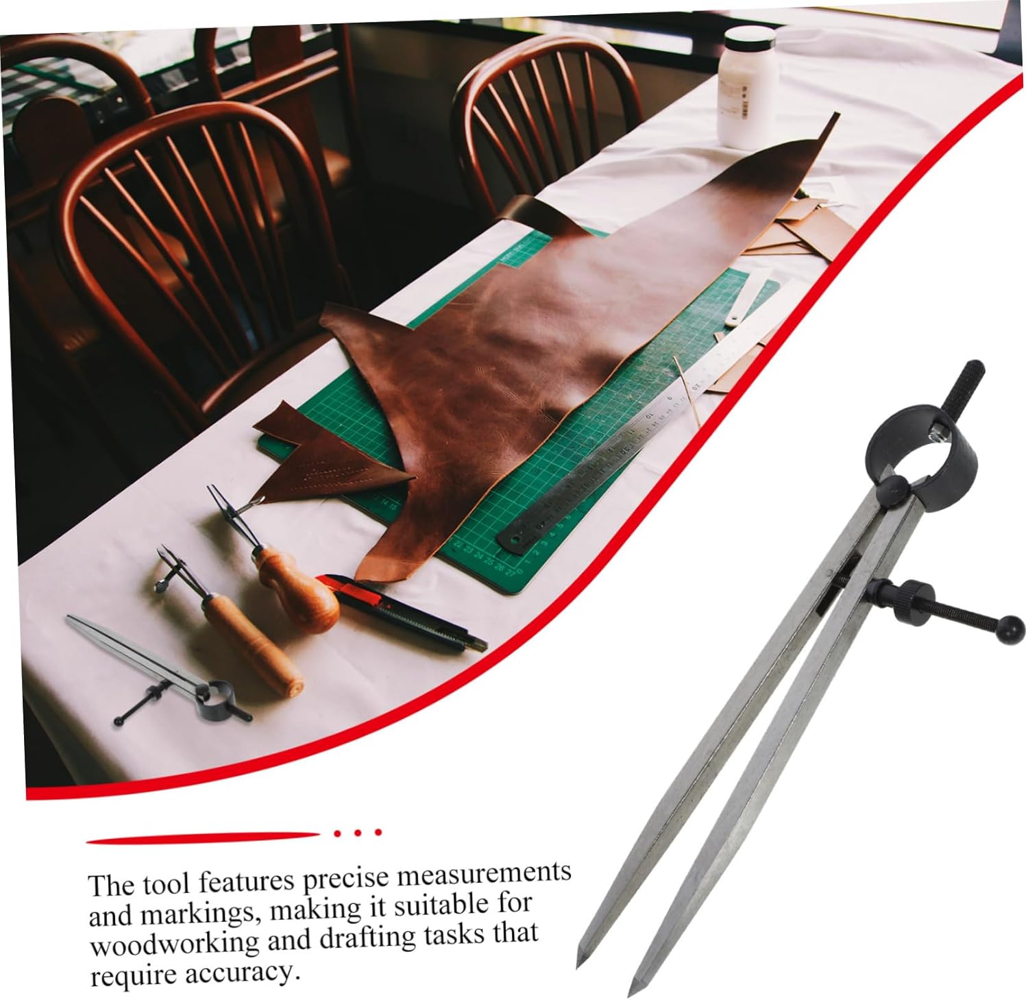 Bussola in pelle multifunzione: la scala di facile lettura e il meccanismo di regolazione regolare lo rendono semplice da usare e regolare alla misura desiderata, scriba in metallo Calibri di spaziatura: questo strumento è un articolo versatile ed essenziale per qualsiasi officina o cassetta degli attrezzi, poiché può essere utilizzato per una varietà di attività, comoda bussola in pelle Bussola ad arco di precisione: che tu sia un professionista o un appassionato del fai da te, questo strumento affidabile soddisferà sicuramente le tue esigenze, geometria della bussola Bussole artigianali in pelle: lo strumento presenta misurazioni e marcature precise, che lo rendono adatto per attività di lavorazione del legno e di disegno che richiedono precisione, tracciatore di linee di pannelli Strumento per disegnare cerchi: questo strumento per misurare la spaziatura è realizzato in e - materiale di ferro, garantendo la sua longevità e resistenza alla corrosione, bussola da disegno