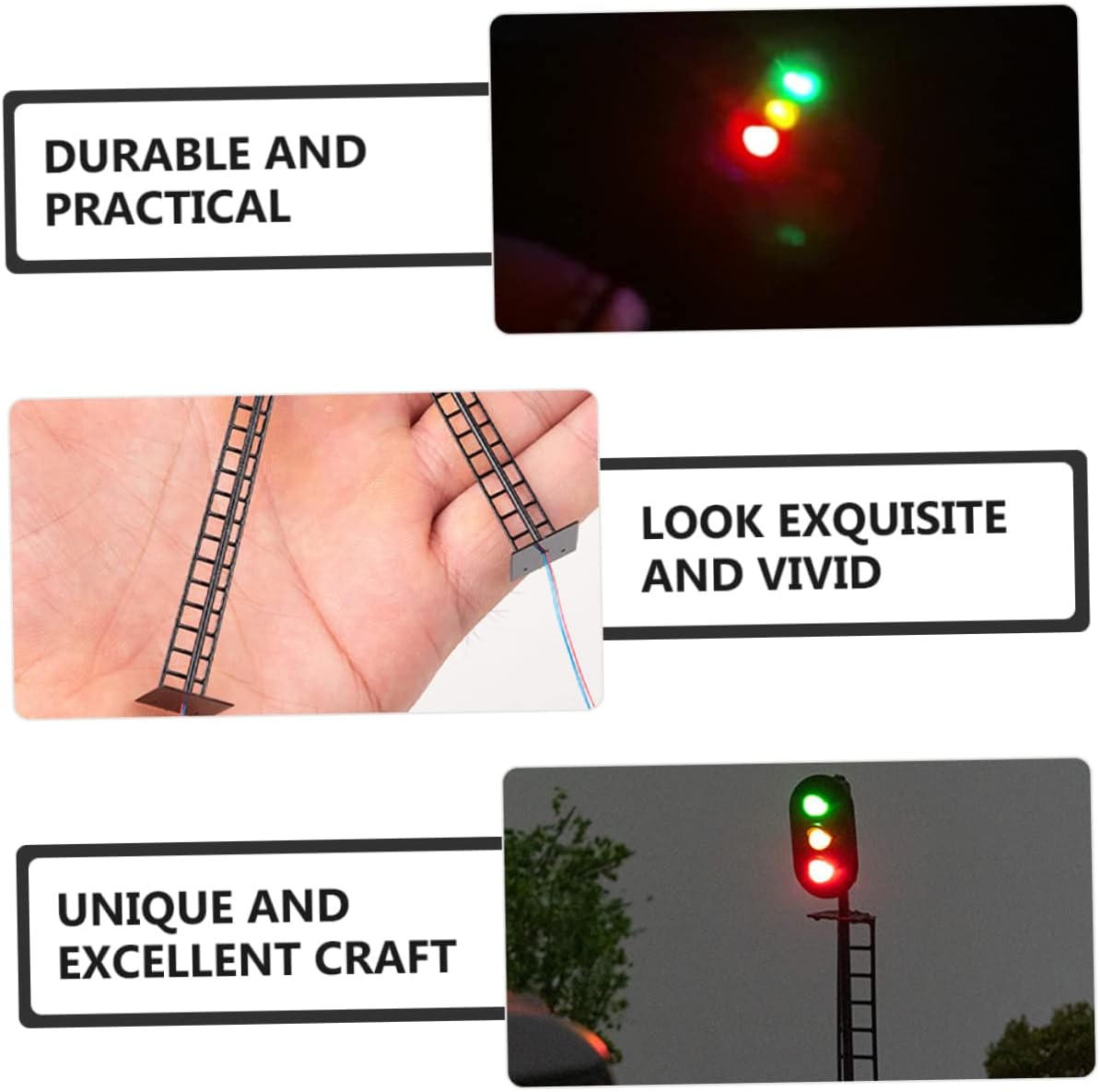 Giocattolo del segnale del passaggio a livello: il modello del semaforo ferroviario è realizzato in materiale resistente e facile da giocare. Fermata del traffico: posizionala nella tua mini casa per dettagli più realistici, rendi la mini casa più affascinante. Mini decorazione da giardino: il materiale è sicuro e durevole, resistente all'usura e pratico per un uso prolungato. Modello di luce di segnalazione: adatto per mini casa, ottima decorazione per la tua mini casa, crea scene ferroviarie colorate. Mini decorazione domestica: splendidamente progettata e realistica, con un alto grado di riproduzione realistica, quindi non puoi metterla giù.