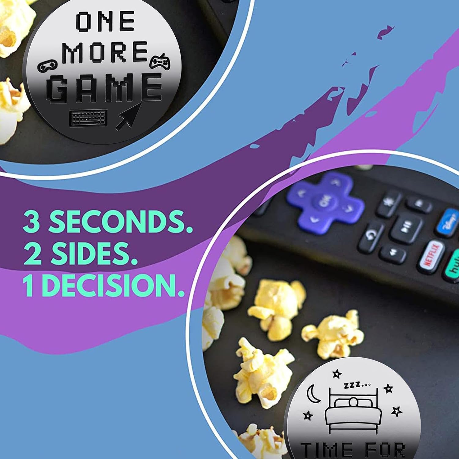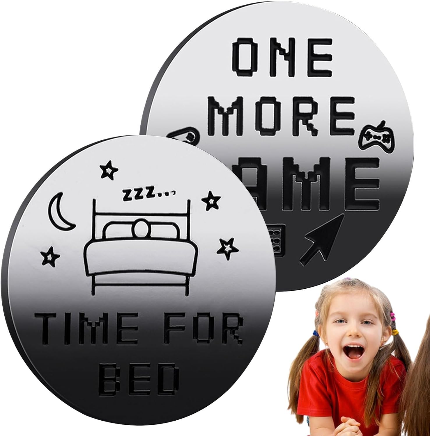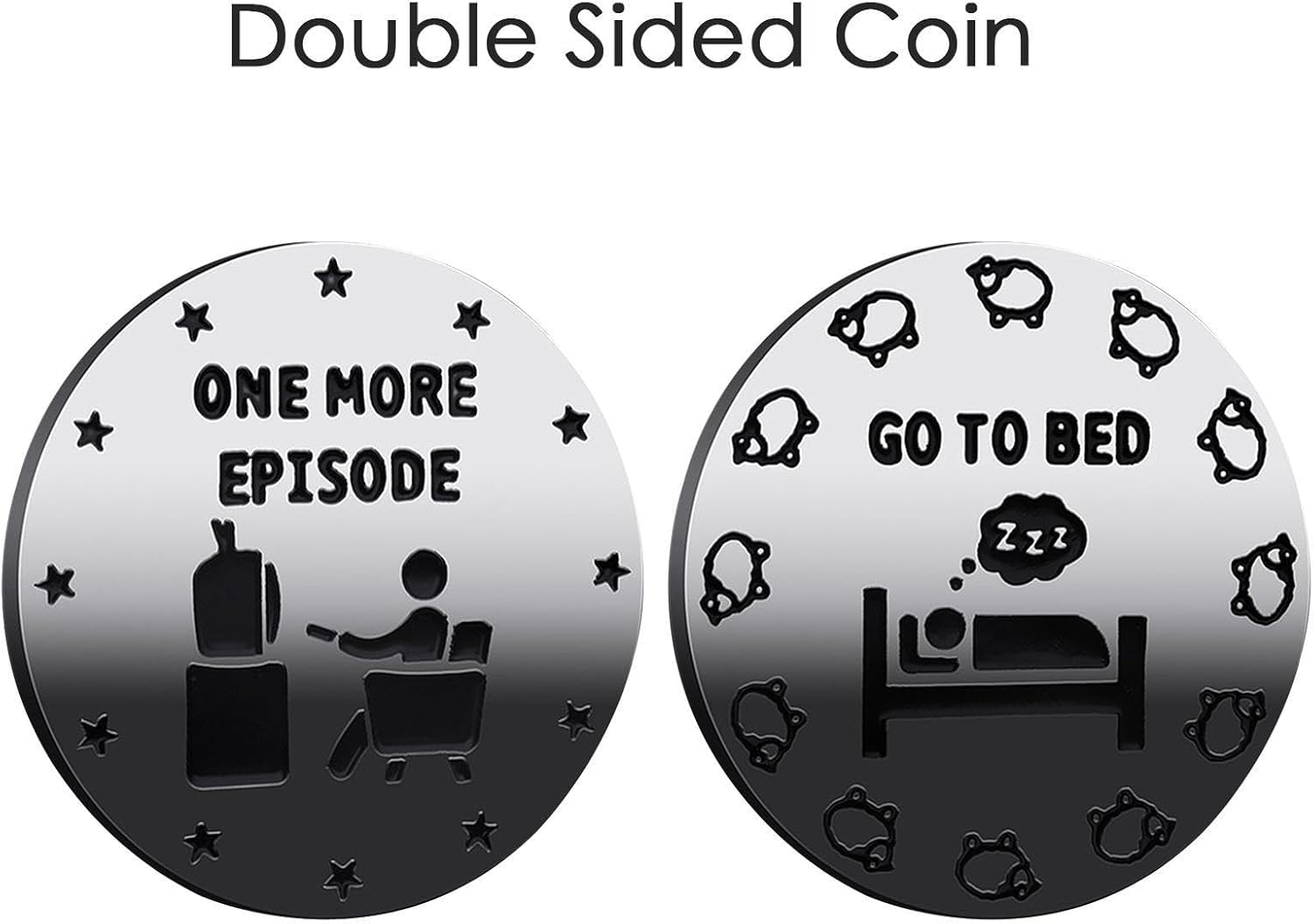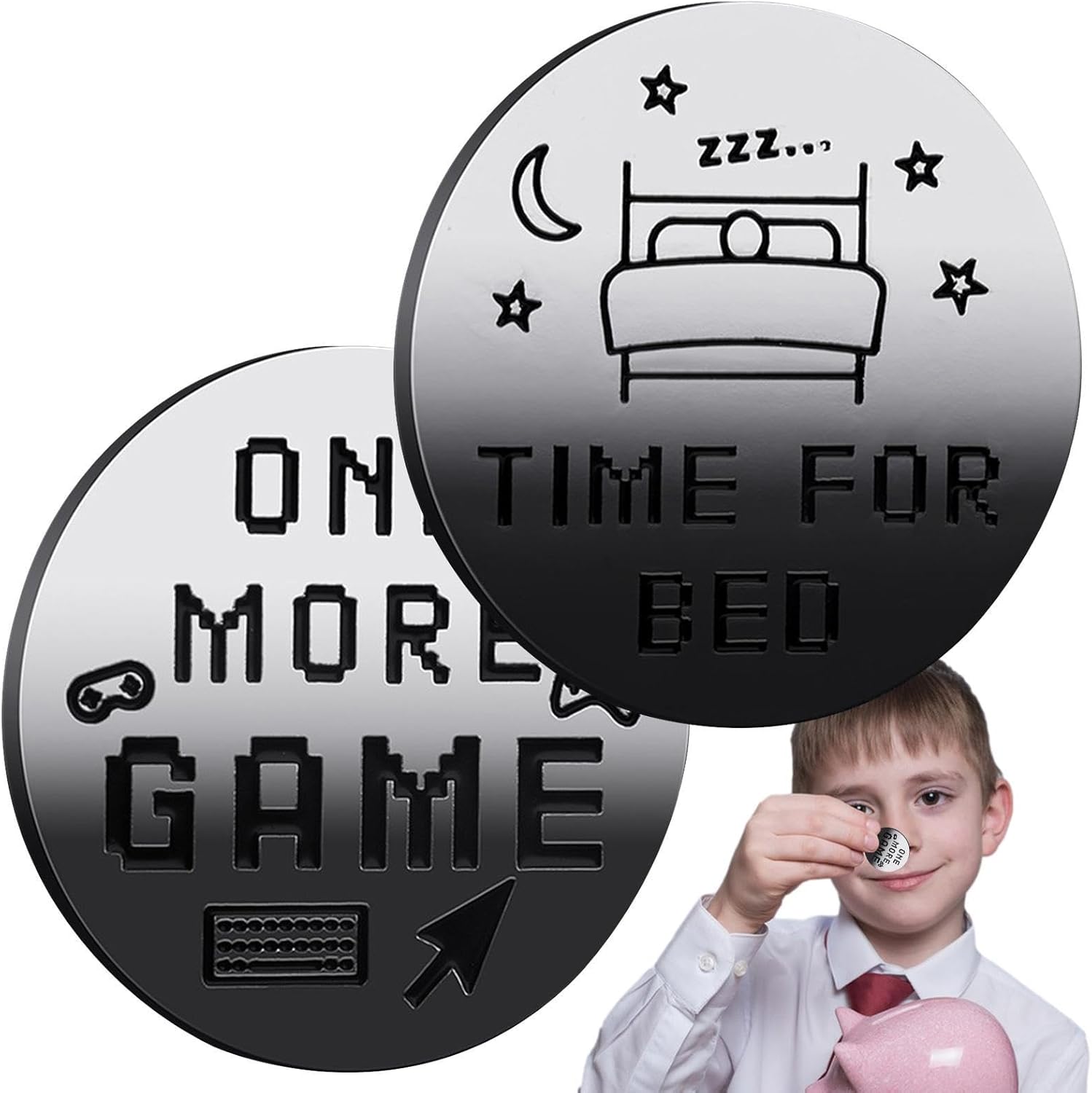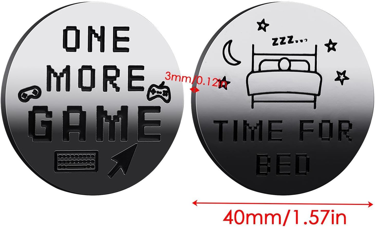 PROCESSO DECCIVITÀ SEMPLICE: modo unico per delle scelte: la moneta da letto aggiunge un elemento di alla routine della tua ora di andare a letto. Un lato mostra giochi e altri spettacoli, lasciando la decisione al caso. per coloro che lottano con il processo decisionale o vogliono rendere la buona corica più eccitante. Design a doppia faccia: il suo design a doppia faccia presenta lo stile A, dicendo "1 altro gioco / per letto", per gli appassionati di giochi, mentre Style B, dicendo "1 altro episodio / vai a letto", è preso di mira per i fan del dramma. Robusto e durevole: realizzato in ferro con elettroplazione, la moneta da letto è resistente alla ruggine e all'usura. La sua costruzione affidabile garantisce un uso a lungo termine, rendendolo un'aggiunta robusta e resistente Facile da trasportare: la moneta da andare a letto è portatile e leggera, con una dimensione di 40 mm di diametro e di 3 mm di spessore. Puoi facilmente farla scivolare in tasca o nel portafoglio e portarlo ovunque. È un modo divertente e conveniente per prendere decisioni quando ti senti indeciso o assonnato. Regalo creativo: questa moneta a doppia faccia è un'ottima idea regalo per i propri cari che desiderano un modo divertente per risolvere le scelte importanti. Il suo design compatto rende comodo da trasportare, garantendo che sia sempre prontamente disponibile. Scegli il modo più intelligente ed eccitante per rendere difficile
