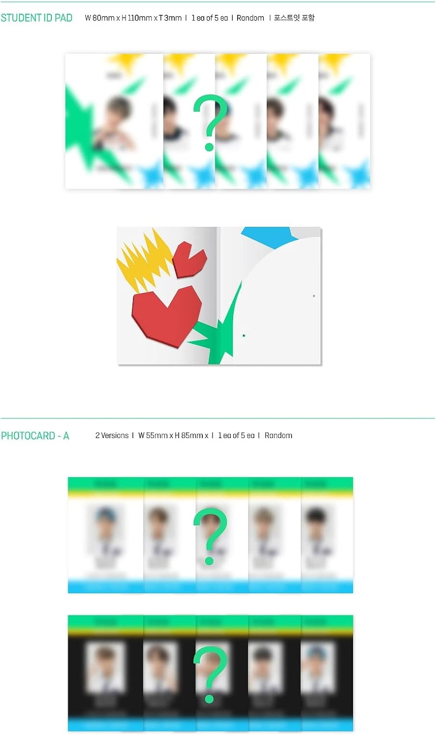 From South Korea. 100% Original Brand New Item. Reflected in the HANTEO and GAON Charts. Release Date : 2019.10.22 Package : 100p Photobook + CD + Student ID PAD (Random 1 out of 5) + Photocard-A (Random 1 out of 5) + Photocard-B (Random 1 out of 5) + Sticker Pack (8pcs) + Viewer Glassses & Store Gift : Double-Side Extra Photocards Set