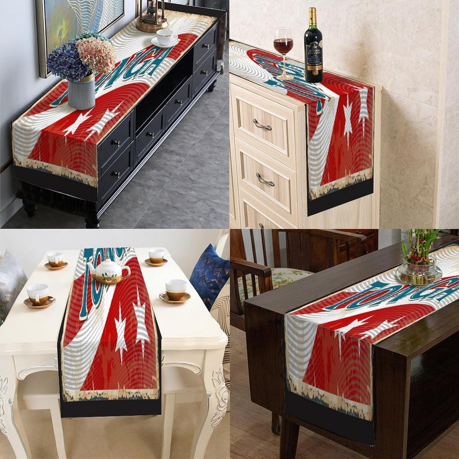 Tonga - Runner da tavolo con bandiera Tonga, decorazione stagionale per cucina e tavolo da pranzo, decorazione per interni ed esterni, decorazione per casa, sala da pranzo, feste, 33 x 228 cm