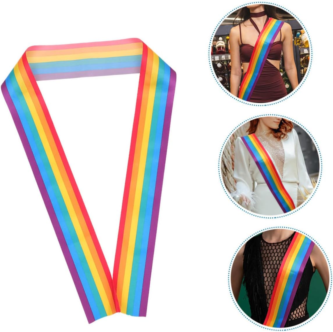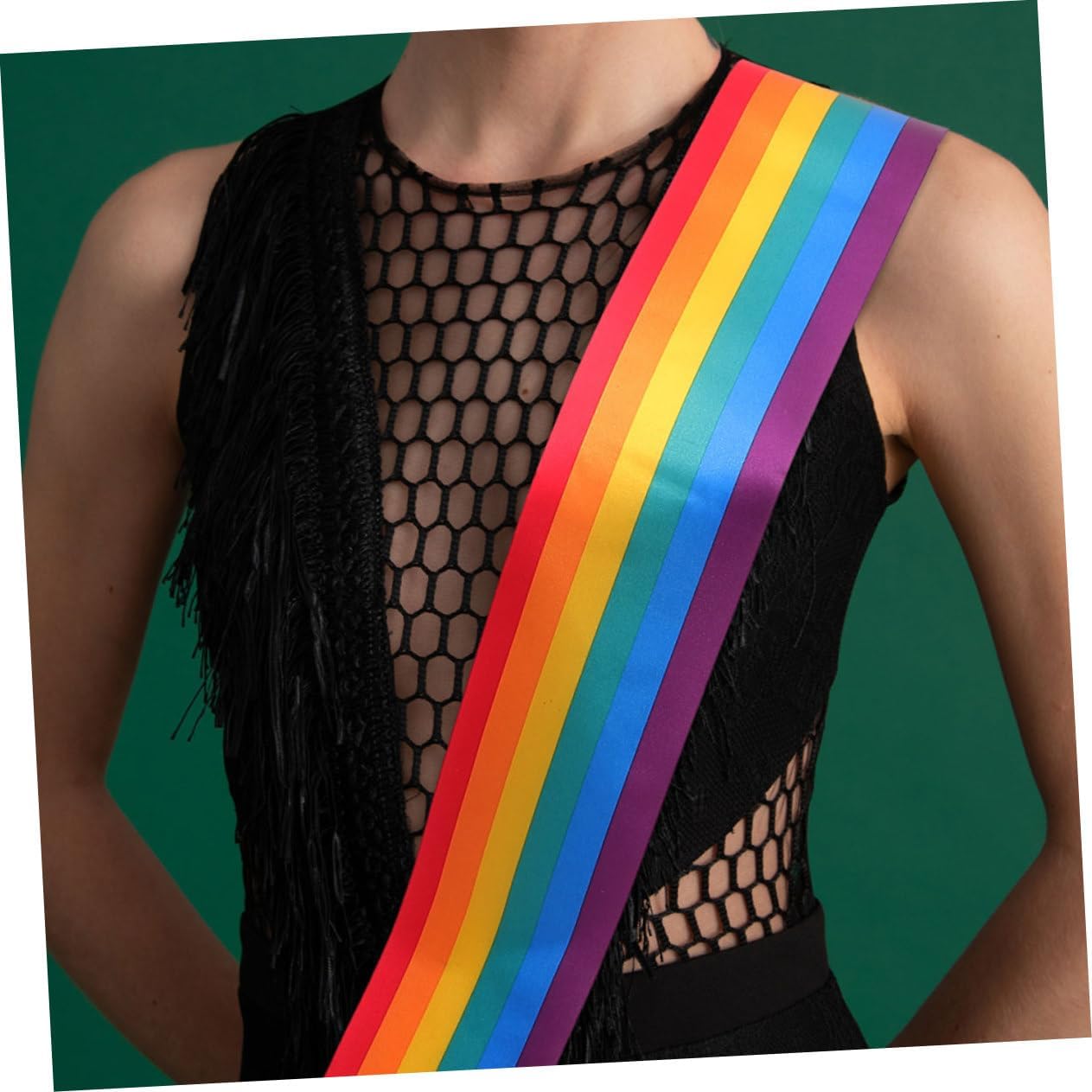 Fascia arcobaleno per lesbiche: realizzata con materiali di qualità, con un'eccellente fattura, leggera e non appesantirà troppo le tue spalle, fascia arcobaleno lesbica Fascia arcobaleno per feste: adatta a qualsiasi tipo di vestito e può rendere più forte l'atmosfera della festa, fornitura di fasce arcobaleno per feste Fascia per la festa dell'orgoglio: i colori vivaci della fascia arcobaleno un accessorio visivamente accattivante e che cattura l'attenzione, pride accessories Fascia a strisce arcobaleno: la fascia è un bel accessorio per feste che ti rende più attraente alla festa, fascia per eventi di parata Fascia decorativa: realizzata in tessuto con lavorazione dettagliata, questa fascia è comoda e morbida da indossare, fascia arcobaleno