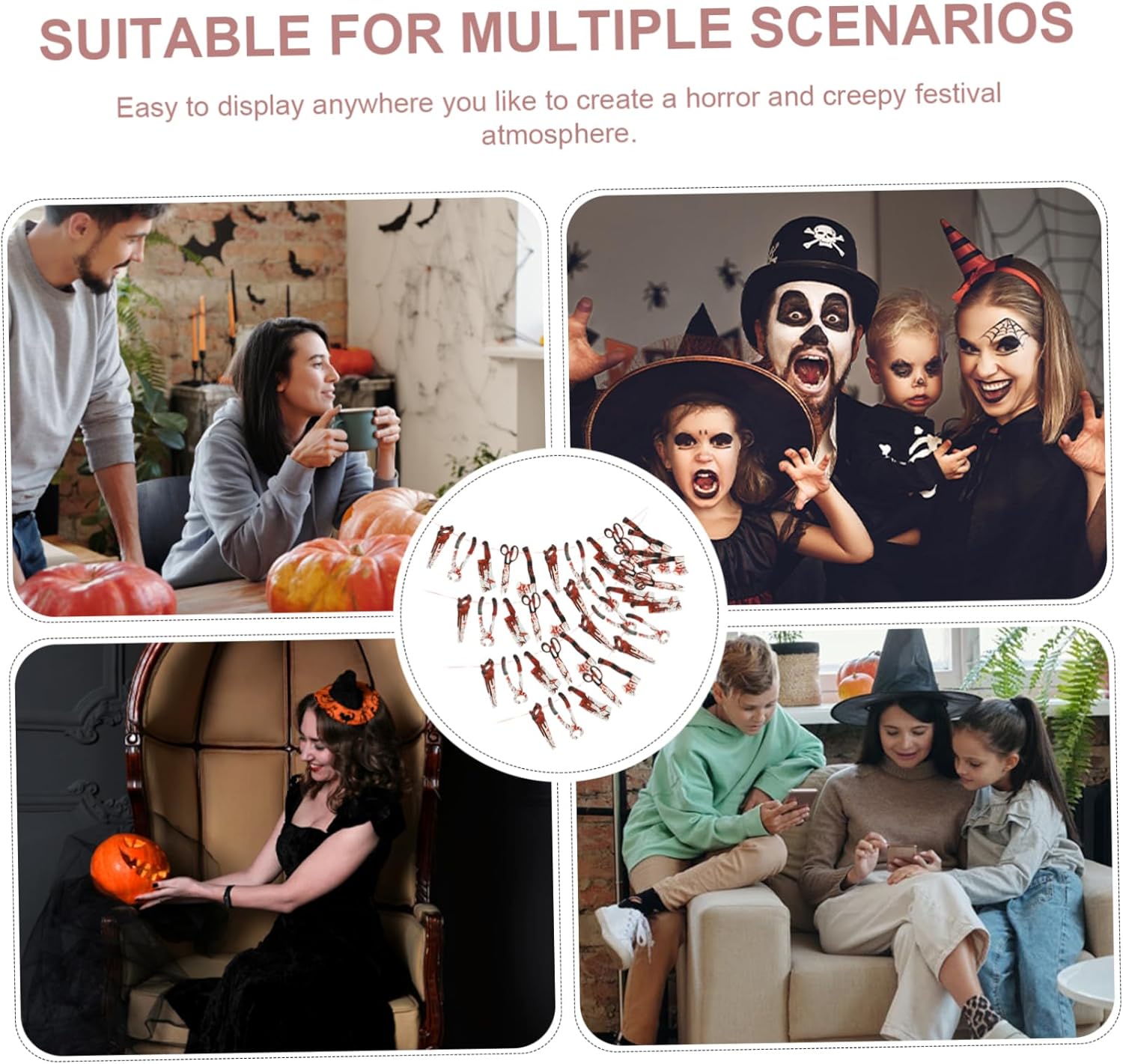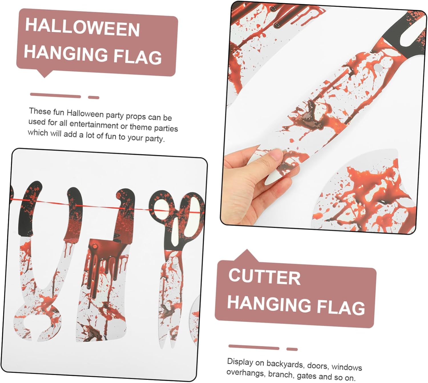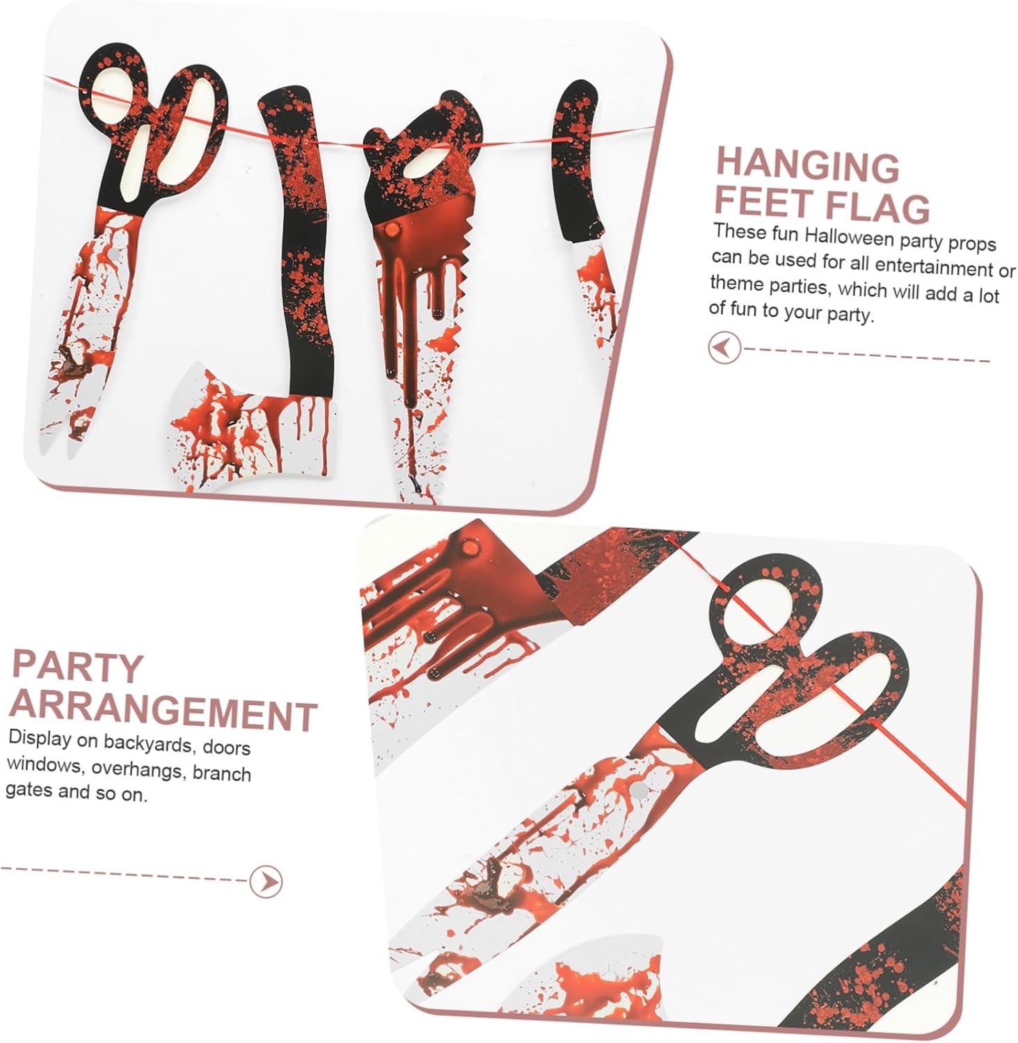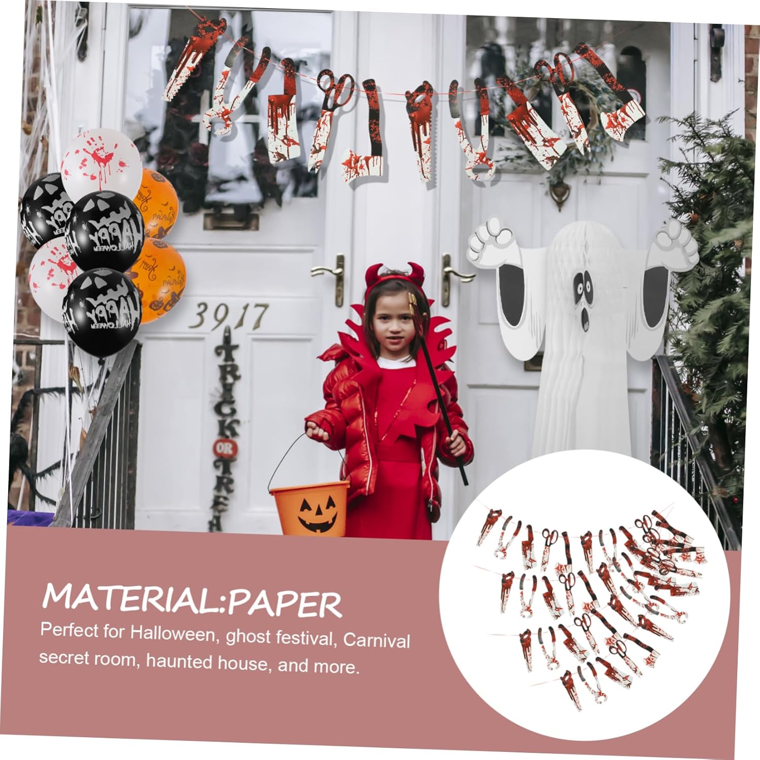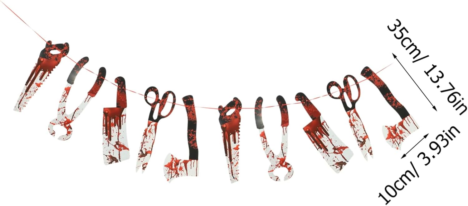 Forte motivo a tema Halloween sul banner, design insanguinato, unico per decorare la tua casa o festa di famiglia. Il materiale cartaceo fine garantisce che non sia facile scolorire e offre una migliore esperienza di utilizzo. Appendilo al muro, alla porta o al soffitto e trasforma qualsiasi luogo desideri in una spettrale scena di Halloween. Adatto per uso interno ed esterno, aggiunge un'atmosfera horror a case infestate, bar, case e feste. La combinazione di tutti gli elementi di Halloween ha lo scopo di celebrare l'inizio della festa di Halloween.