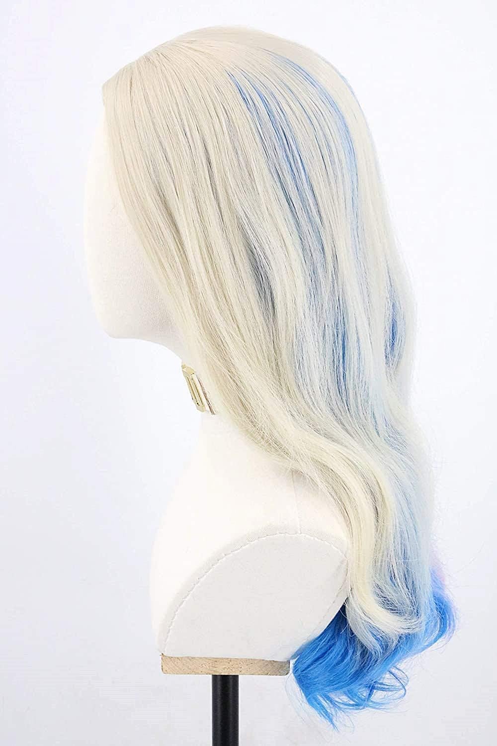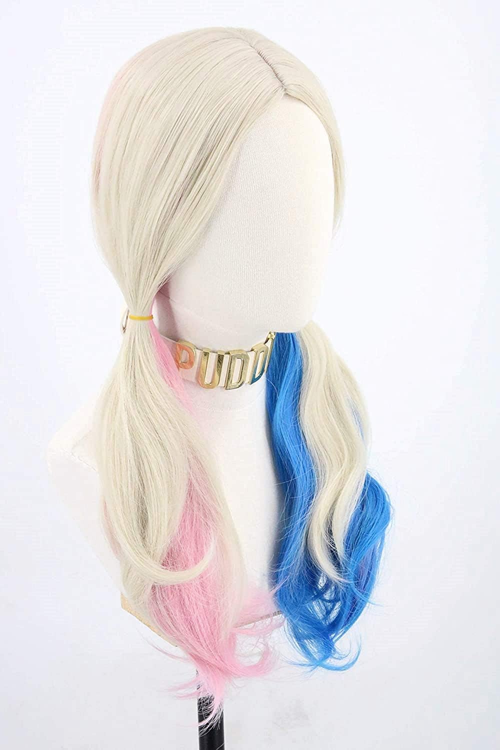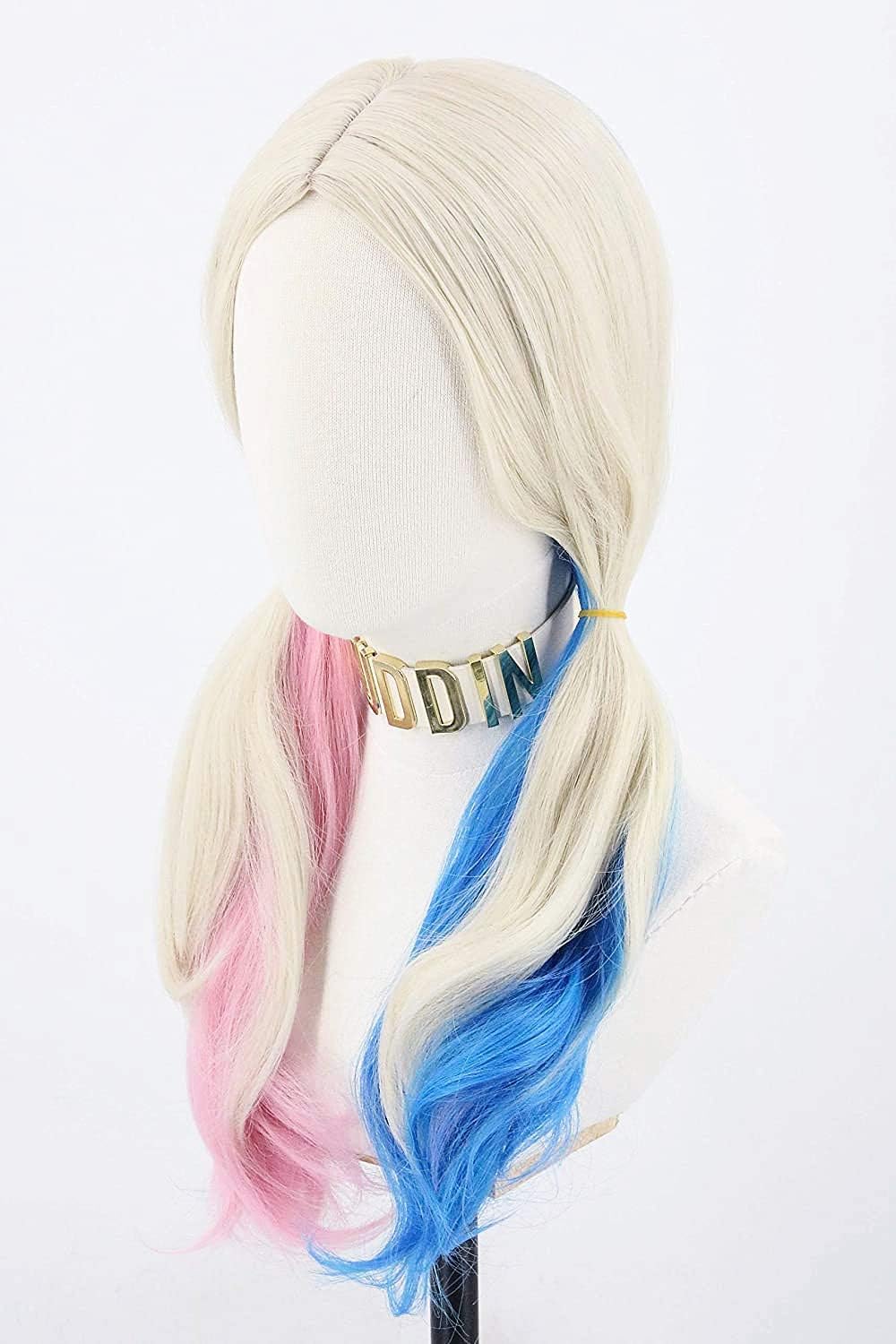 Parrucca harley quinn , bionda con codini blu e rosa , fedele riproduzione dei capelli della protagonista del film Suicide Squad , adatta per travestimenti di carnevale feste a tema e molto altro... Materiale: 100% fibra sintetica resistente al calore. Liscia e setosa, naturale come i capelli veri, Resistente al calore: 180°C. Dimensione regolabile: Gancio regolabile, circonferenza della testa 54 cm-61 cm, si adatta alla maggior parte delle persone. Questi codini lunghi e biondi si riconoscerebbero tra mille: uno ha le punte rosa e l'altro blu. Infila questa parrucca per completare la tua trasformazione nella pazza e capricciosa Harley Quinn di Suicide Squad. Per risultati ottimali, utilizzare con una retina per parrucche. Lunghezza: circa 60cm. lo indossa, e può portare più fiducia e più fascino!