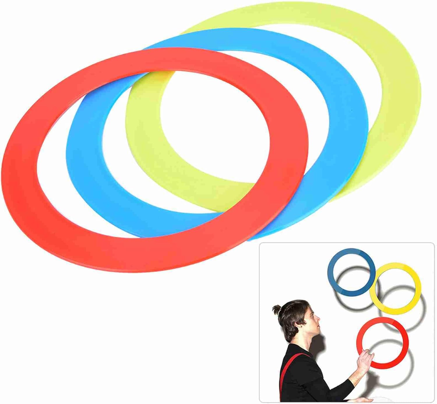 [DUREVOLI E SICURI]: realizzati con materiali sicuri, questi anelli da giocoleria sono costruiti per resistere al gioco attivo e garantire sicurezza. [ELASTICITÀ RESILIENTE]: con una buona elasticità, questi anelli di lancio mantengono la loro forma anche durante acrobazie rigorose, fornendo prestazioni costanti. [SVILUPPARE LA MANO]: rafforza l'abilità manuale e le capacità motorie con questi divertenti anelli da lancio, rendendoli adatti al gioco all'aperto dei bambini. [SET COLORATO]: goditi un'esperienza di giocoleria colorata con questo set di anelli in tre colori vivaci: blu, rosso e giallo, creando una performance visivamente sorprendente. [GIOCATTOLO VERSATILE DA ESTERNO]: adatti per l'intrattenimento all'aperto e la giocoleria, questi anelli da lancio offrono divertimento ed eccitazione senza fine per bambini e adulti.
