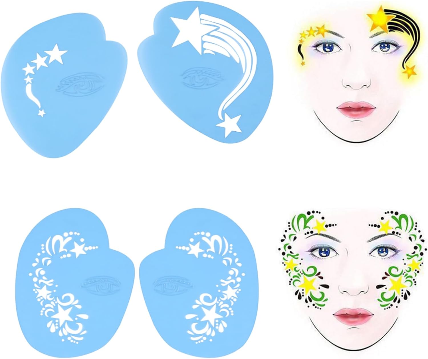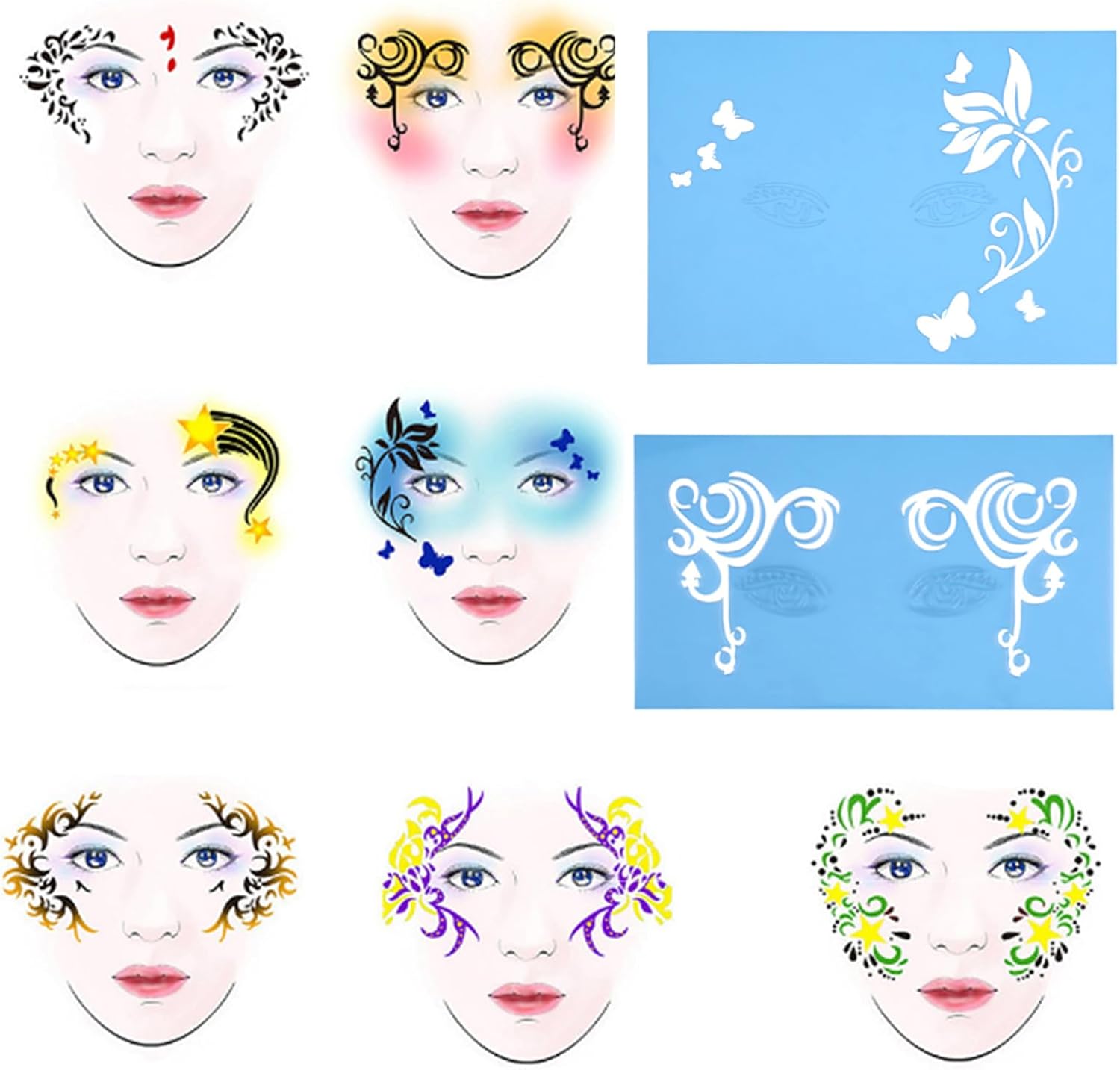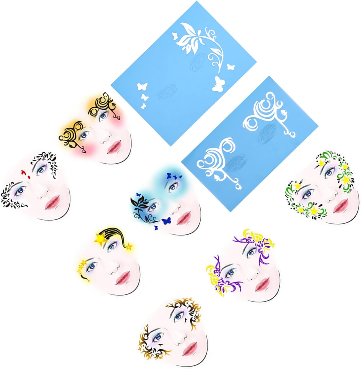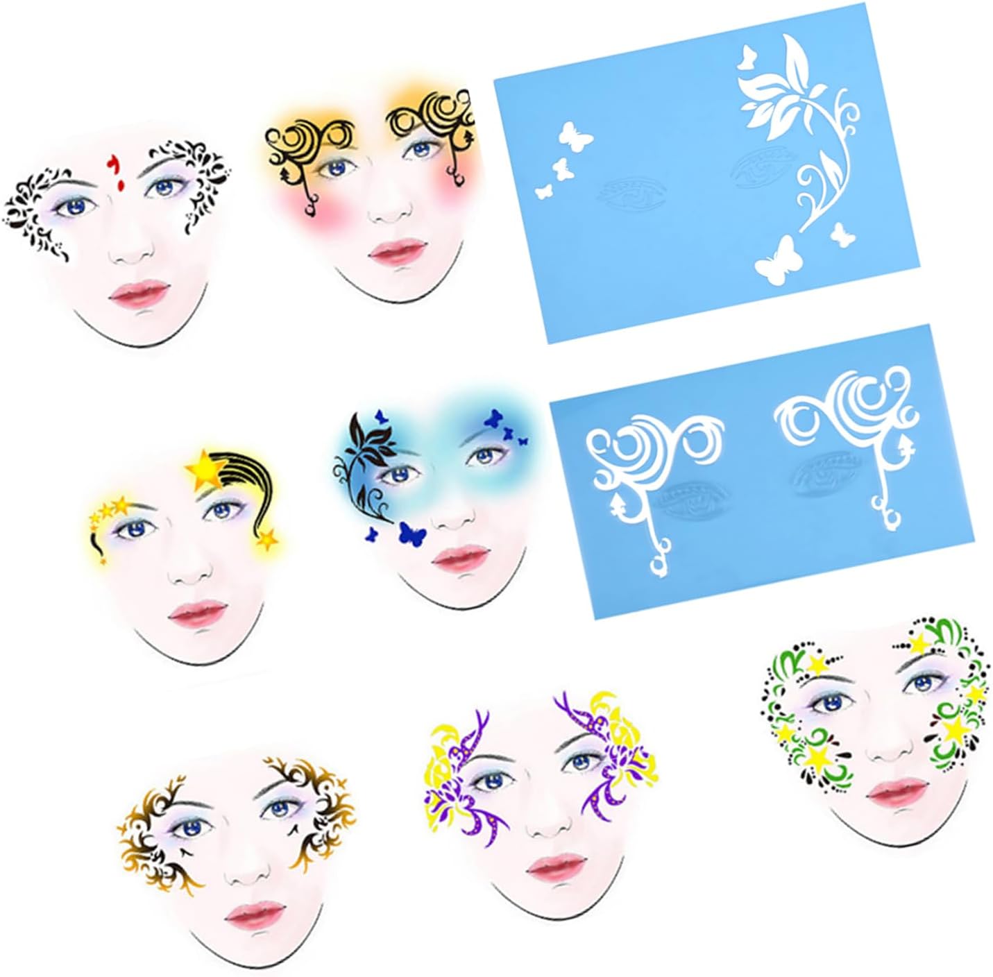 [DESIGN RIUTILIZZABILE] Gli stencil per pittura per il viso sono riutilizzabili per un uso duraturo, consentendo creatività ed espressione artistica illimitate. [VARI MODELLI] Con 13 pezzi in 7 stili diversi, inclusi fiori e farfalle, questi stencil offrono un'ampia gamma di possibilità di design. [FACILE APPLICAZIONE] Questi stencil ti consentono di dipingere in modo rapido e preciso su viso e corpo, ottenendo risultati dall'aspetto professionale con il minimo sforzo. [UTILIZZO VERSATILE] Ogni stencil può essere utilizzato singolarmente o combinato con altri, offrendo infinite opzioni di personalizzazione. [VESTIBILITÀ PERSONALIZZABILE] Gli stencil possono essere facilmente piegati e modellati per adattarsi ai contorni del viso, garantendo una vestibilità adatta a qualsiasi design.