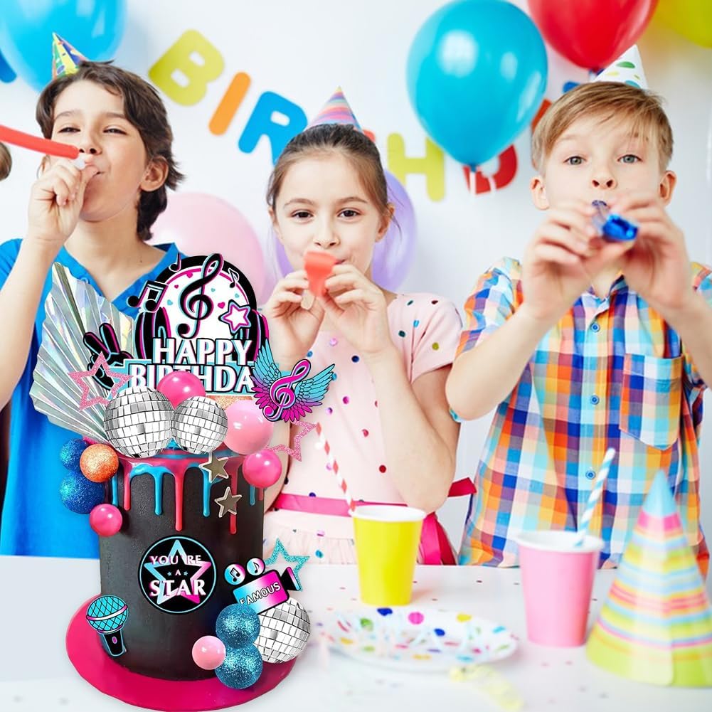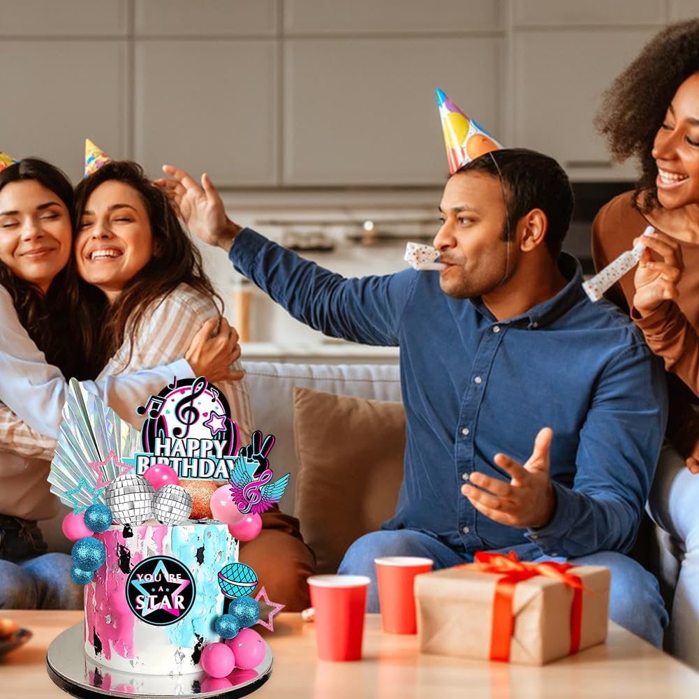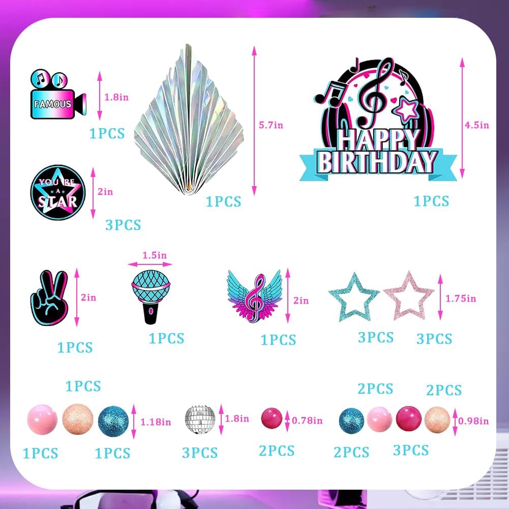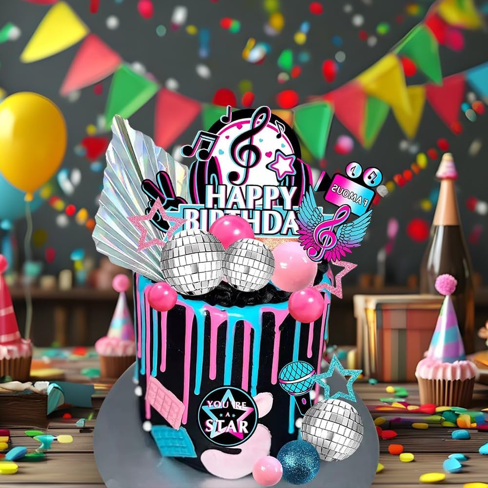 Set di decorazioni per torte a forma di palla da discoteca con chitarra: riceverai 32 decorazioni per torte a forma di note musicali, 1 decorazione per torta a forma di chitarra e 1 decorazione per torta di buon compleanno. Tutti gli accessori decorativi sono confezionati in una scatola, quindi non preoccuparti di eventuali danni durante il trasporto. Materiale: le nostre decorazioni per torte a forma di musica sono realizzate in cartone di alta qualità da 300 g con stuzzicadenti, che le rendono attraenti e resistenti! Decorazione per torte fai da te: ogni decorazione per torta a forma di palla da discoteca e nota musicale è dotata di un bastoncino. Puoi inserirlo direttamente nella torta o usare il bastoncino per fissarlo, decorare la torta a strati e divertirti ancora di più. Decorazione per torte accattivante: questo set completo di sfere da discoteca e decorazioni per torte è adatto per decorazioni di torte per feste e per molti tipi di cibo da festa, come cupcake, muffin, torte, crostate, dessert, gelati, frutta, biscotti e altri dessert, rendendo torte o cupcake più attraenti e gustosi. Ampiamente utilizzati: queste sfere da discoteca e decorazioni con note musicali sono perfette per feste di compleanno a tema discoteca, feste musicali, decorazioni per torte di compleanno, feste a tema anni '70-'90, feste a tema retrò, matrimoni, anniversari, addii al nubilato, addii al nubilato e molto altro ancora.