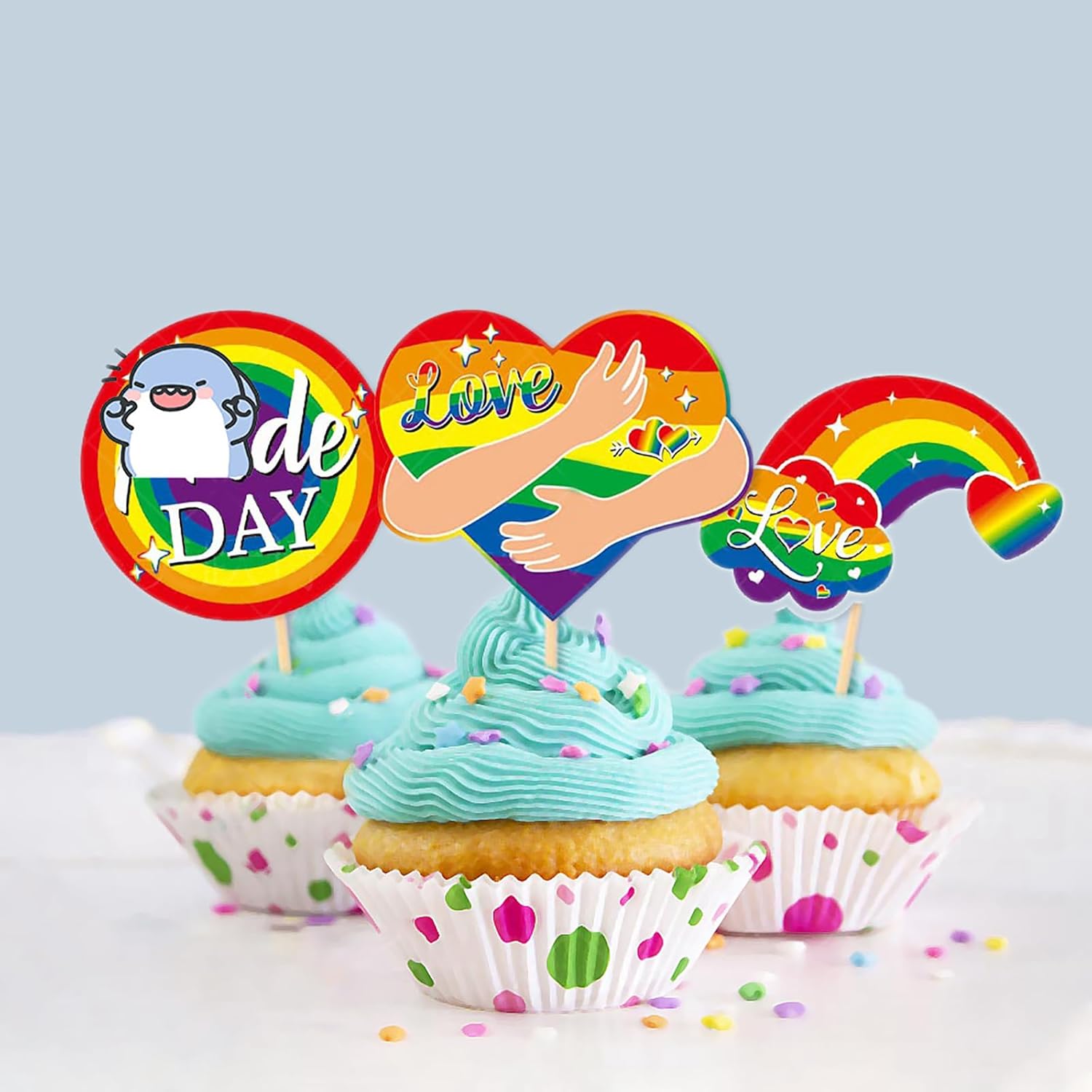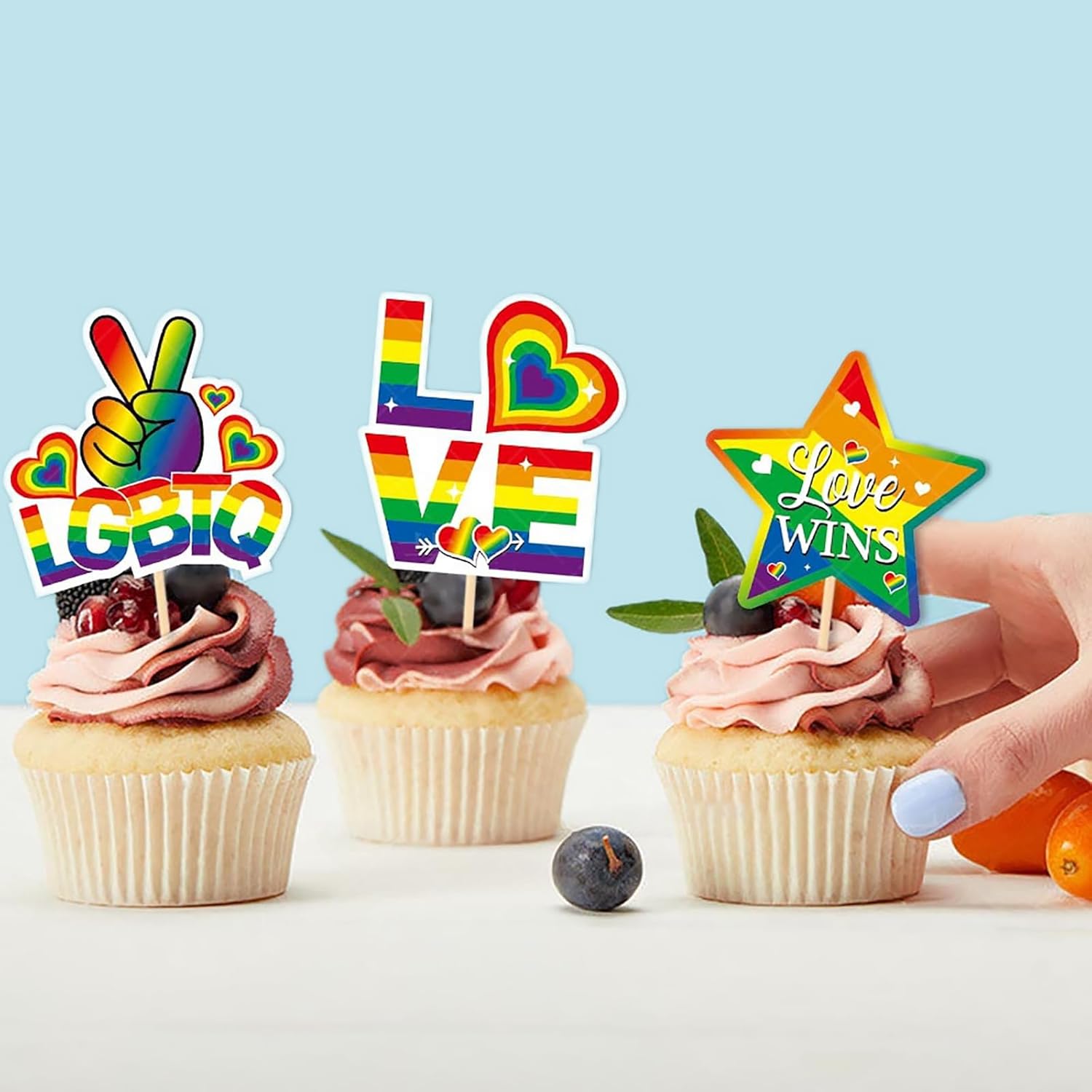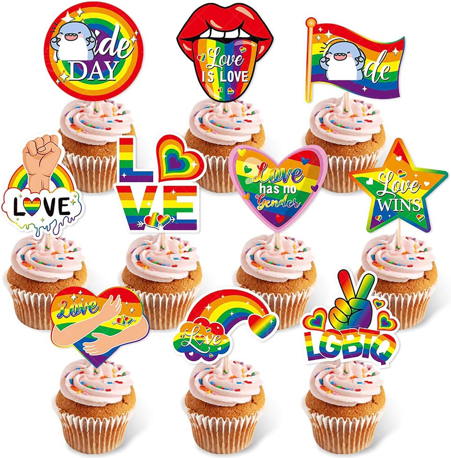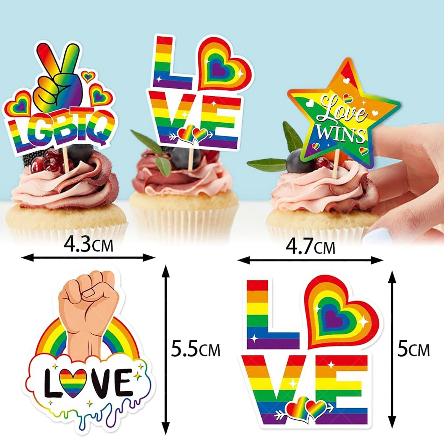 Questi toppers per torta con bellissimi disegni sono ideali per decorazioni per cupcake, ottimi per esprimere il tuo amore per il tuo partner e aumentare l'atmosfera festosa I toppers per cupcake Pride Day sono fatti di cartone e legno, che sono atossici e sicuri per il cibo, durevoli e robusti, non facili da deformare o rompere I toppers per cupcake Pride Day sono spessi e abbastanza resistenti da poterli riutilizzare Adatti per antipasti, frutta, dessert, panini e torte, rendendo la festa più divertente con questi bellissimi toppers Divertente è facile da mettere nelle tue torte e cupcakes per rendere la tua torta dolce più deliziosa.
