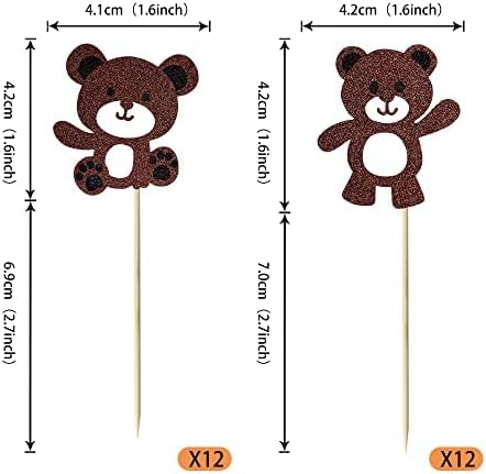 Materiale: i nostri toppers per cupcake sono realizzati in cartone glitterato su un solo lato spesso di alta qualità. Confezione: contiene toppers cupcake da 24 pezzi. che può soddisfare le tue diverse esigenze di decorazione, questi toppers per cupcake sono preassemblati, puoi usarli direttamente quando li ricevi Dimensioni: la dimensione è 5,4 x 3,5 pollici / 1,7 x 4,2 pollici / 2 x 4,2 pollici / 2,7 x 4,2 / 1,2 x 3,9 pollici / 2 x 4,2 pollici (con bastoncino) Utilizzo: decorazione perfetta per cupcake, biscotti, torte, frutta, brownies, gelato e altro, particolarmente adatto per feste a tema orsacchiotti, feste a tema per ragazzi o ragazze, feste a tema baby shower, feste di compleanno per ragazzi e bambini, forniture per decorazioni per torte per feste di compleanno Suggerimenti: questi toppers per cupcake non sono commestibili e sono solo a scopo decorativo, per favore non usarli nel forno o nel microonde