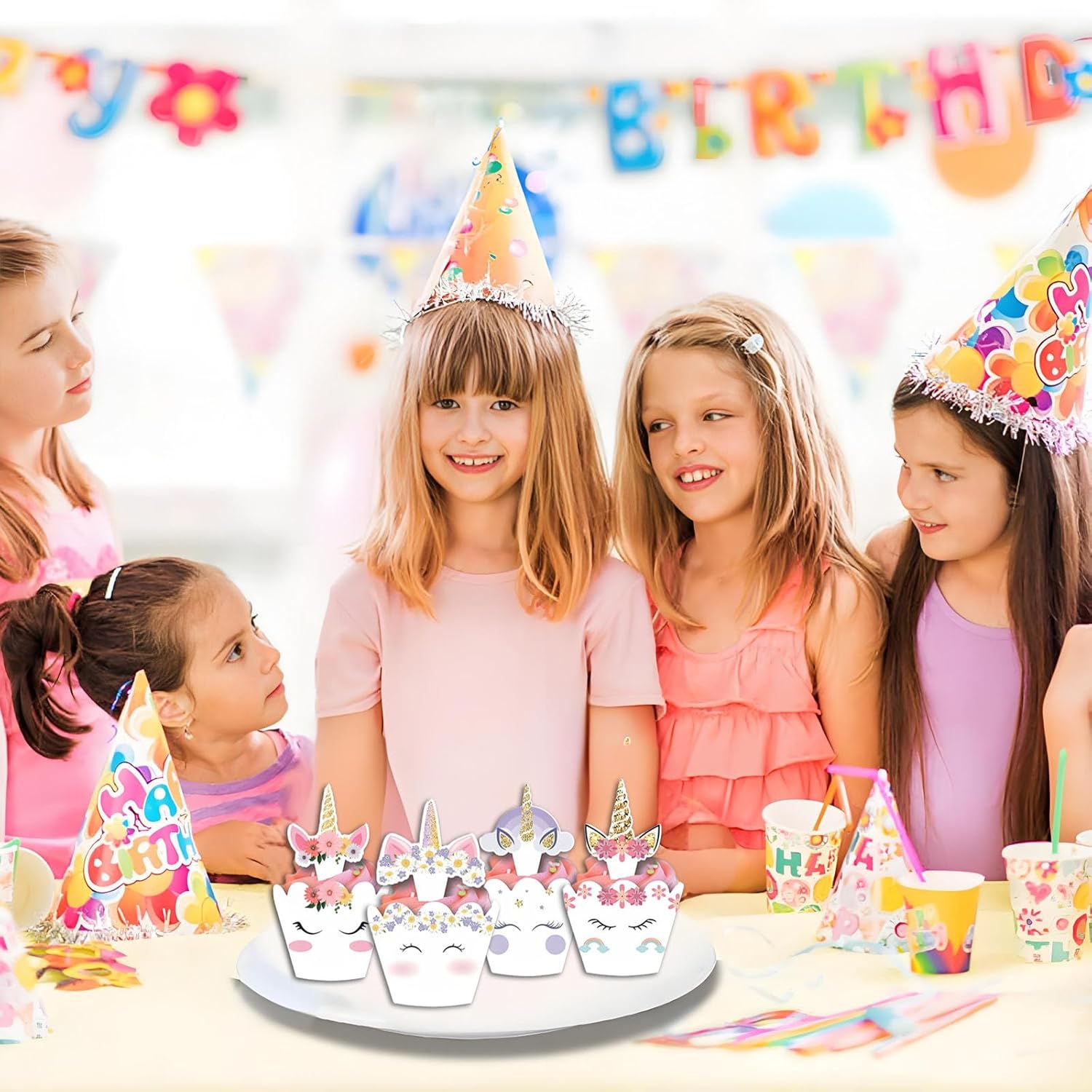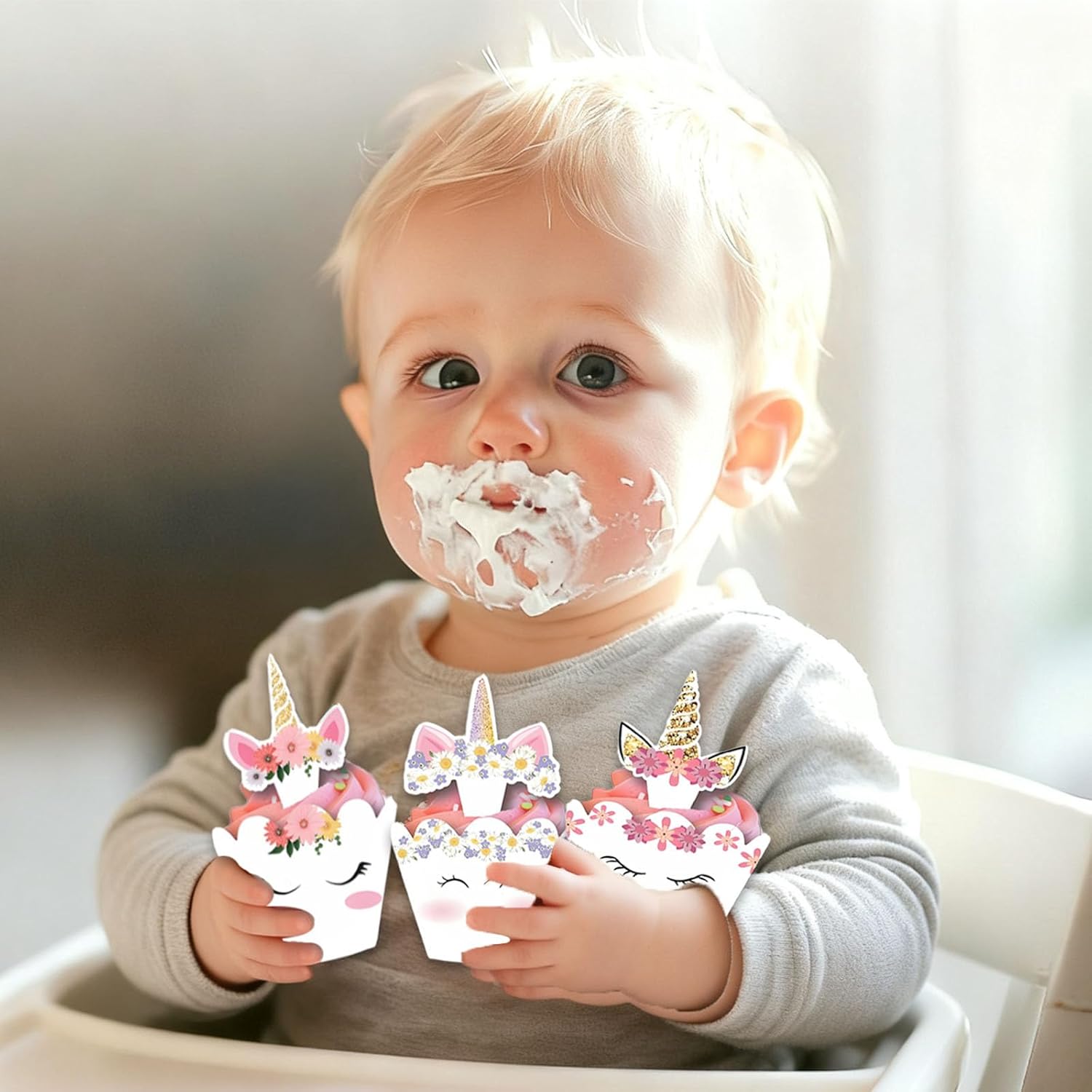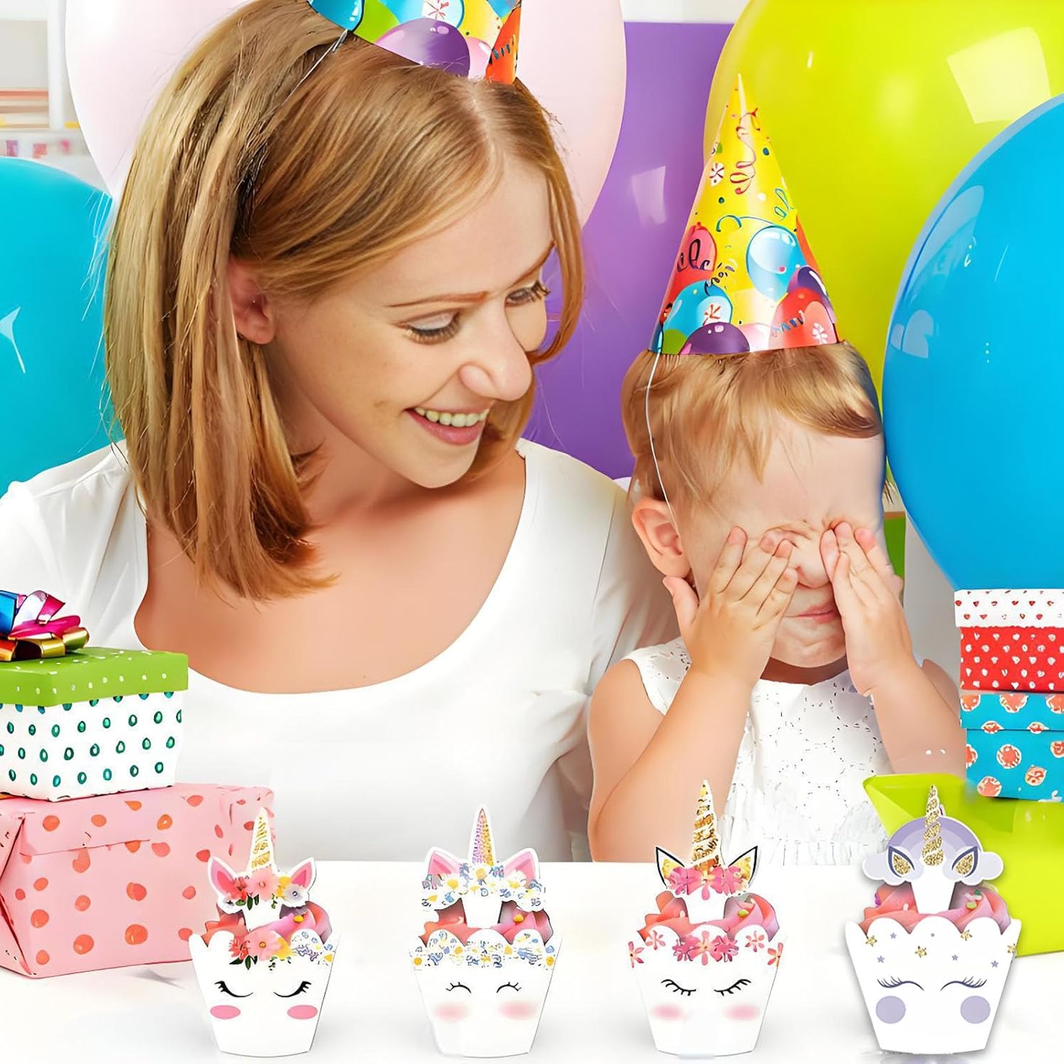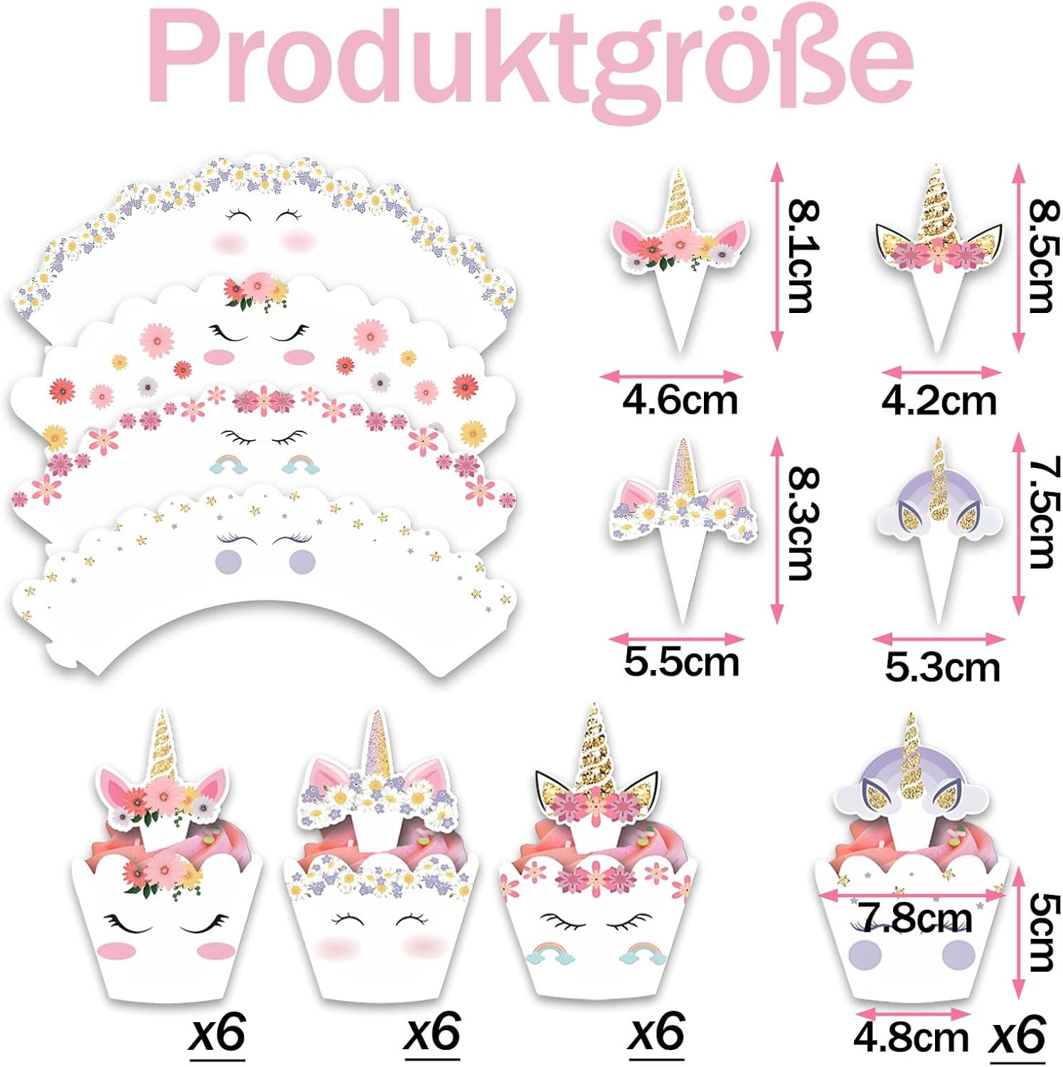 Set completo: include 24 involucri per cupcake (carta da imballaggio per muffin) e 24 toppers per cupcake a forma di cartone animato. Materiale di alta qualità: i toppers per torta dei cartoni animati sono realizzati in cartone di alta qualità, che può essere posizionato in modo sicuro e saldo sui cupcakes, il materiale ha un certo spessore, quindi non si deformerà o si strapperà facilmente. Misura adatta: il diametro superiore è di circa 7,8 cm, il diametro di base è di circa 4,8 cm e l'altezza è di 5 cm. Queste dimensioni assicurano che i toppers per cupcake si adattino perfettamente alla maggior parte dei cupcake. Facile da montare: basta inserire la chiusura nell'apposita scanalatura e otterrete una bellissima decorazione per cupcake. Ampi usi: questi toppers per cupcake con unicorno sono perfetti per una varietà di occasioni, come baby shower, feste di compleanno per bambini, matrimoni, anniversari e molte altre celebrazioni.