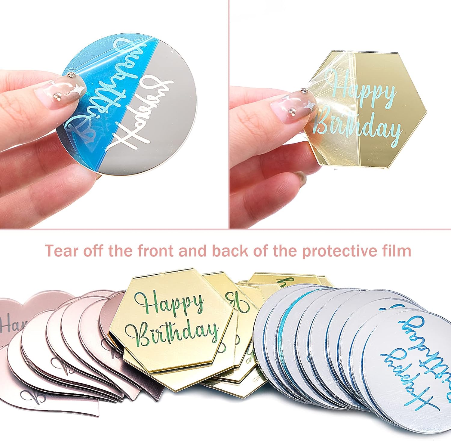 Il pacchetto include: Riceverai 30 dischi acrilici Happy Birthday, 10 esagoni dorati, tondi argento e cuori oro rosa, sufficienti per realizzare una decorazione per una torta di compleanno. Design unico: i toppers per cupcake sono progettati con superficie a specchio, possono vedere un riflesso chiaro, più luminoso e brillante, aggiungono un tocco elegante ai tuoi cupcake, tazze da dessert e dolcetti. Materiale premium: i toppers per torta sono realizzati in acrilico a specchio, con una bellissima superficie riflettente e i bordi sono puliti, i colori sono brillanti, robusti e durevoli, facili da pulire, riutilizzabili. Pellicola protettiva: la copertura acrilica del cupcake ha una pellicola trasparente sulla parte anteriore e posteriore per proteggerla dai graffi, è necessario rimuovere la pellicola protettiva prima dell'uso, la copertura acrilica è nuova e lucida, senza graffi. Ampia applicazione: il topper per cupcake con incisione Happy Birthday è perfetto per ragazzi, ragazze, donne, ottimo anche per compleanni e feste.