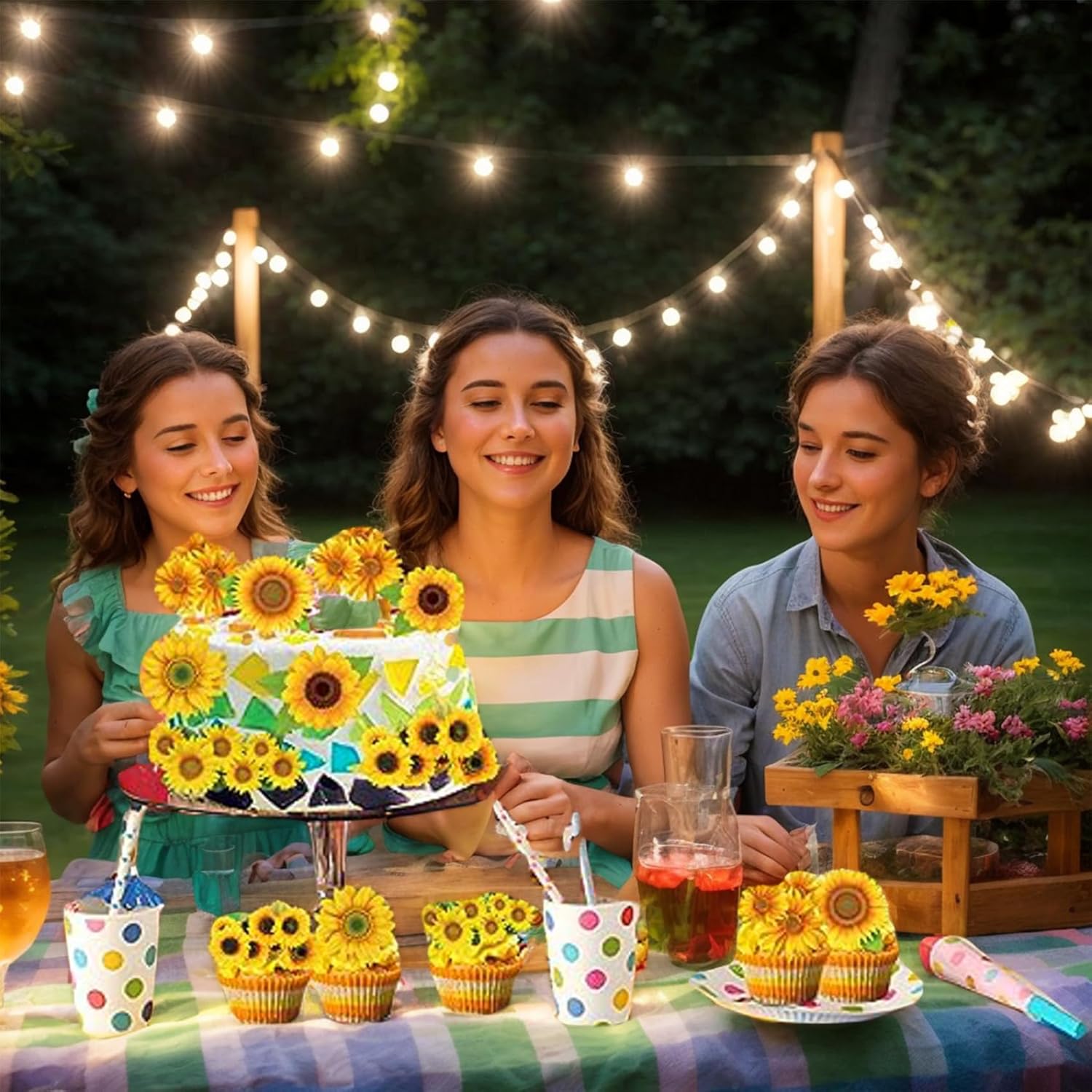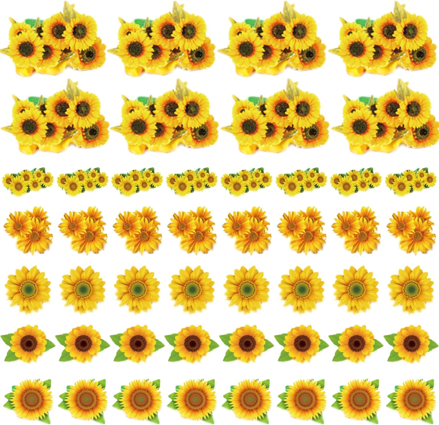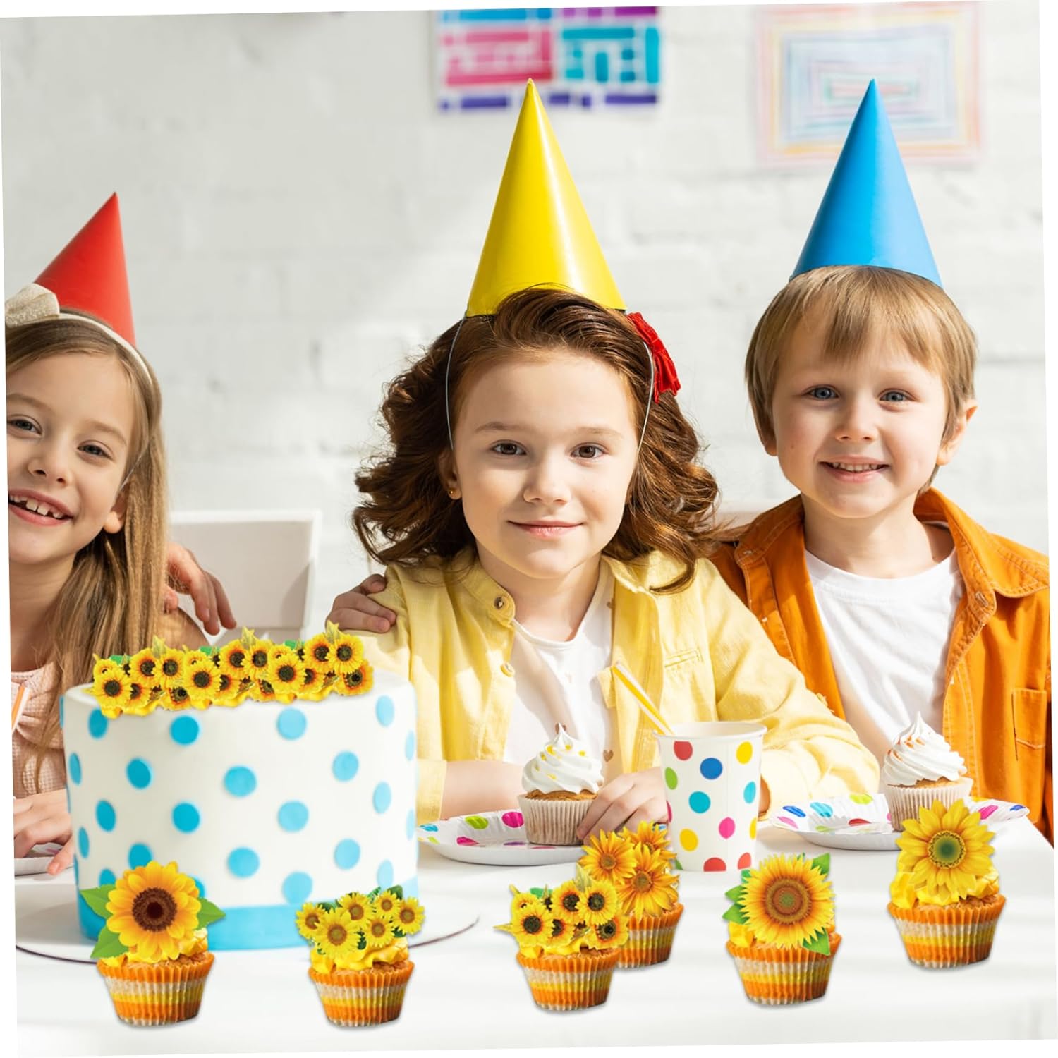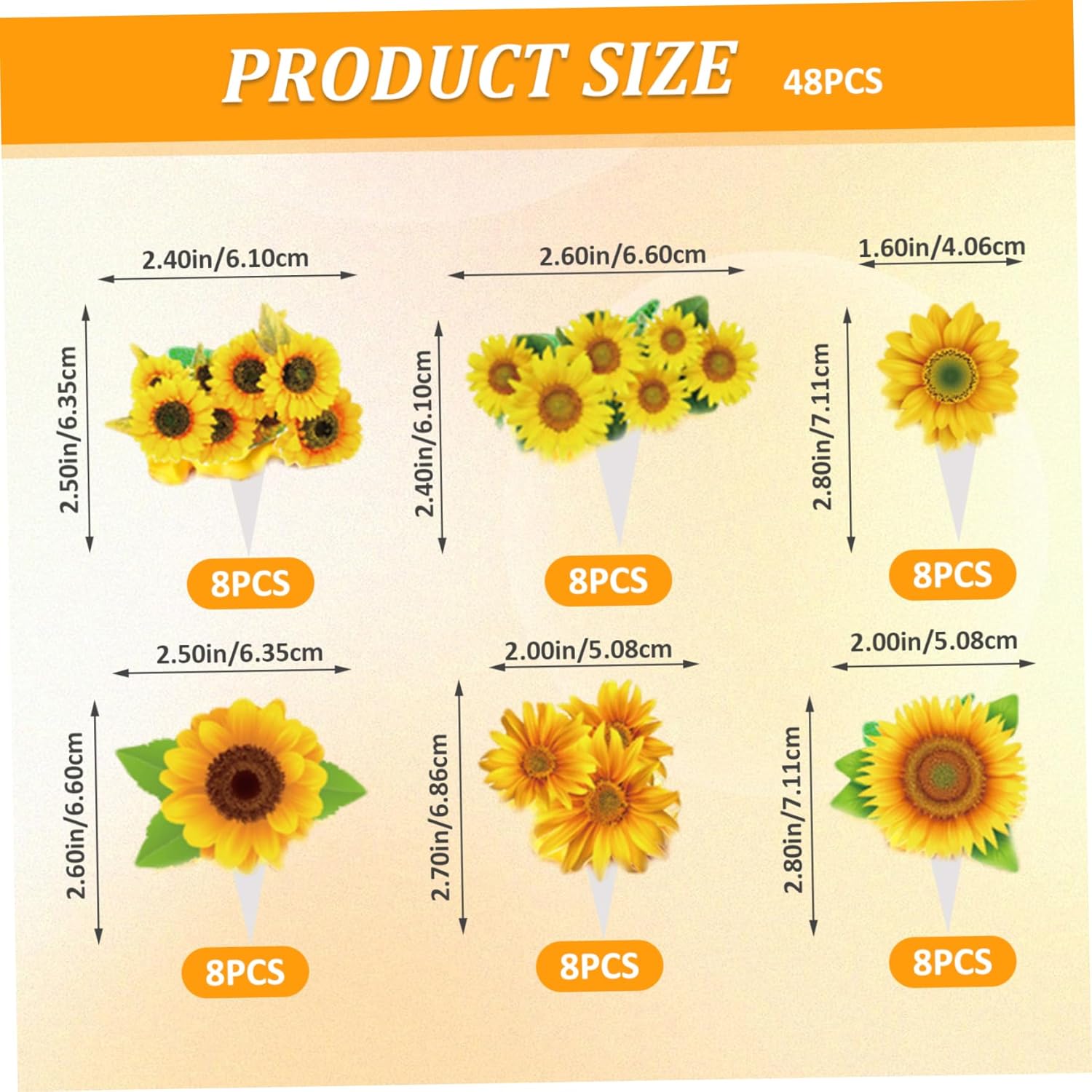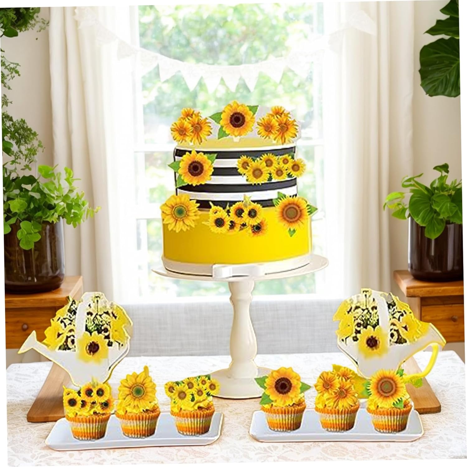 Decorazione semplice: ogni decorazione per torta viene fornita preassemblata per una facile applicazione..Posizionali semplicemente su cupcake, torte o altri dessert per creare un'esposizione accattivante in pochi secondi. Materiali adatti agli alimenti: realizzati con carta per alimenti e pellicola rivestita in PE, questi topper per torta girasole sono leggeri, resistenti e sicuri da usare con gli alimenti..Goditi le decorazioni che durano per tutto il tuo evento. Versatili per varie occasioni: questi topper per cupcake con girasole sono perfetti per compleanni, feste in giardino, eventi scolastici, feste a tema vegetale e altro ancora..Aggiungono fascino e creatività a qualsiasi celebrazione. Incantevoli disegni di girasoli: il set comprende sei deliziosi stili di girasoli, che donano un aspetto vivace e festoso ai tuoi cupcakes..Perfetto per temi e celebrazioni ispirati alla. Generoso set da 48 pezzi: con 48 topper per cupcake girasole in sei stili distinti, ce n'è abbastanza per decorare una serie di cupcake o un tavolo da dessert, assicurando che ogni ospite riceva un dolcetto splendidamente decorato.
