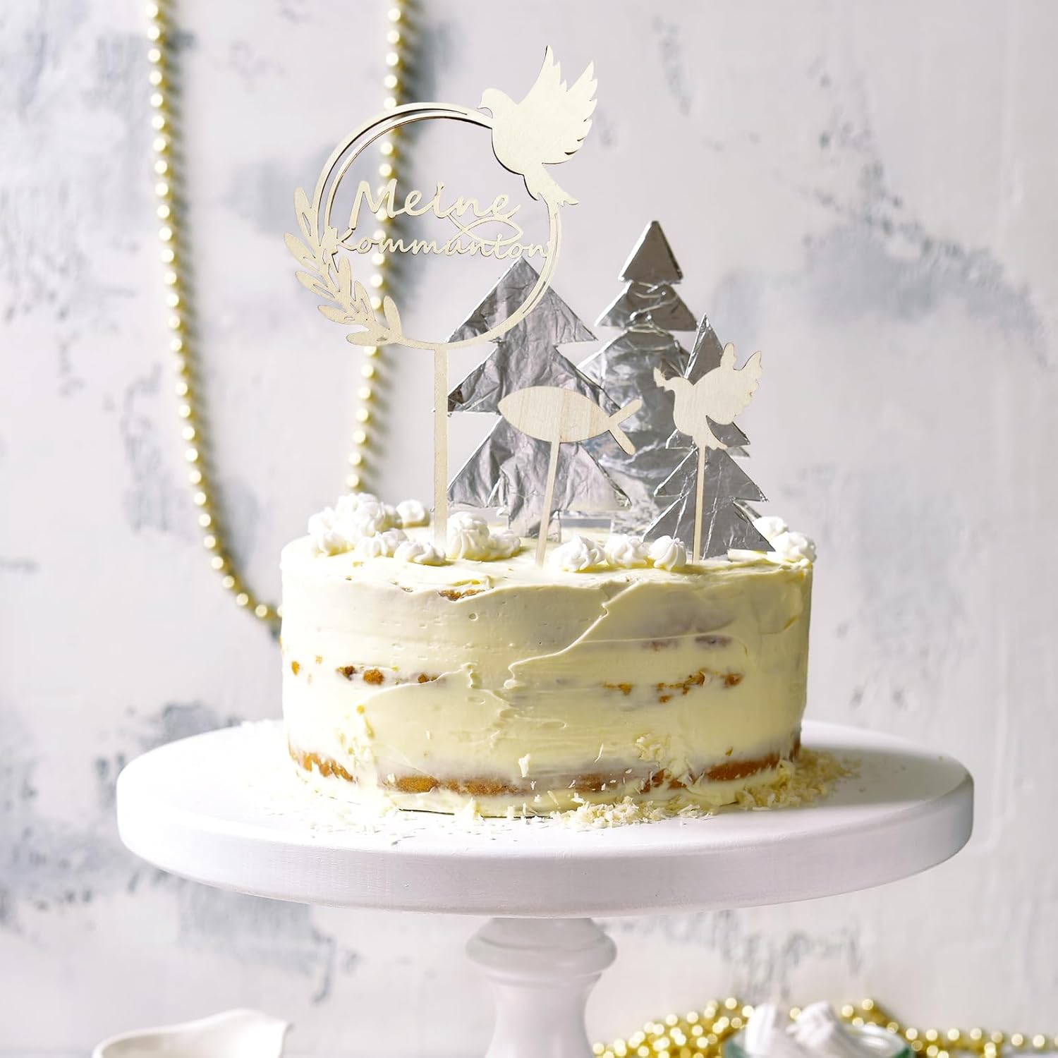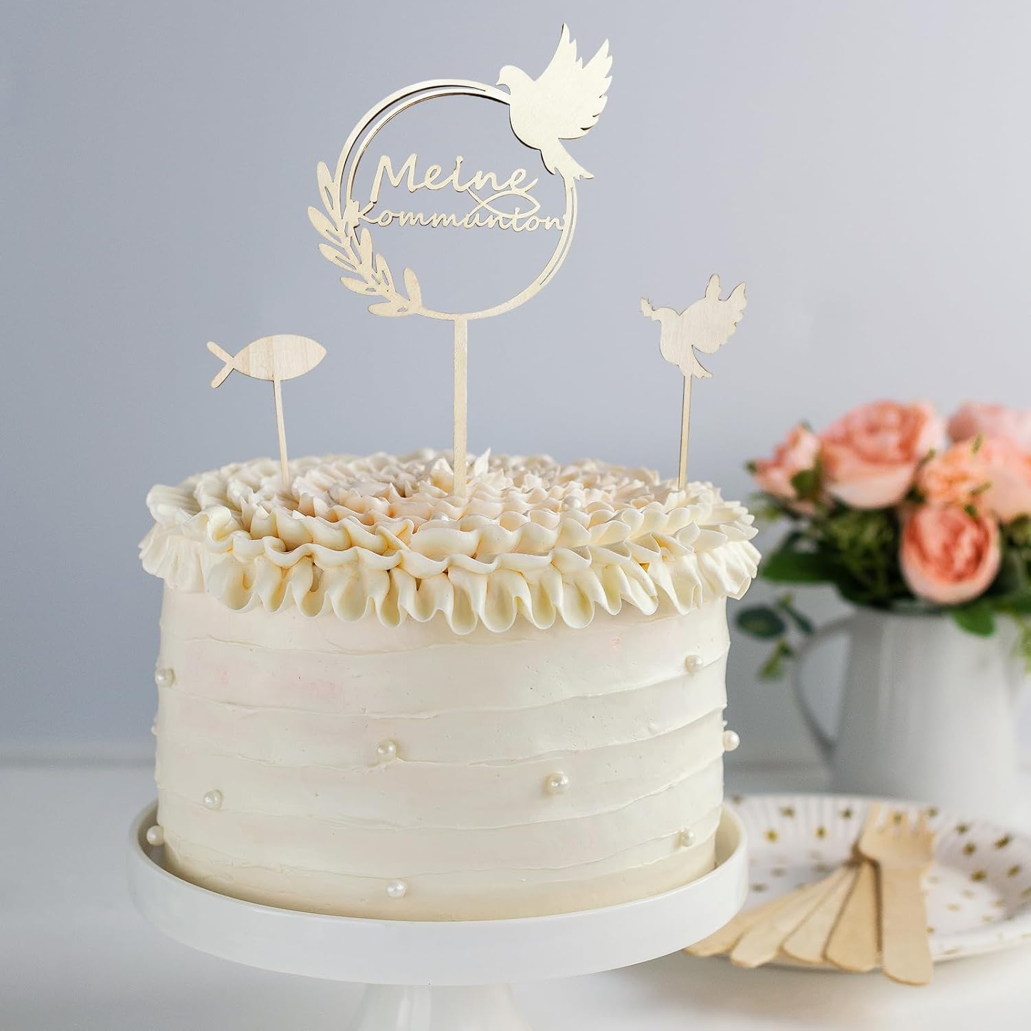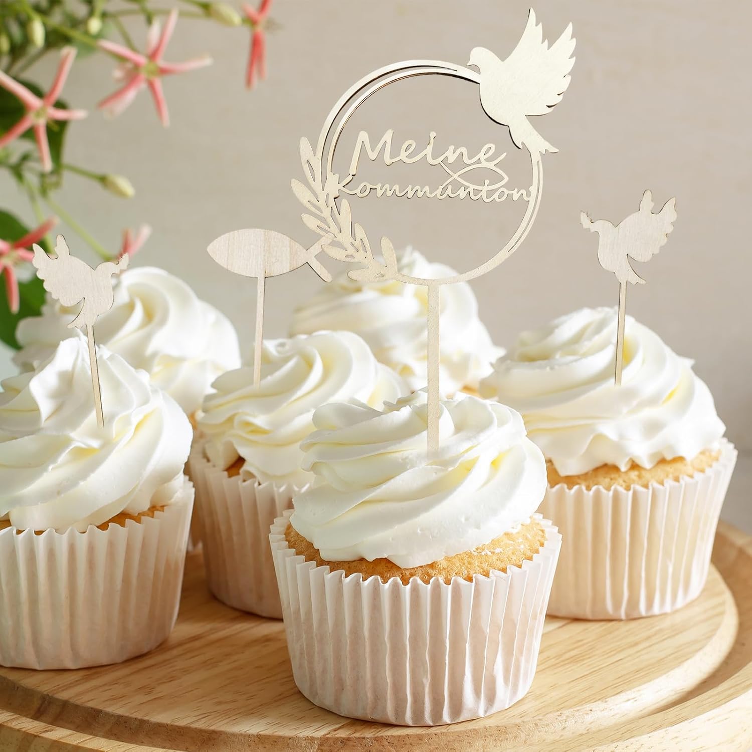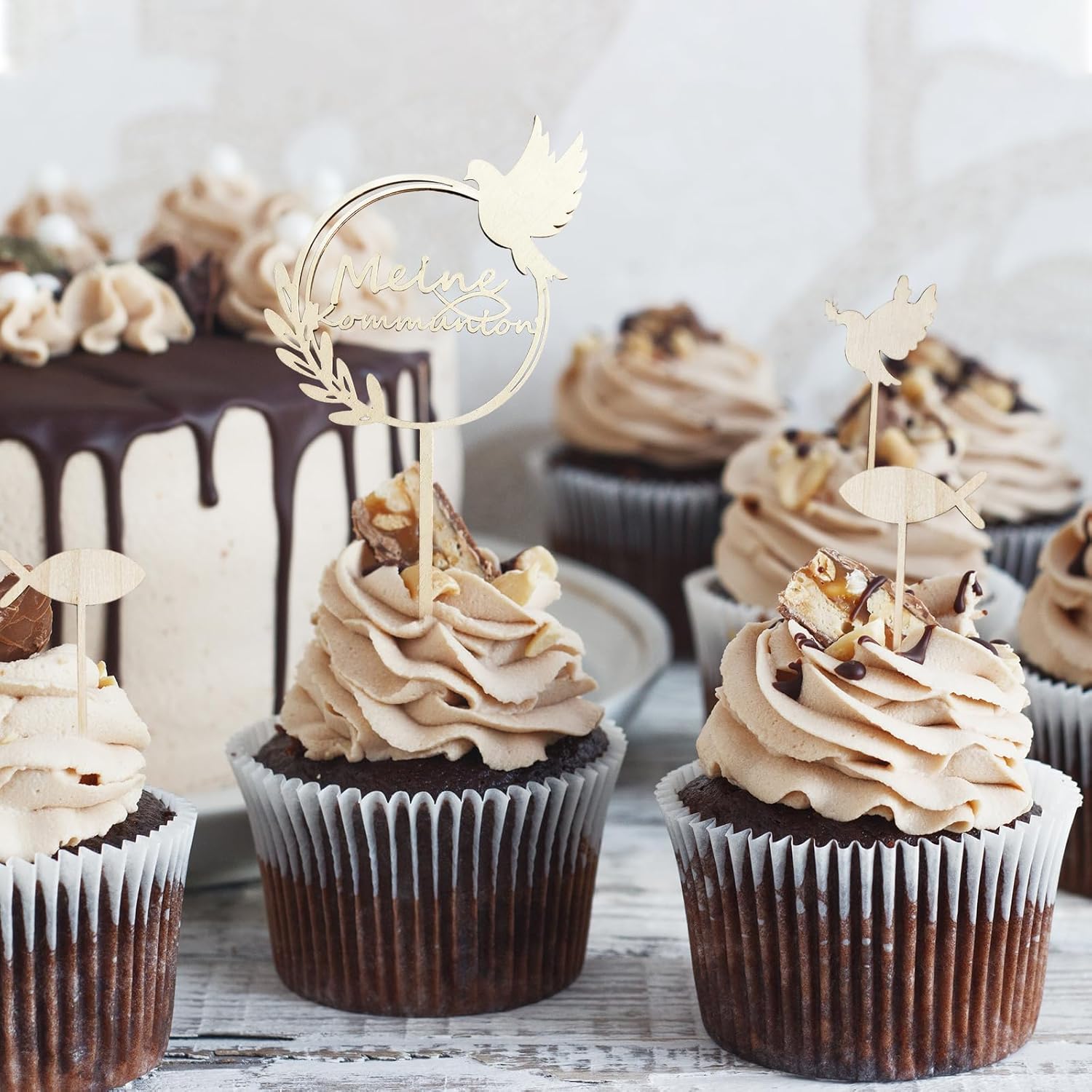 QUALITÀ PREMIUM: i toppers per cupcake per battesimo FloralGrace sono realizzati in carta e legno di alta qualità. Ogni dettaglio è realizzato con cura per garantire bordi lisci e lucenti che mettono in risalto la tua torta. Questi materiali di alta qualità assicurano che il tuo cake topper non sia solo bello, ma anche durevole. Design accattivante: il nostro cake topper per comunione è dipinto con foglie verdi e pesciolini. Questo design semplice ma raffinato si abbina a qualsiasi celebrazione, che si tratti di battesimo, comunione o cresima. La decorazione porta un'atmosfera naturale e fresca sulla tua tavola e rende l'occasione ancora più speciale Facile da usare: con FloralGrace non è necessario alcun montaggio o incollaggio aggiuntivo. Le decorazioni sono pronte per essere posizionate direttamente sulle vostre torte. Ciò consente di risparmiare tempo e fatica, così puoi concentrarti sulla festa e goderti i momenti speciali con la tua famiglia e i tuoi amici. Dimensioni perfette: le decorazioni misurano 4 x 4 cm, con un bastoncino di legno lungo 8 cm, che le rende ideali per decorare cupcakes. Queste dimensioni sono accuratamente selezionate per garantire un aspetto equilibrato su qualsiasi cupcake o torta senza compromettere la stabilità. I tuoi ospiti apprezzeranno i graziosi dettagli. Utilizzo versatile: che si tratti di battesimi, comunioni o cresime, queste decorazioni sono la scelta perfetta per abbellire la tua festa. Creano un'atmosfera calda e accogliente e sono adatti sia ai ragazzi che alle ragazze. L'arredamento incantevole aggiunge un tocco di eleganza e fascino ad ogni occasione