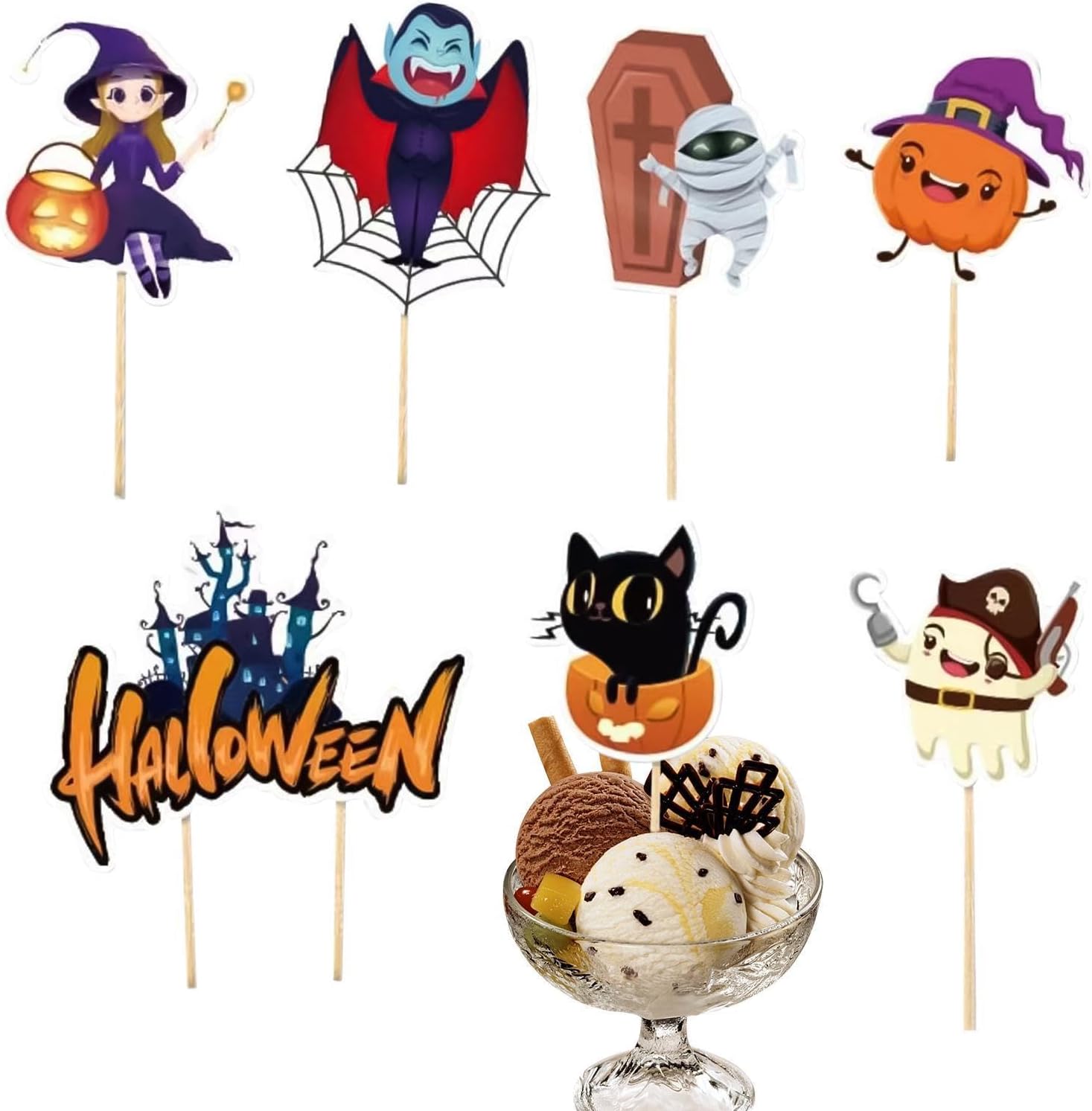 Migliora l'atmosfera della festa: ravviva la tua festa di Halloween con questi toppers cupcake molto carini e interessanti. Con molteplici elementi a tema come e vampiro, aggiungeranno sicuramente un'atmosfera migliore e manterranno la festa vivace. Struttura stabile: i nostri toppers per cupcake di Halloween offrono un design robusto, realizzato in cartone robusto e stuzzicadenti. La sua struttura sicura e stabile permette di decorare i dolci in tutta sicurezza senza preoccuparsi della deformazione. Facile da usare: posiziona facilmente questi toppers per cupcake di Halloween sui tuoi prodotti da forno con l'hardware di facile montaggio incluso. Con la combinazione di stuzzicadenti e cartone, i tuoi dolcetti si trasformeranno in delizie spettrali in un istante Migliora le tue caramelle: Concediti l'aggiunta perfetta ai tuoi biscotti, frutta e gelato che trasformerà i cibi ordinari in un capolavoro gourmet, rendendoli più deliziosi e squisiti che mai Usi multipli: Illumina l'atmosfera della tua festa di Halloween con i nostri spettrali toppers per cupcake. Stupisci i tuoi ospiti con questi disegni spettrali ma adorabili, ideali per regali per neonati e decorazioni di compleanno per bambini