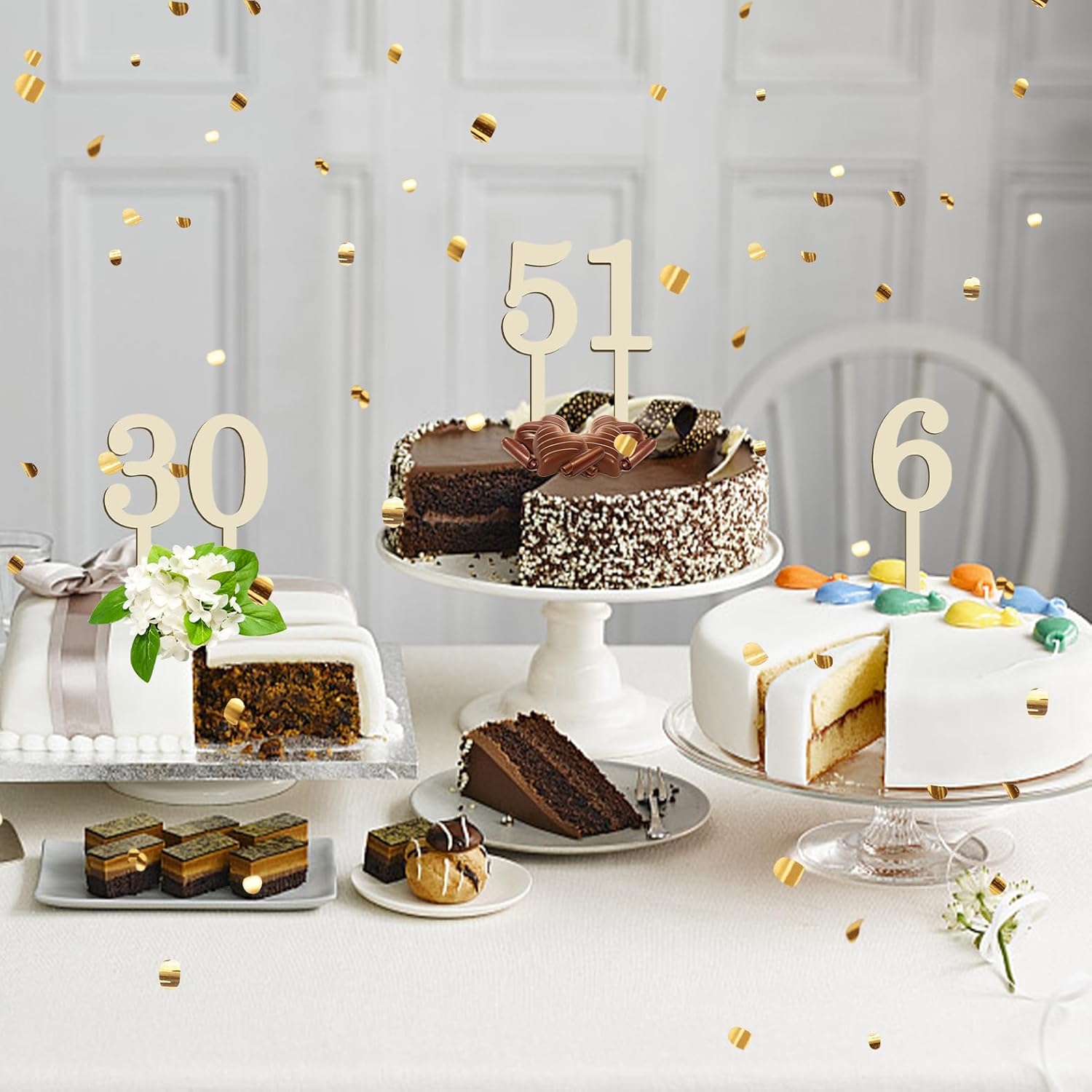 Opzione di design multifunzionale: il nostro cake topper è perfetto per i compleanni e adatto a persone di diverse età. Scultura intagliata: la scultura è molto fine e garantisce l'elegante decorazione della torta o del cupcake. Puoi decorare la tua torta con stile. Materiale: il cake topper è realizzato in legno di alta qualità, che lo rende durevole. Numeri: i toppers per torta possono essere posizionati insieme a numeri diversi, rendendoli perfetti per i compleanni.