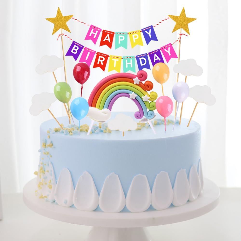 Confezione: il kit di decorazioni per il compleanno include la stamina Happy Birthday, l'arcobaleno, la nuvola, la stella, i palloncini colorati e la candela numerica in gruppi. 【Materiale】: il banner e la nuvola di buon compleanno sono fatti di carta. L'arcobaleno è fatto di argilla morbida. I palloncini sono fatti di schiuma. La candela numerica è realizzata in cera di paraffina. Facile da usare: dopo aver pulito i cappucci decorativi, inseriscili direttamente nella torta e disponili in bellissime forme secondo le tue preferenze. Molteplici usi: il kit di decorazione può fungere da delicato accessorio per torte, cupcake, dessert, formaggio, gelato, frutta o altri piatti che desideri decorare, molto adatto per l'atmosfera di festa. Bellissima decorazione: aiuta a creare un'atmosfera felice, calda e dolce per il compleanno. Ottimo per feste di compleanno, baby shower, feste di rivelazione di genere, feste a tema carnevale, anniversari o altri eventi.