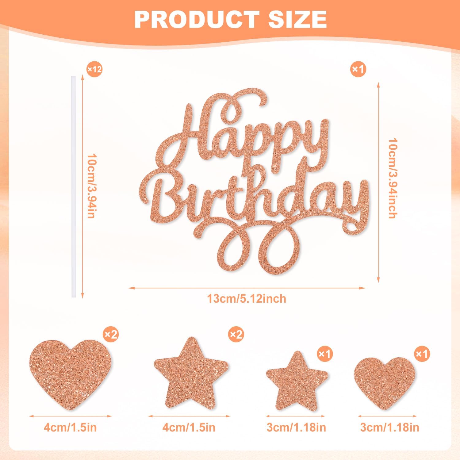 La confezione include: Riceverai 1 lettera di buon compleanno con 3 toppers per torta a cuore glitterato e 3 stelle glitterate. Il tutto è di colore arancione chiaro. È molto carino e brillante. Inserirlo sulla torta è molto accattivante. Più adatto come articolo per feste a tema arancione per ragazze e donne, misura adatta come decorazione per torte per la maggior parte delle feste di compleanno. Materiale del topper per torta di compleanno arancione: topper per torta di compleanno arancione realizzato in cartoncino glitterato di alta qualità, con lettera di buon compleanno e topper per torta con stella e cuore, la larghezza del topper per torta di buon compleanno arancione è di circa 13 cm, l'altezza è di circa 10 cm, i toppers per torta con stella e cuore sono da circa 3 cm a 4 cm. Adatto per torte di compleanno di qualsiasi dimensione o per qualsiasi celebrazione. Topper per torta arancione, senso visivo glitterato: splendido topper per torta arancione, perfetto per la tua torta di compleanno. La prima cosa che salta all'occhio è il bellissimo effetto lucido del top. Misura adatta come decorazione per torta per la maggior parte dei compleanni. I dettagli lucenti aggiungono ulteriore fascino alla torta di compleanno e creano immediatamente un'atmosfera festosa. Topper per torta a forma di cuore con stella arancione - Ampi usi: topper per torta di compleanno arancione facile da inserire nella torta. I toppers per torta con stella e cuore lucenti possono essere utilizzati insieme o separatamente. Dopo aver utilizzato le decorazioni per la torta di compleanno. Possono essere facilmente conservati e riutilizzati per il prossimo utilizzo. Non è solo per i compleanni dei bambini ma anche per i compleanni degli adulti. Il cake topper bithaday glitterato è adatto a tutte le età ed è amato da tutti. Decorazioni perfette per il compleanno di ragazze e donne: cake toppers rosa personalizzati, ideali non solo per decorare torte, ceste di frutta e feste a tema rosa, ma anche giocattoli per bambini o decorazioni per la casa. Sono il regalo preferito dai bambini piccoli o dagli adulti entusiasti e nostalgici