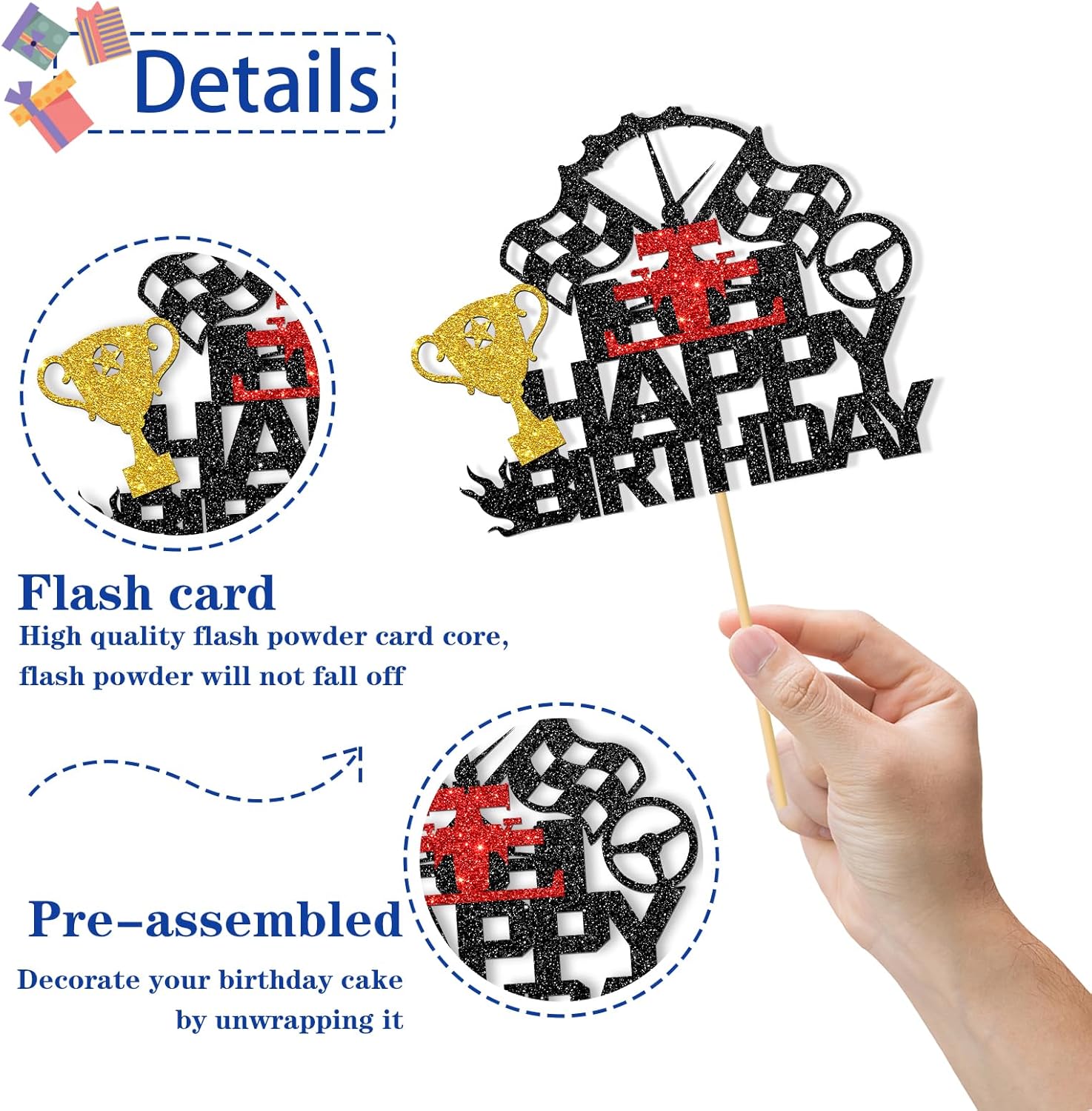 Quantità: riceverai un cake topper. Il cake topper è stato incollato prima di lasciare la fabbrica e può essere utilizzato direttamente dopo averlo ricevuto. Materiale: è realizzato in cartone alimentare di alta qualità ed è molto appariscente. Utilizzo: La dimensione del cake topper è di circa 15 x 13,7 cm. Adatto per la maggior parte delle torte. 🎂Servizio di qualità: se hai domande, non esitare a contattare il nostro team e riceverai una risposta soddisfacente entro 24 ore