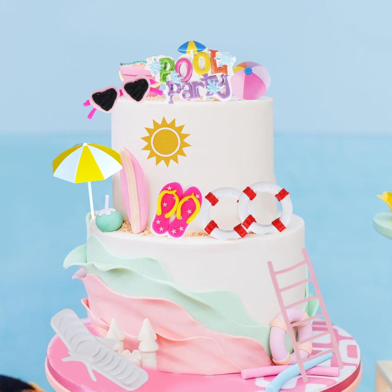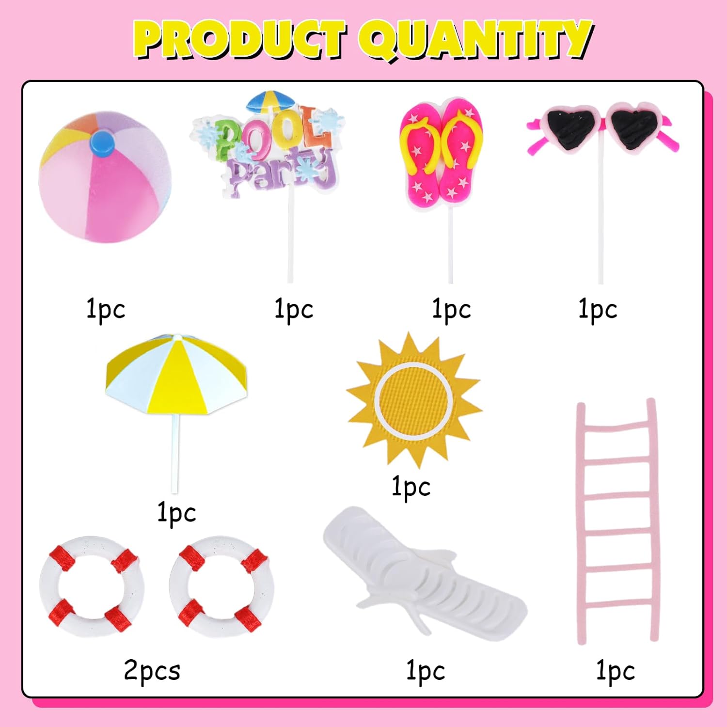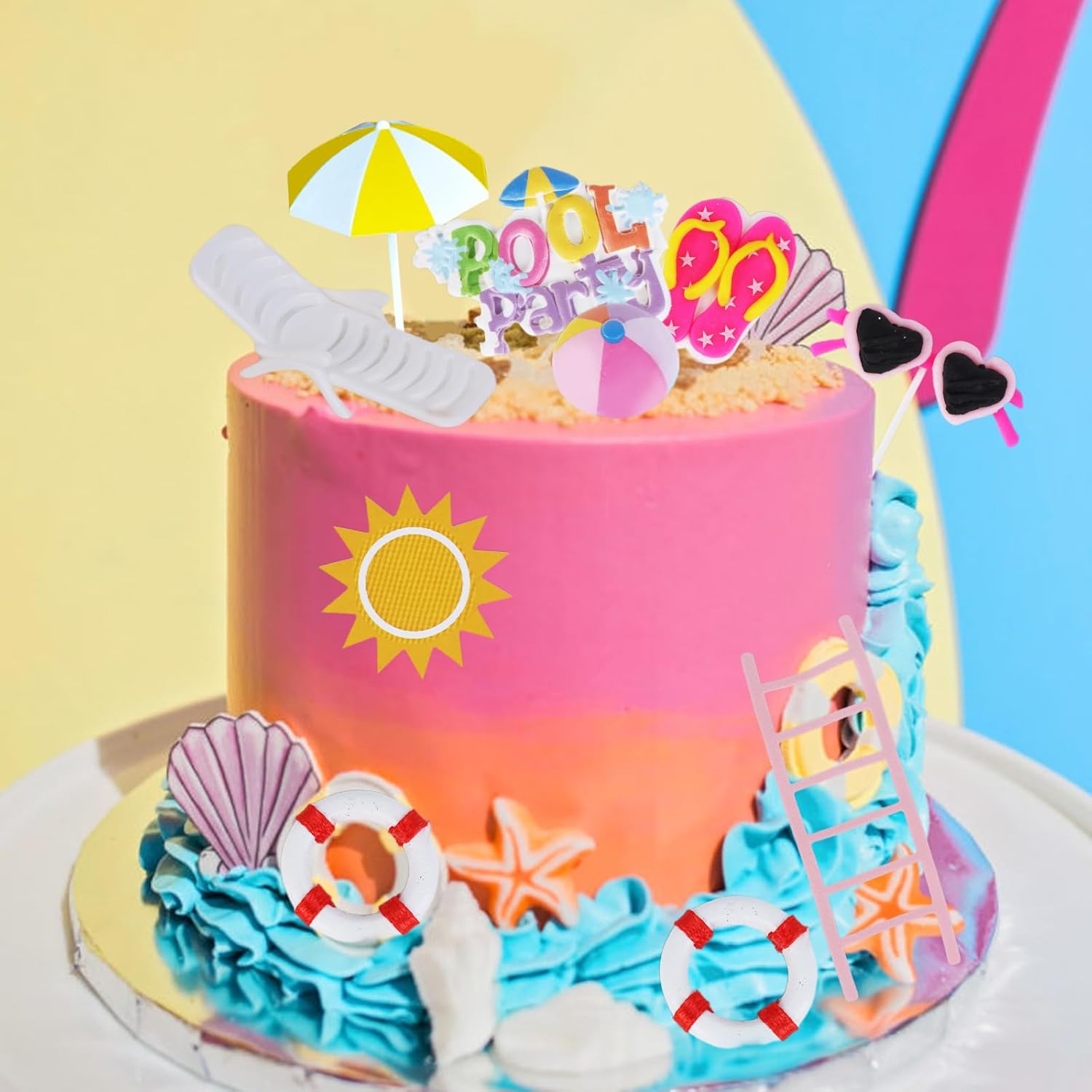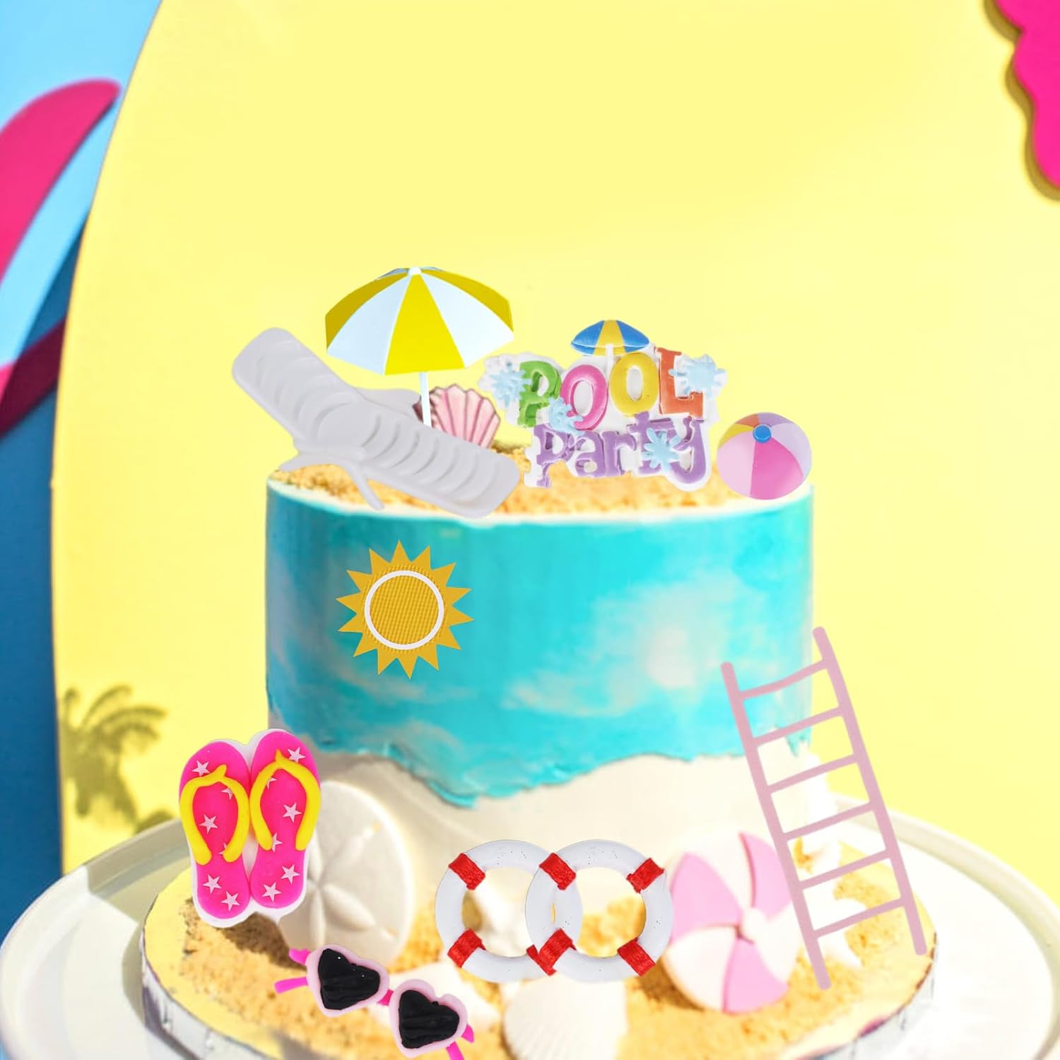 La confezione include: il set di decorazioni per torte da spiaggia contiene diversi tipi di decorazioni per torte, tra cui ombrelloni, lettini da spiaggia, anello per il nuoto, occhiali da sole rosa, sandali, scaletta, ecc. Totale 10 toppers per torta, che aggiungono un'atmosfera estiva alla tua festa. Dimensioni del prodotto: ombrellone giallo (4,1 x 7,6 cm), salvagente rosso/bianco (2,5 cm), sedia da spiaggia bianca (2 x 0,6 pollici), decorazione per torta double-face (8,4 x 9,6 cm) e 4 pezzi di argilla: pantofole (3,8 x 5,1 cm), occhiali da sole (6,1 x 0,8 cm), pallone da spiaggia (2,2 x 2 pollici). 1.17. 8 cm), cartello "Piscina" stile surf (6,1 cm x 3,9 cm). 【Occasioni di applicazione】 Le decorazioni di compleanno di Splish Splash includono vari elementi estivi, adatti per decorazioni di compleanno in spiaggia, feste in piscina, decorazioni hawaiane, feste in acqua, decorazioni per feste a tema oceano. Puoi metterlo ovunque tu voglia per decorare l'atmosfera. 【Facile da usare】 Il nostro cake topper a tema estivo è molto facile da usare! Puoi posizionare il modello della figura della torta sul vassoio con punti di colla e poi posizionarlo direttamente sulla torta. Nota: queste forniture per feste estive contro le tarme non sono commestibili e sono solo a scopo decorativo, per favore non mettere queste decorazioni per torta nel forno o nel microonde.