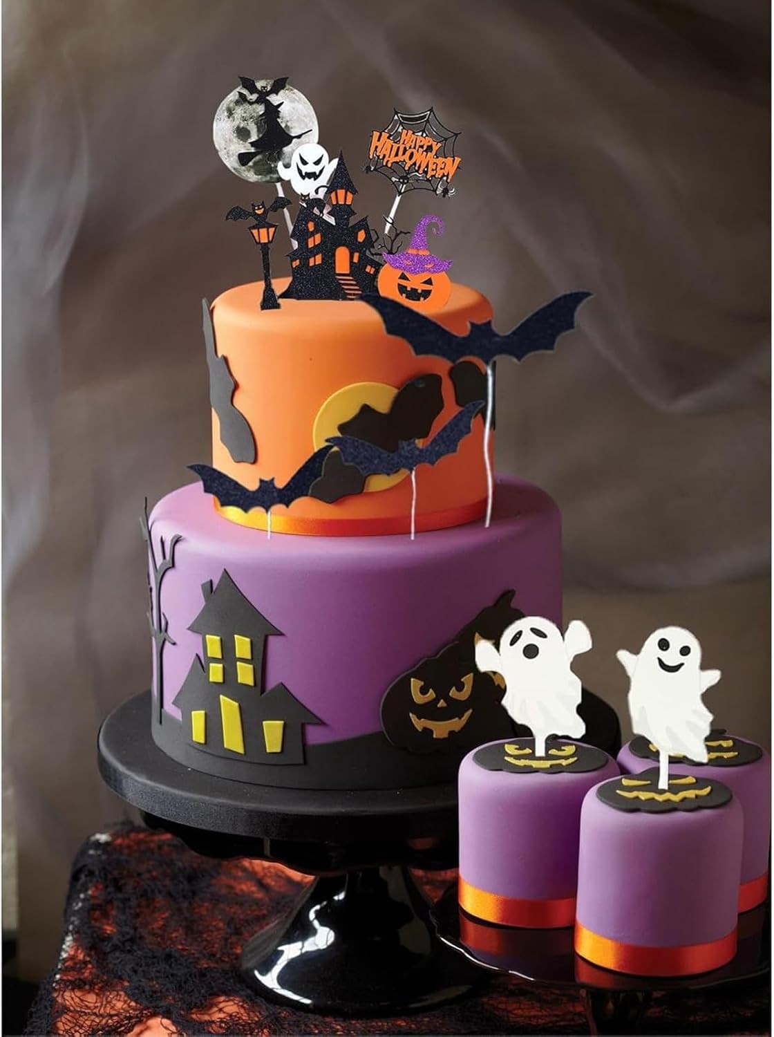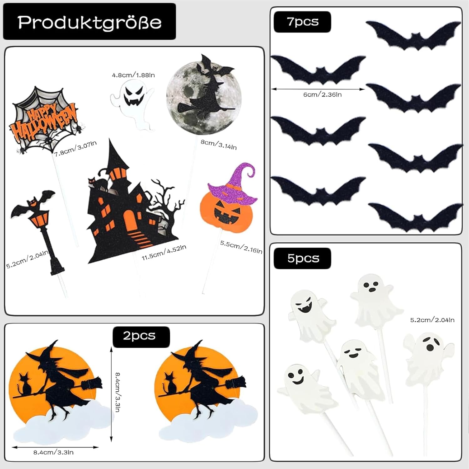 Divertenti toppers per cupcake fantasma: questi sono 30 toppers per torta, se inseriti nei dessert, donano alla decorazione della tua festa di Halloween un'atmosfera ricca e felice. Materiale: i toppers per cupcake di Halloween sono realizzati in cartone ecologico, bastoncini di legno e bambù, sono sicuri e inodore, fissati saldamente e non facili da staccare. Splendidamente decorato: la decorazione dei muffin di Halloween è ottima per decorare diverse torte di compleanno, gelati, formaggi, frutta, ecc. Con abbastanza stile per adattarsi alle diverse collocazioni, è un ottimo accessorio di gioielleria. Decorazione di Halloween: decorazione horror per Halloween, design unico, perfetta per decorazioni spaventose per baby shower di Halloween, decorazioni per feste di compleanno di Halloween, scelta perfetta per diverse mini decorazioni per torte a tema spaventoso. I toppers per cupcake di Halloween spettrali con veri glitter sono bellissimi. Ampia gamma di applicazioni: queste feste horror a tema pipistrelli possono essere utilizzate anche per feste di compleanno, parchi giochi per bambini, feste a tema, feste di Halloween, riunioni di bambini e altre occasioni.