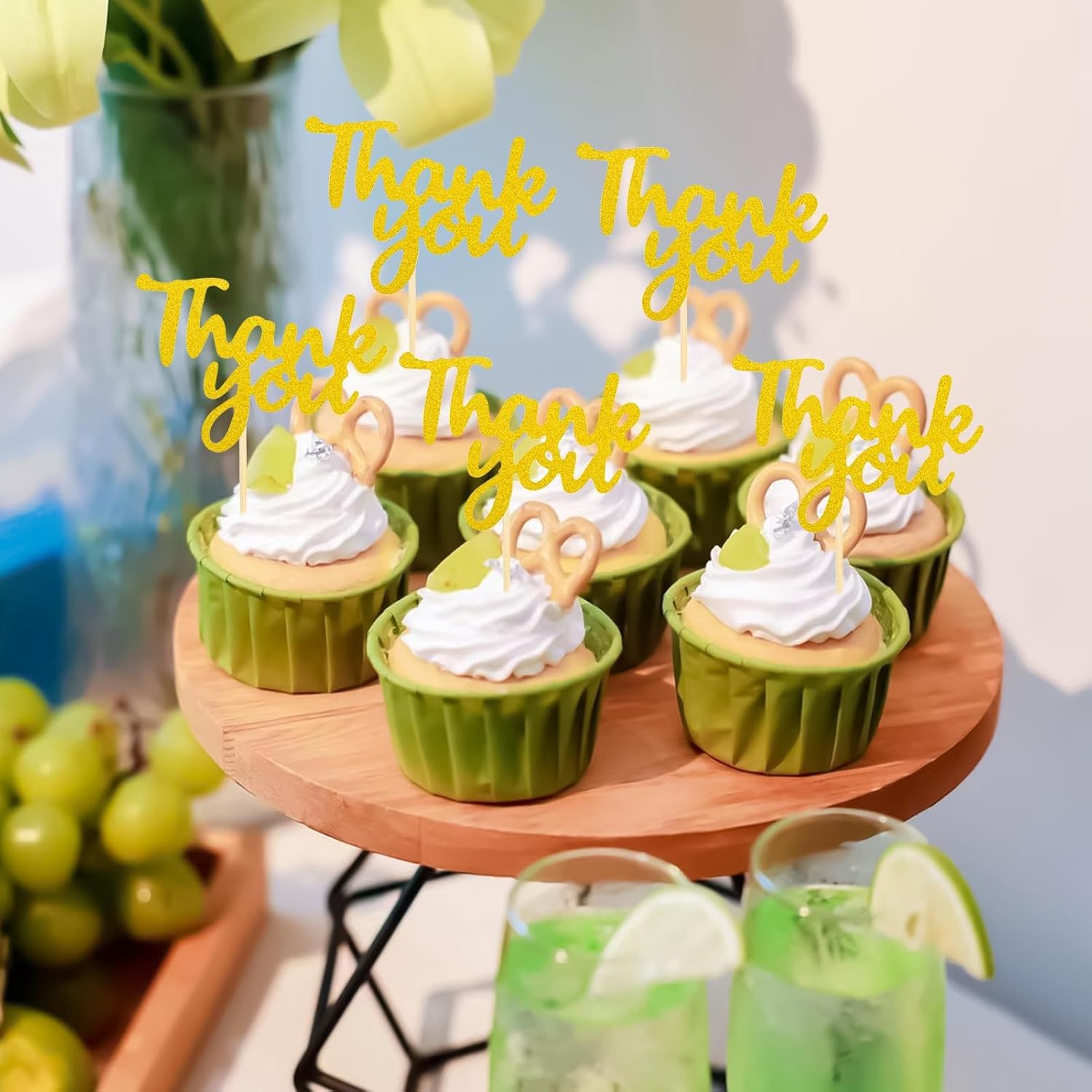 Facile da usare: consente di ottenere facilmente torte attraenti grazie all'installazione intuitiva, senza bisogno di conoscenze di cottura. Risparmia tempo sulla preparazione con risultati impressionanti per ogni celebrazione. Ideale per decorazioni per torte e dessert. Torta a tema: torta di alta qualità con scritta e motivi grafici che evidenzia temi creativi della festa, aumenta l'effetto visivo nelle occasioni festive ed è facile da applicare Set di decorazioni per eventi: 12 tagliatorta con ringraziamento per grandi celebrazioni. Garantisce la coerenza visiva e conferisce a qualsiasi tavolo una finitura armoniosa grazie al suo design elegante. Design riflettente alla luce: con effetto glitter lucido, questo topper trasforma i dessert in cattura sguardi e aumenta l'effetto visivo attraverso effetti di luce tridimensionali. Applicazioni versatili: ideale per torte di compleanno, torte nuziali e celebrazioni, questo topper per torte migliora qualsiasi presentazione di dessert grazie all'elegante supporto a tema e si adatta facilmente a diverse occasioni come feste o eventi festivi
