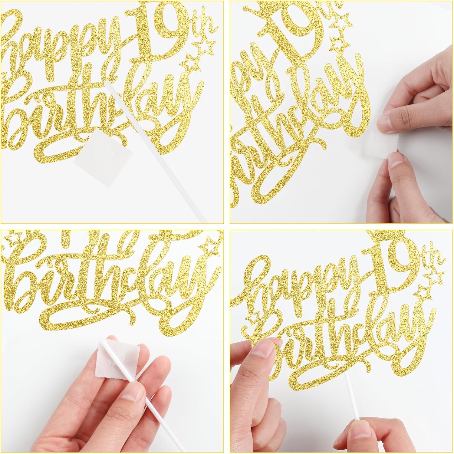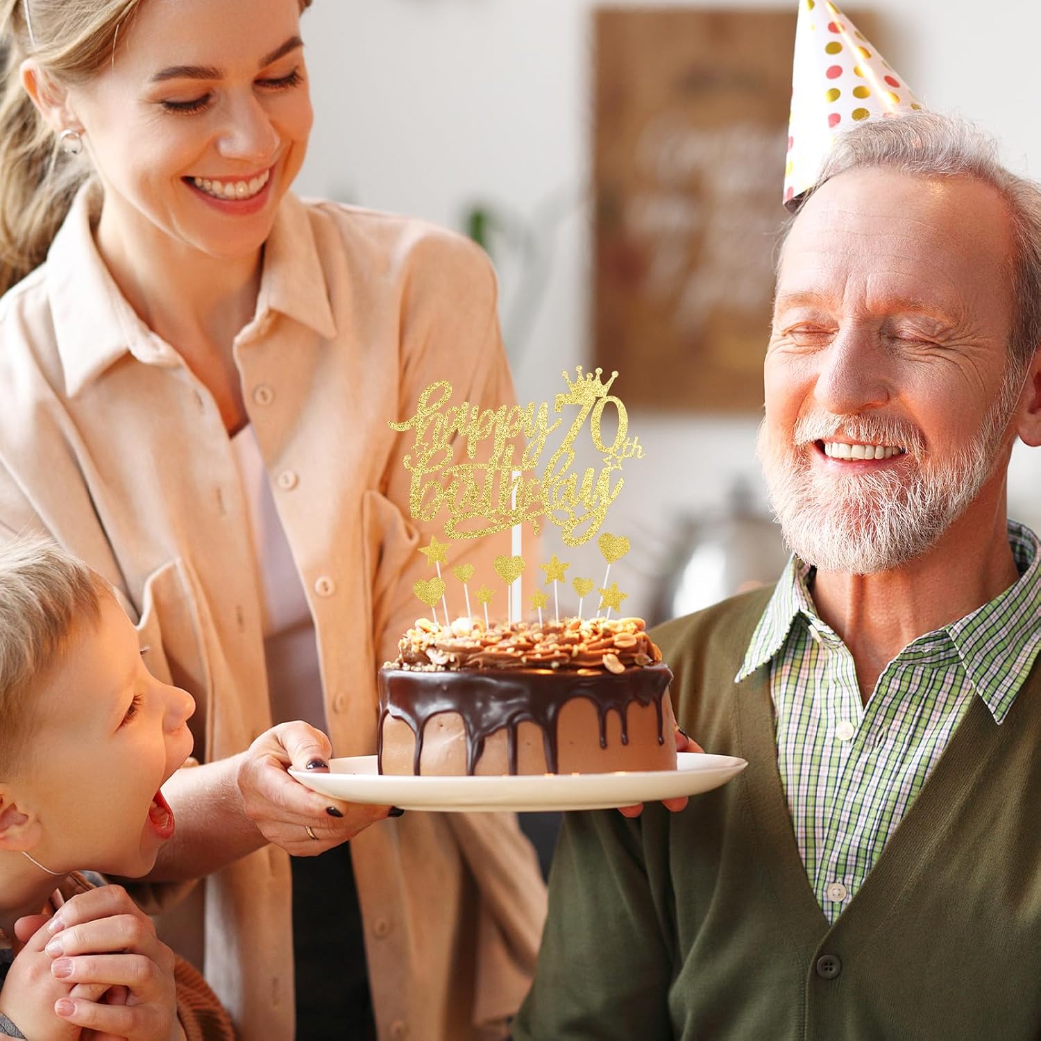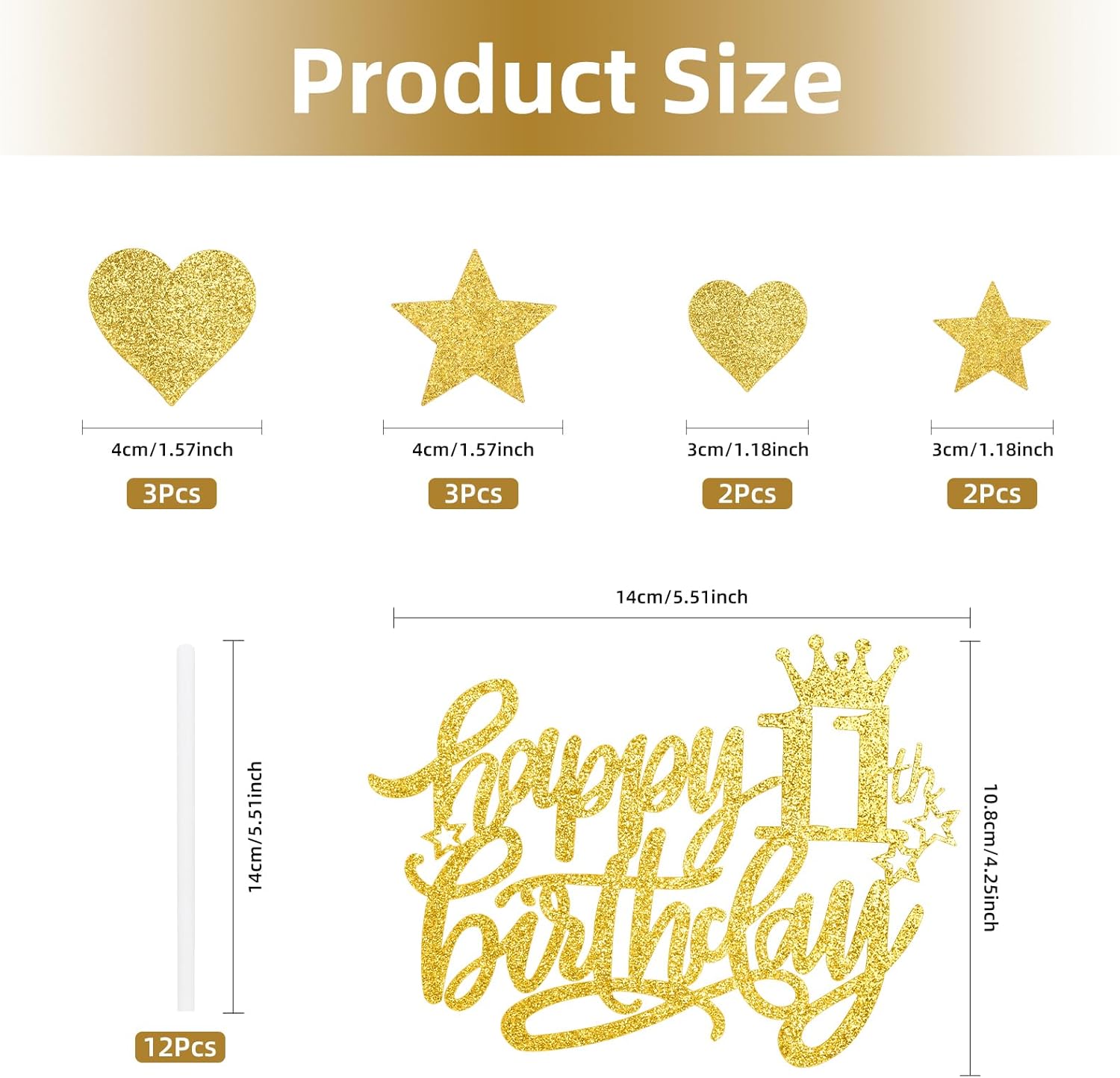 Topper per torta dorati Buon 36° compleanno - Topper per torta dorati per torta, cuore, stelle glitterate dorate, regalo di compleanno, toppers per torta dorati per