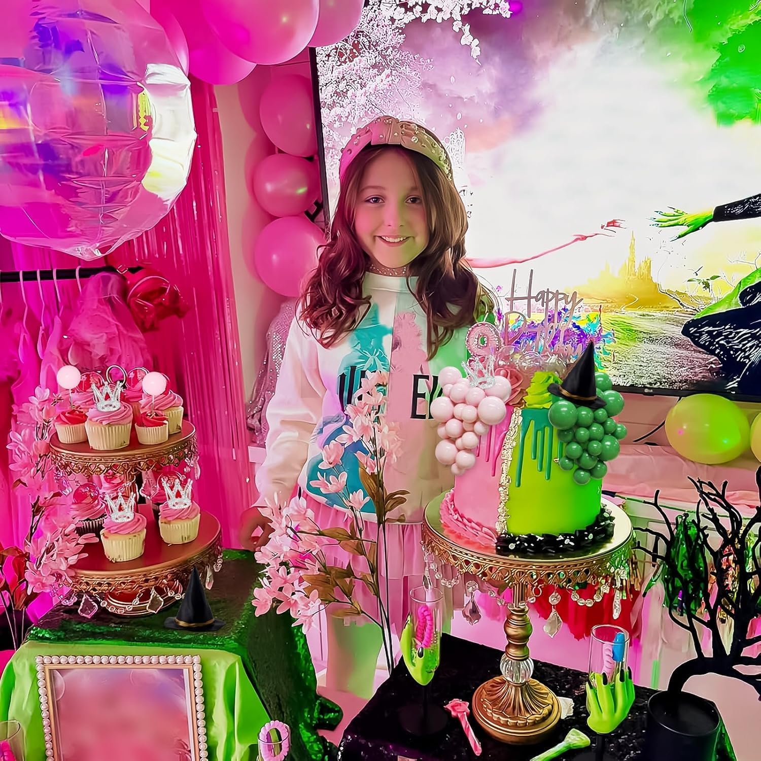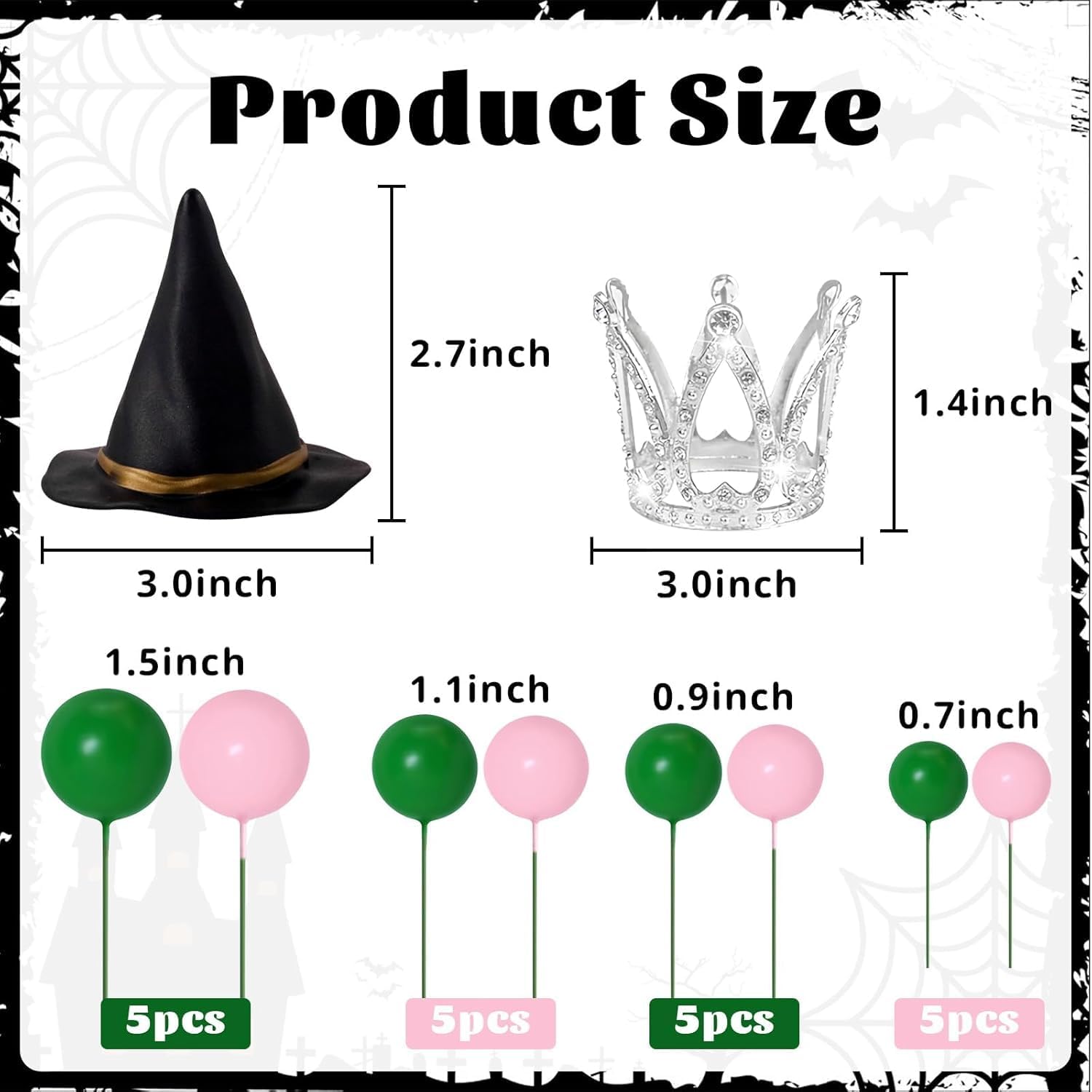 【Topper per torta da strega】: queste decorazioni per torta con cappello da strega da 42 pezzi contengono tutto il necessario per una stravagante celebrazione a tema strega: 40 decorazioni per palloncini per torta, 20 ciascuna in verde e rosa; Anche una corona d'argento e una decorazione per torta con un cappello da strega nero. Perfetto per creare un'atmosfera incantevole ispirata a streghe e principesse. 【Decorazioni per torte da strega】: questi toppers per torta con palline verdi e rosa sono realizzati in schiuma e filo; Inoltre abbiamo incluso una corona di plastica e un cappello da strega; Sono inodori, possono toccare il cibo, affidabili da usare. Attraverso un facile assemblaggio per completare una bellissima decorazione per torta di streghe. Nota: non è commestibile, è solo decorativo, non utilizzarlo nel forno o nel microonde. 【Decorazioni per torte con palloncini verdi e rosa】: Le nostre decorazioni per torte di compleanno delle streghe hanno il rosa, verde e nero come combinazione di colori principale, con elementi classici del tema delle streghe, decorazioni per torte ideali per la tua divertente festa a tema verde e rosa delle streghe. Risparmia tempo e goditi il momento della strega. 【Decorazioni per feste a tema verde e rosa】: Che tu stia organizzando una festa di compleanno di streghe o altri eventi di streghe, queste decorazioni di streghe possono fondersi perfettamente con le altre decorazioni di compleanno e migliorare l'atmosfera della festa. Il set di cappello da strega e corona per torta può essere visto come affascinante decorazione per feste di Halloween, eventi cosplay o qualsiasi riunione a tema principessa, aggiungendo un tocco unico alle tue festività. 【Servizio perfetto】: per qualsiasi problema o suggerimento di qualità, non esitate a contattarci!