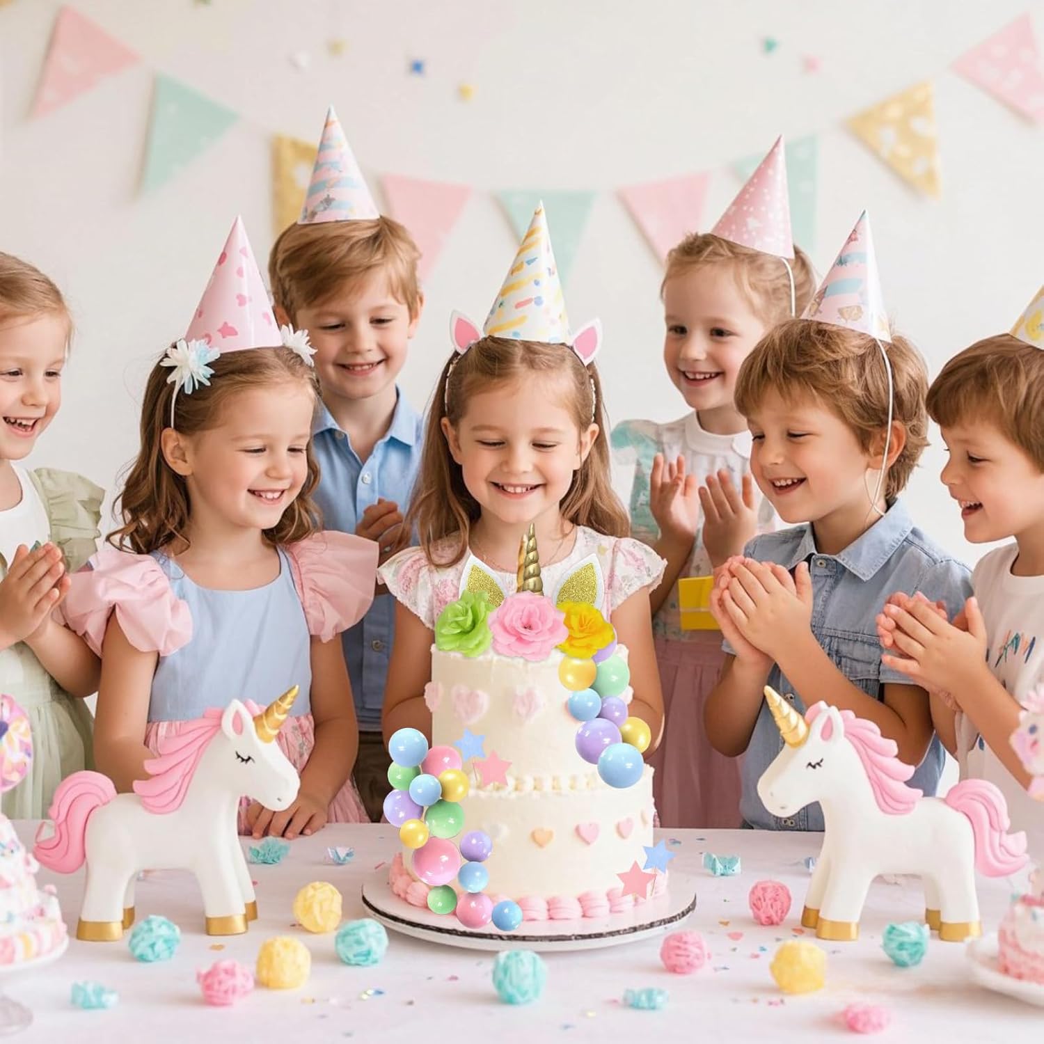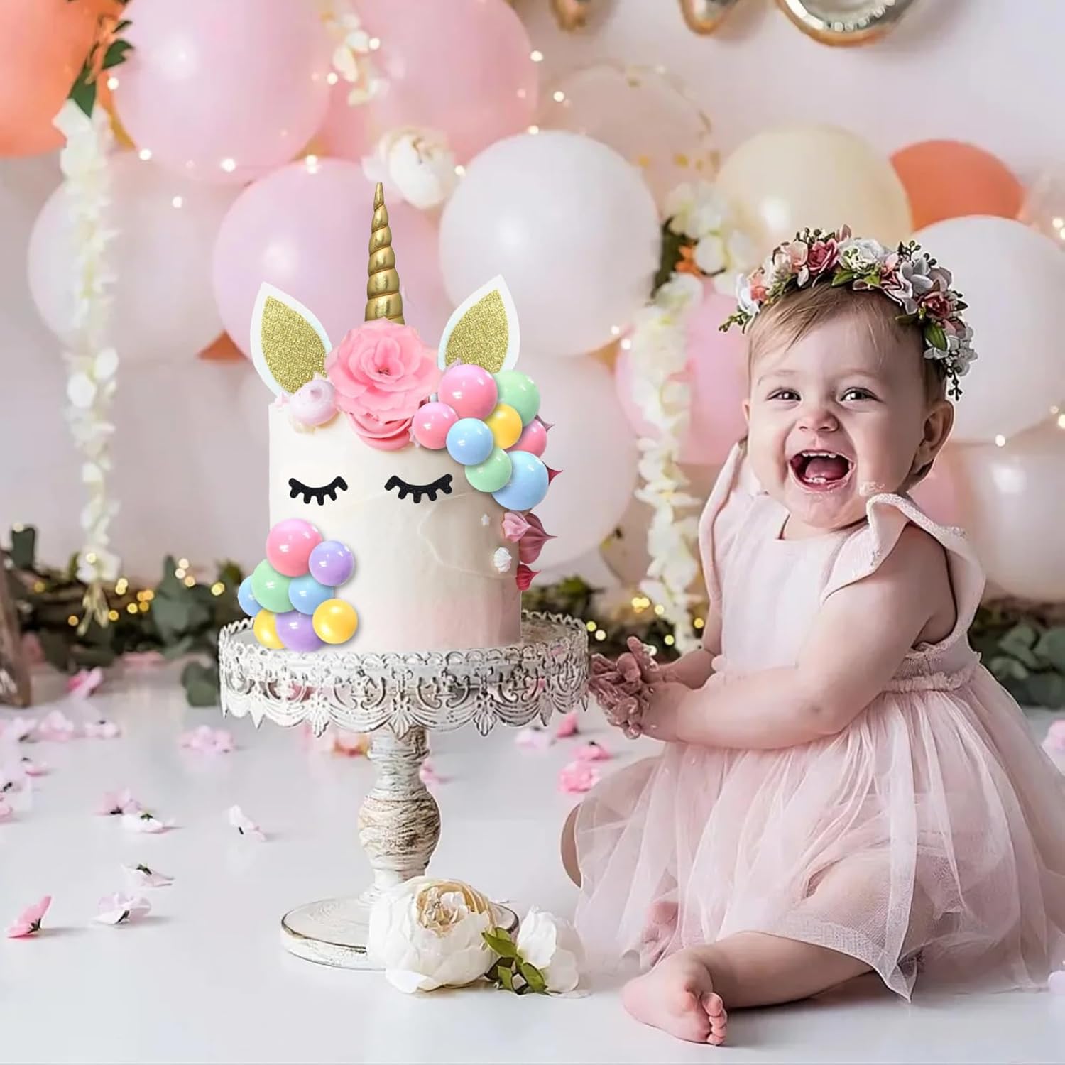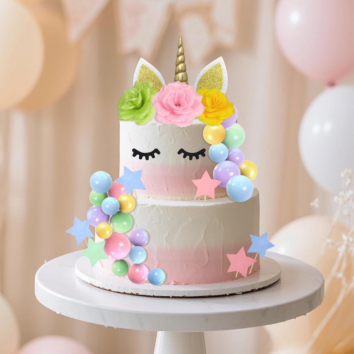 【Contenuto della confezione】: riceverai 1 set di topper per torta con unicorno, 22 palline, 30 stelle, 3 fiori artificiali. Le ciglia aggiungono un tocco vivace e adorabile alla tua torta di unicorno. 【Sicuro e riutilizzabile】: i nostri toppers per torta con unicorno sono sicuri (non commestibili) e possono essere utilizzati con sicurezza. Possono anche essere riutilizzati dopo la pulizia. 【Facile da usare】: basta inserire le decorazioni nella torta, quindi attaccare le ciglia con glassa o cannucce come desiderato - ed ecco che hai una bellissima torta di unicorno pronta da gustare! 【Versatile】: perfetto per compleanni, matrimoni, feste arcobaleno, anniversari, feste in giardino o tea party. Questa decorazione regala un'atmosfera magica e gioiosa a grandi e piccini. 【Regalo affascinante】: questo set di decorazioni per unicorno è un'idea regalo ideale per i tuoi cari o per te stesso. Crea una scintillante torta da favola per un'indimenticabile festa di compleanno a tema unicorno!