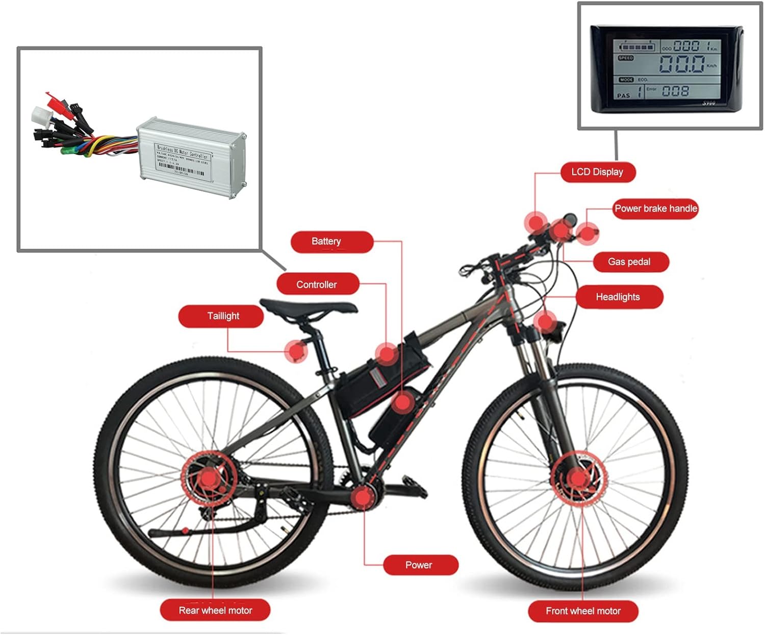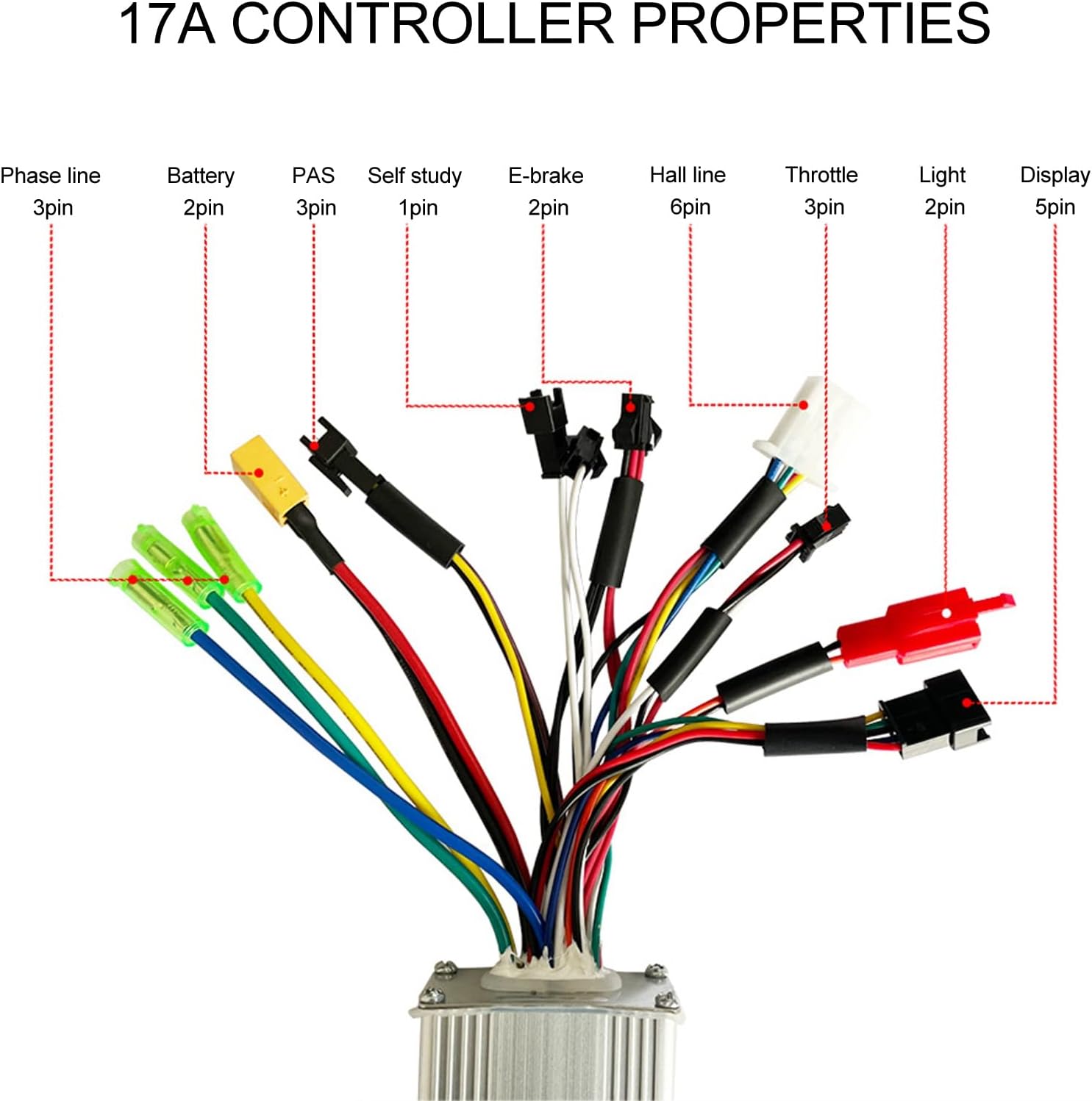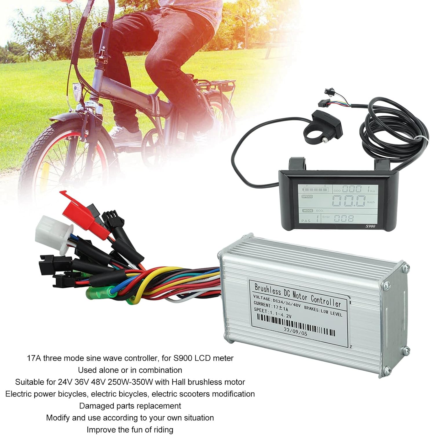 KIT DI CONVERSIONE: il kit di modifica al litio per bicicletta elettrica include un controller a onda sinusoidale a tre modalità da 17 A e un misuratore LCD S900. Questi componenti possono essere utilizzati singolarmente o combinati per una modifica completa della bicicletta elettrica. SOSTITUZIONE PERFETTA: Il kit controller è adatto per motori brushless Hall da 24 V, 36 V e 48 V 250 W-350 W, rendendolo una scelta perfetta per modificare biciclette elettriche, biciclette elettriche, scooter elettrici e sostituire parti danneggiate. Fornisce una soluzione conveniente per aggiornare e migliorare il tuo veicolo elettrico. MODALITÀ SUPPORTATA: Il kit controller dispone di una funzione di autoapprendimento. Quando il motore Hall funziona correttamente, funziona in modalità onda sinusoidale. In caso di malfunzionamento del motore Hall, passa automaticamente alla modalità onda quadra senza sensori Hall, garantendo funzionalità continua e facilità d'uso. DISPLAY COMPLETO: il misuratore LCD S900 è dotato di un guscio in ABS, che fornisce un'interfaccia chiara e intuitiva. Offre un controllo completo del veicolo e una visualizzazione digitale dello stato del veicolo. Il misuratore LCD può visualizzare la velocità di guida, la distanza di guida e altre informazioni essenziali, migliorando la tua esperienza di guida. LEGA DI ALLUMINIO DI RAFFREDDAMENTO: Il controller è costruito con un guscio in lega di alluminio di alta qualità progettato con scanalature per un'eccellente dissipazione del calore. Questo design protegge i circuiti interni dal sovraccarico termico e garantisce prestazioni e durata ottimali. Il misuratore LCD S900 è adatto per manubri da 22,2 mm ed è facile da installare, consentendo una perfetta integrazione nella configurazione della tua bicicletta elettrica.