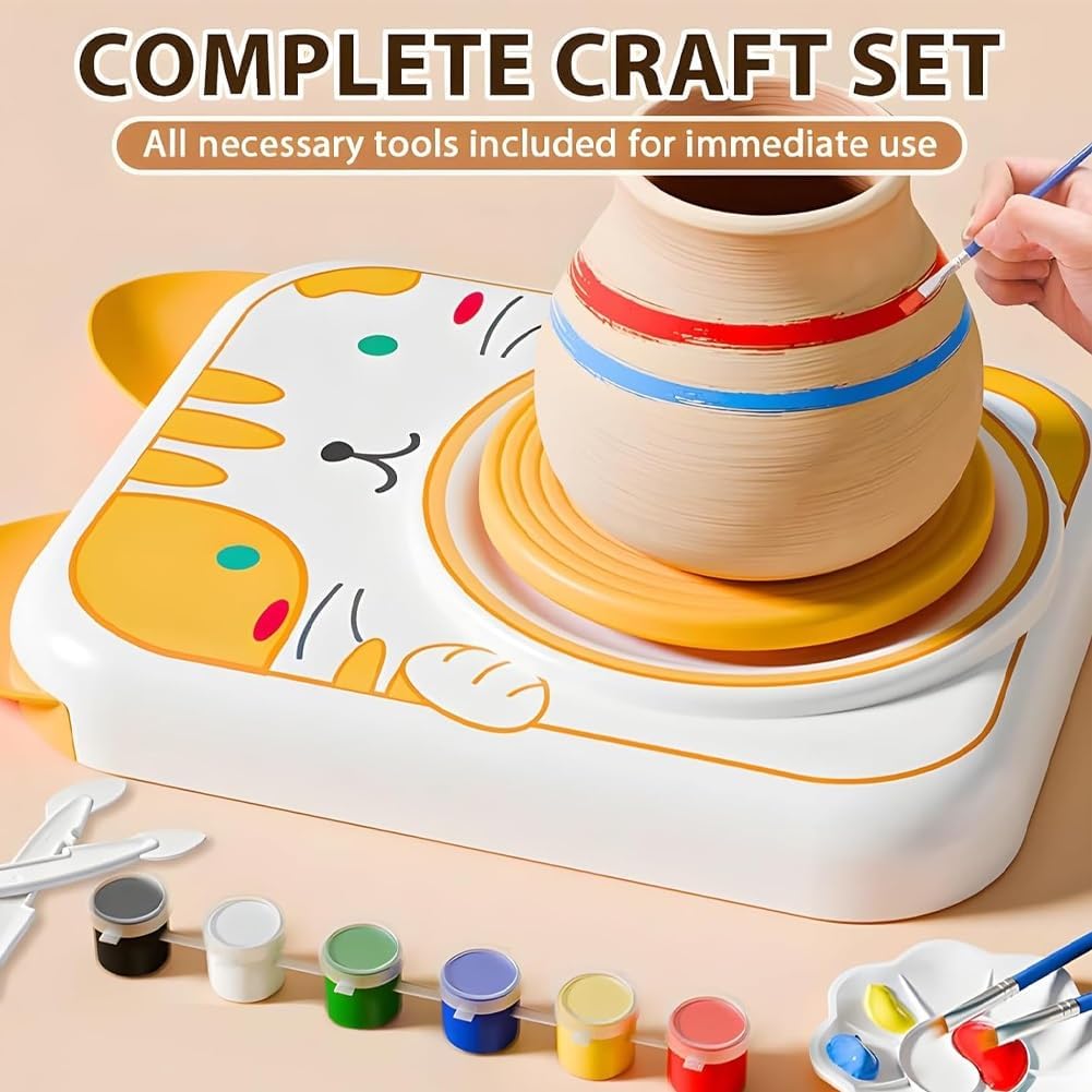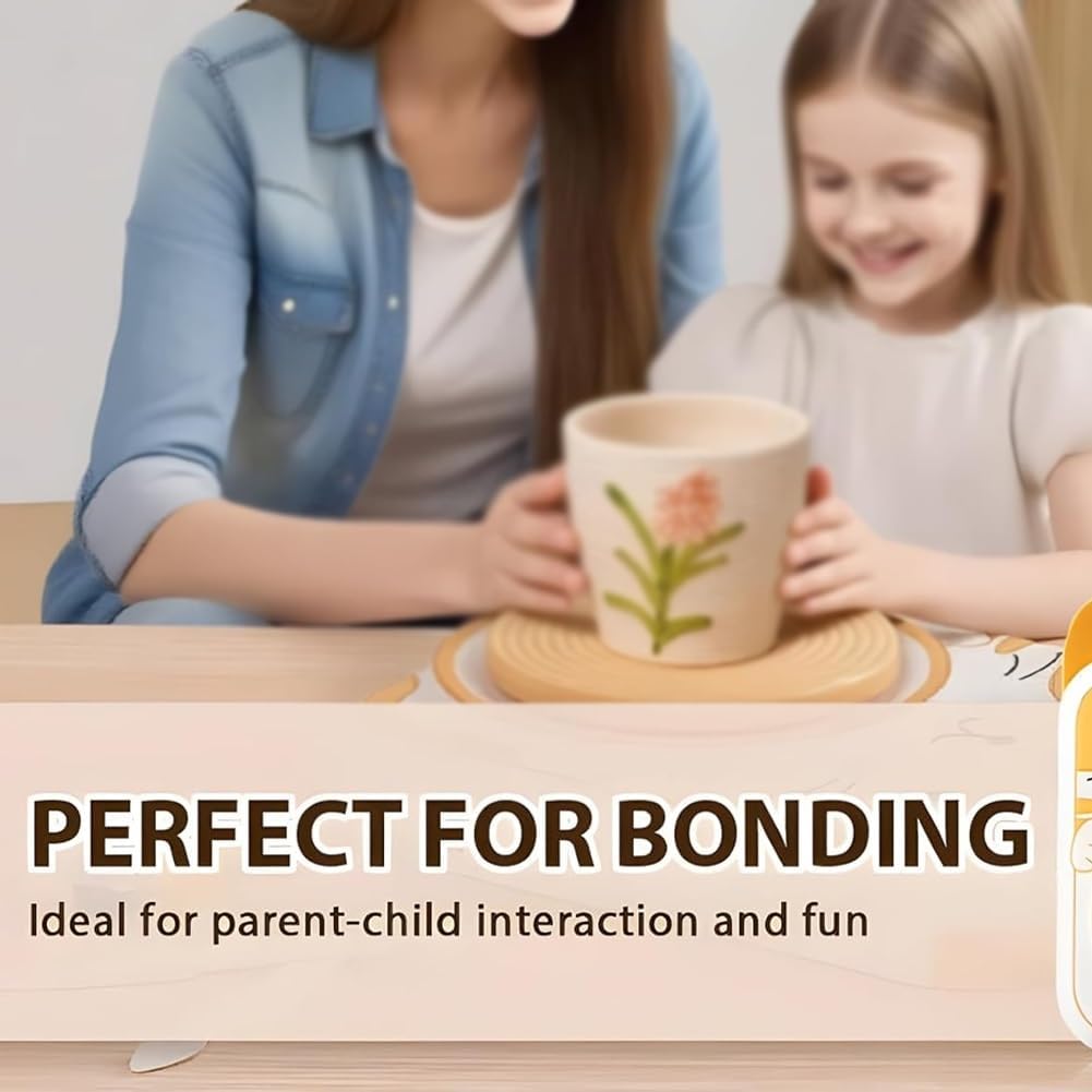 Stimola la creatività e lo sviluppo delle abilità: questo set di torni da vasaio è progettato per stimolare l'immaginazione dei bambini, migliorando al contempo le capacità motorie fini attraverso un gioco creativo e pratico. L'ambiente pratico consente ai bambini di modellare, modellare e decorare la propria ceramica, trasformando idee astratte in creazioni tangibili, il tutto sviluppando destrezza e concentrazione che favoriscono lo sviluppo precoce. Adorabili temi di animali che i bambini adorano: con graziosi stili di animali come gatti, coniglietti, cuccioli e mucche, il set aggiunge un tocco giocoso e apprezzato dai bambini ai progetti di ceramica. Questi graziosi design ispirano entusiasmo e coinvolgimento, rendendo più facile per i bambini rimanere coinvolti nelle loro creazioni ed essere orgogliosi dei loro pezzi finiti. Design intuitivo: con un'installazione semplice e intuitiva, il set è pronto per giocare fin da subito, senza bisogno di assemblaggi complicati o istruzioni. Realizzato in plastica ABS di alta qualità, è abbastanza resistente da sopportare il gioco attivo dei bambini, mentre l'argilla ecologica inclusa (morbida e facile da modellare) e le vernici vivaci e lavabili garantiscono un'esperienza senza problemi e senza stress sia per i bambini che per i genitori. Perfetto per il gioco individuale e di gruppo: che i bambini creino da soli o con gli amici, questo set favorisce la versatilità: supporta il gioco individuale per una creatività tranquilla e concentrata e il gioco di gruppo che incoraggia il lavoro di squadra, la comunicazione e l'amicizia. Condividere la gioia della ceramica aiuta i bambini a sviluppare abilità sociali, creando ricordi duraturi con fratelli, compagni di classe o compagni di gioco. Creare legami attraverso il gioco: un modo meraviglioso per genitori e bambini di creare ricordi insieme! Incoraggia il lavoro di squadra, la comunicazione e l'amicizia tra piccoli artisti. Che si tratti di gioco individuale o di attività di gruppo, offre infinite ore di gioiosa creatività.