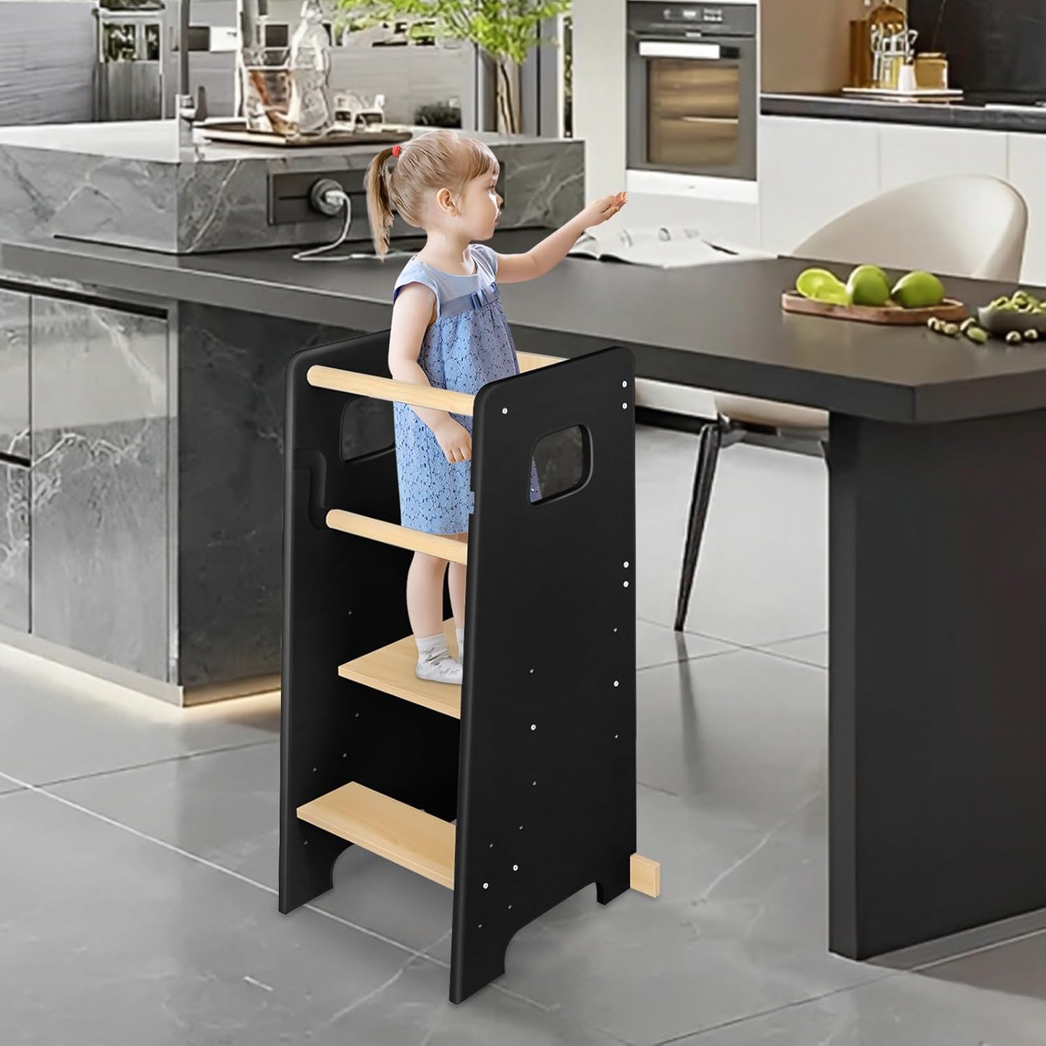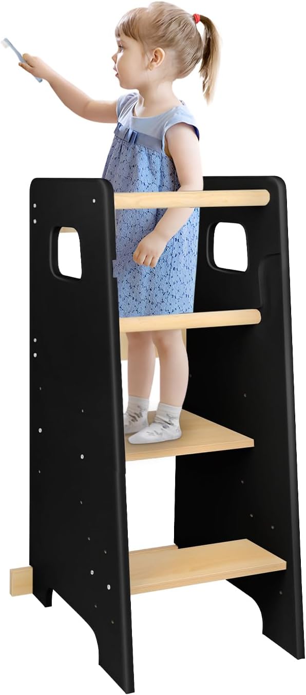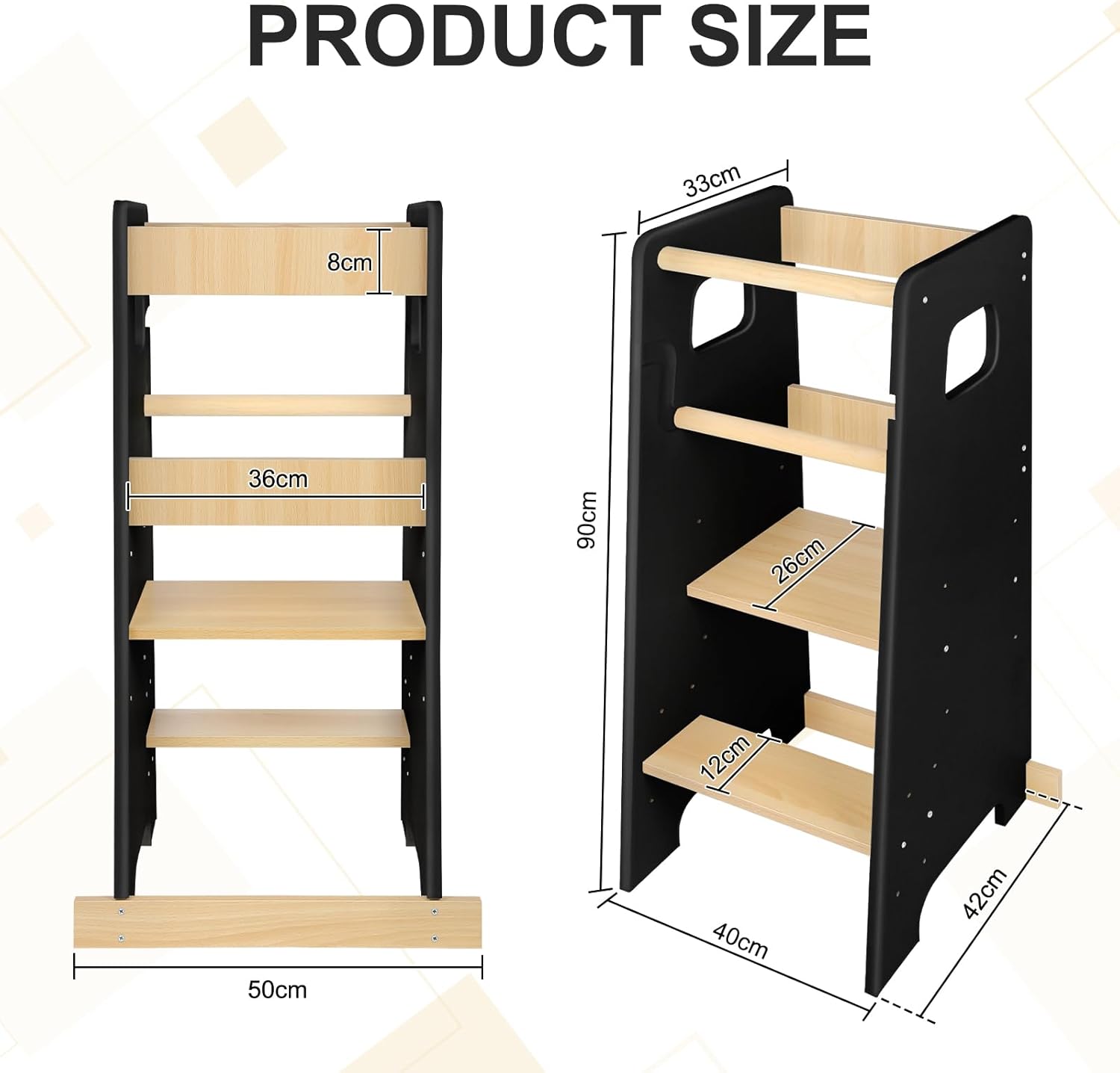 Massima sicurezza: ideale fin dall'età di 1 anno come giro di apprendimento. Robusta struttura a trapezio da 12 kg per evitare ribaltamenti. Questa torre di osservazione per bambini è progettata con una struttura solida e una base allargata per una stabilità ottimale. Realizzato con materiali di alta qualità di 18 mm di spessore, garantisce un ambiente sicuro, ideale da 18 mesi per esplorare con fiducia Incoraggia l'apprendimento e l'autonomia: grazie a questa torre di osservazione, il bambino può partecipare alle attività quotidiane come cucinare, lavarsi i denti o anche aiutare a riporre. Uno strumento perfetto per sviluppare le capacità motorie, la coordinazione e la fiducia in se stessi condividendo momenti preziosi in famiglia La Torre Montessori ideale: il nostro tour di osservazione incoraggia la partecipazione attiva del bambino alle attività quotidiane come la cucina e la pulizia, e promuove lo sviluppo motore e la fiducia in se stessi. Design evolutivo - Altezza regolabile: la torre di apprendimento cresce con il vostro bambino, grazie ai gradini e alla piattaforma regolabili in altezza. Ideale per bambini da 1 anno e perfetto per un uso a lungo termine, anche con una famiglia che cresce. Comfort e protezione quotidiana: con angoli arrotondati, finitura impermeabile e rivestimento antiscivolo, questa torre di osservazione Montessori è pratica ed estetica. Facile da pulire e sicuro per le mani piccole, si adatta armoniosamente alla tua casa