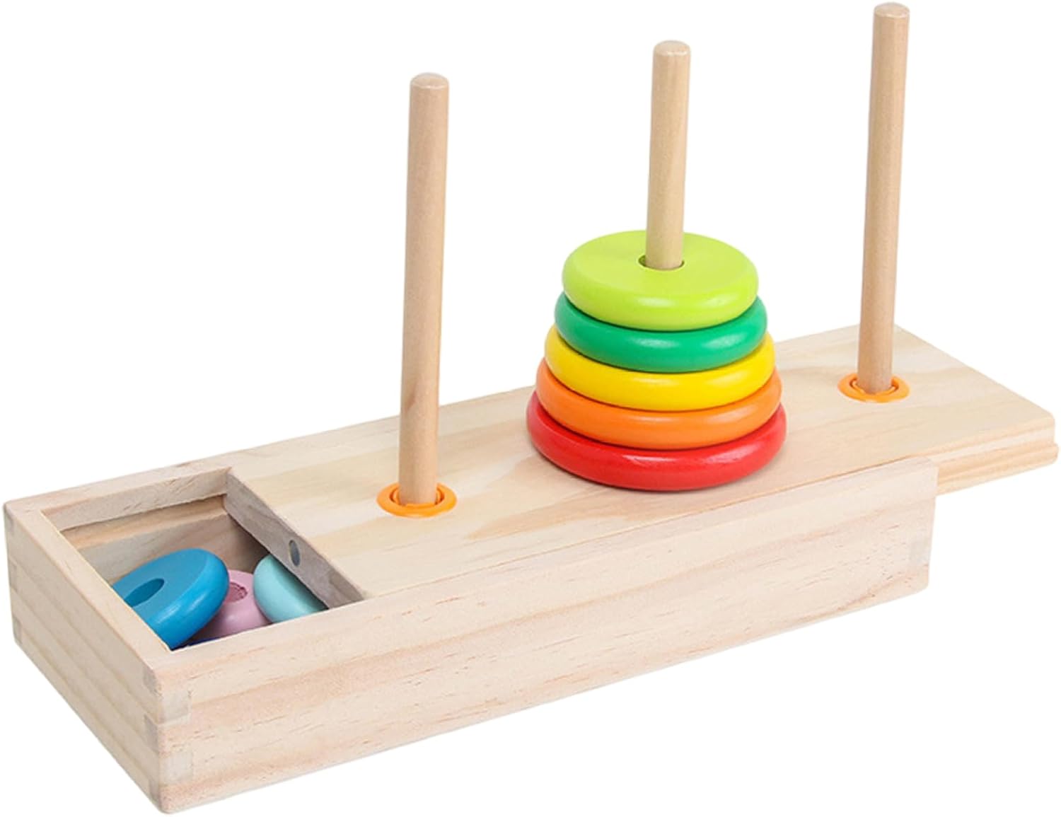 Migliora il pensiero logico: il puzzle rompicapo in legno della Torre di Hanoi è progettato per sfidare e migliorare le capacità di pensiero logico nei bambini dai 3 anni in su..Questo giocattolo coinvolgente promuove la risoluzione dei problemi e la pianificazione strategica, rendendolo uno strumento perfetto per la prima educazione. Affidabile e sicuro: realizzato in legno di alta qualità, questo set della Torre di Hanoi è costruito per durare..La finitura liscia e atossica garantisce la sicurezza dei bambini piccoli, rendendolo una scelta affidabile e senza preoccupazioni per i genitori. Idea perfetta: ideale per compleanni, vacanze o occasioni speciali, questo rompicapo in legno è un pensiero premuroso ed educativo per i bambini..Il suo design compatto lo rende facile da trasportare e riporre, perfetto sia per l'uso domestico che in viaggio. Sviluppa le capacità motorie: man mano che i bambini impilano e smontano i blocchi, migliorano la coordinazione occhio-mano e le capacità motorie..Questo puzzle interattivo è più di un semplice giocattolo;.è uno strumento di sviluppo che favorisce la crescita in molteplici ambiti. Divertimento impilabile arcobaleno: caratterizzata dai vivaci colori dell'arcobaleno, questa torre impilabile in legno offre un'esperienza sensoriale che cattura l'attenzione dei bambini..I blocchi colorati rendono l'apprendimento divertente e visivamente accattivante, incoraggiando i bambini a giocare ed esplorare.