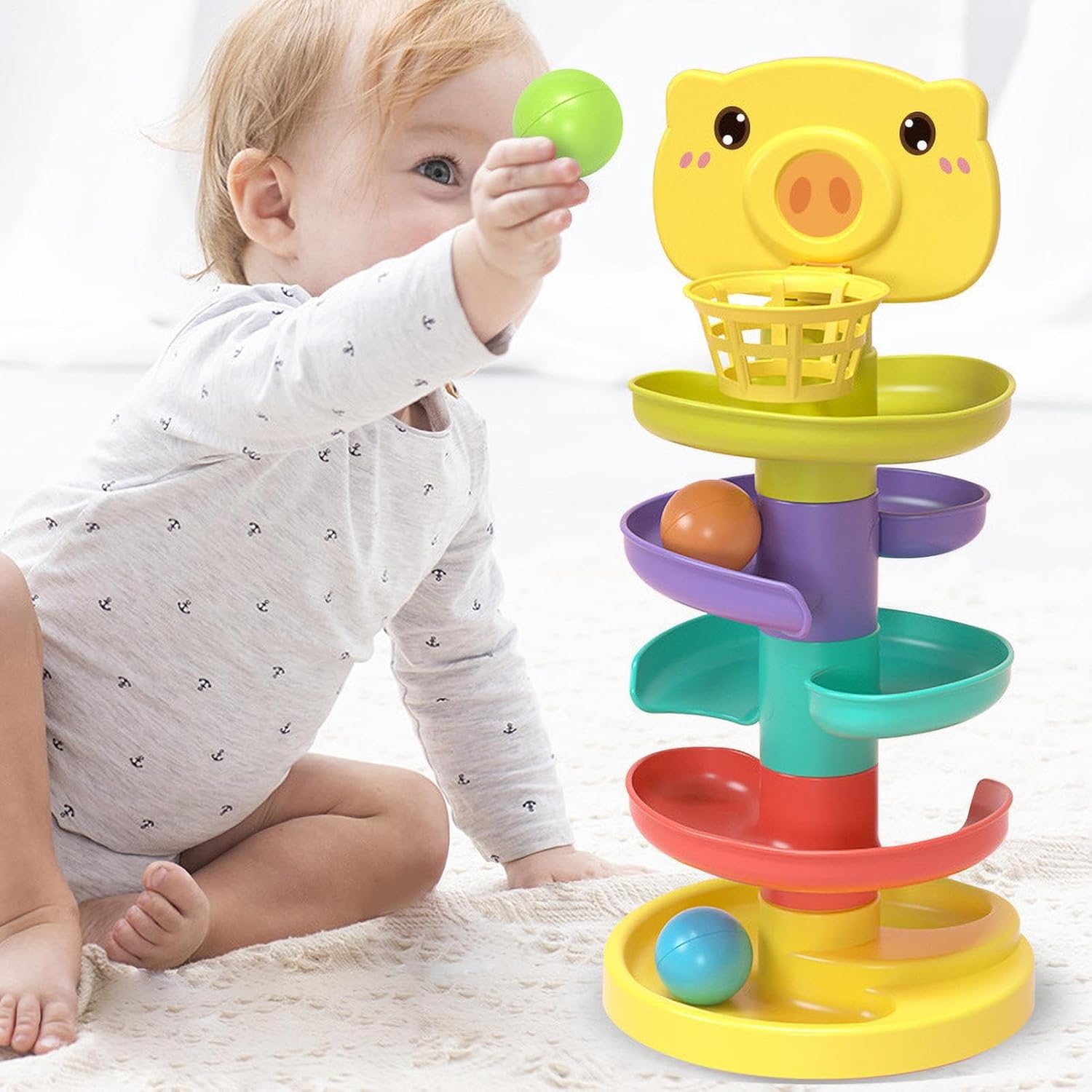 Allenamento con le dita: questa torre a sfera è un ottimo giocattolo per i bambini per migliorare le loro abilità pratiche e creatività. Questo giocattolo aiuta anche con l'allenamento della presa, la forza delle dita e la coordinazione. ABS ecologico: scegli la nostra torre a sfera realizzata in ABS e silicone ecologici, che consente al tuo bambino di giocare in sicurezza e senza irritazioni proteggendo la sua salute. Aumenta la creatività: questa torre a sfera emette suoni divertenti quando le palline cadono, attirando l'attenzione di tuo figlio e stimolando la sua curiosità. Migliorerà anche il tuo pensiero logico. Migliora la connessione: rafforza il tuo legame con i tuoi cari mentre giochi insieme con la torre. Crea momenti indimenticabili, crea fiducia e costruisci una relazione forte. ASPETTO VIVENTE: la nostra simpatica torre a forma di salvadanaio a forma di cartone animato migliora l'apprendimento di tuo figlio con espressioni vivide e colori vivaci a ogni livello, tenendolo occupato e divertito.