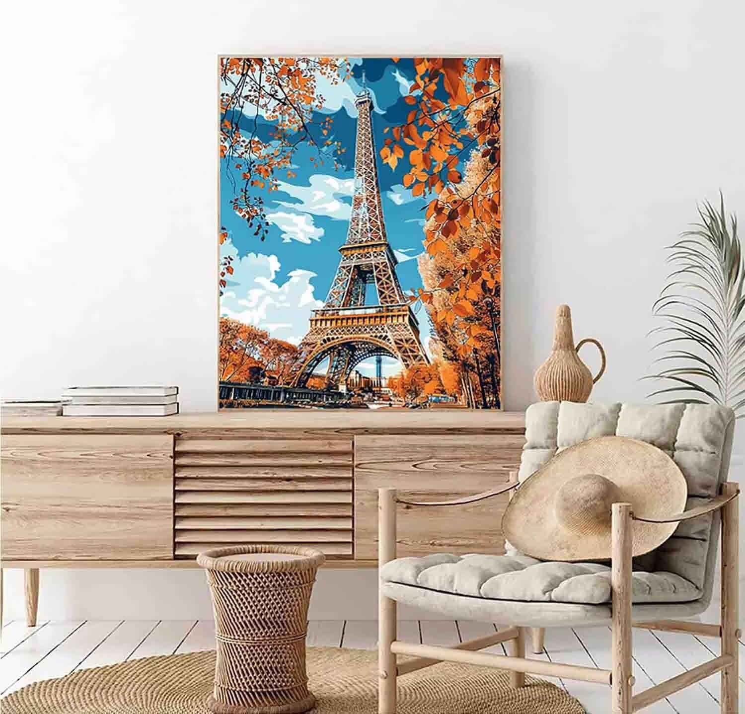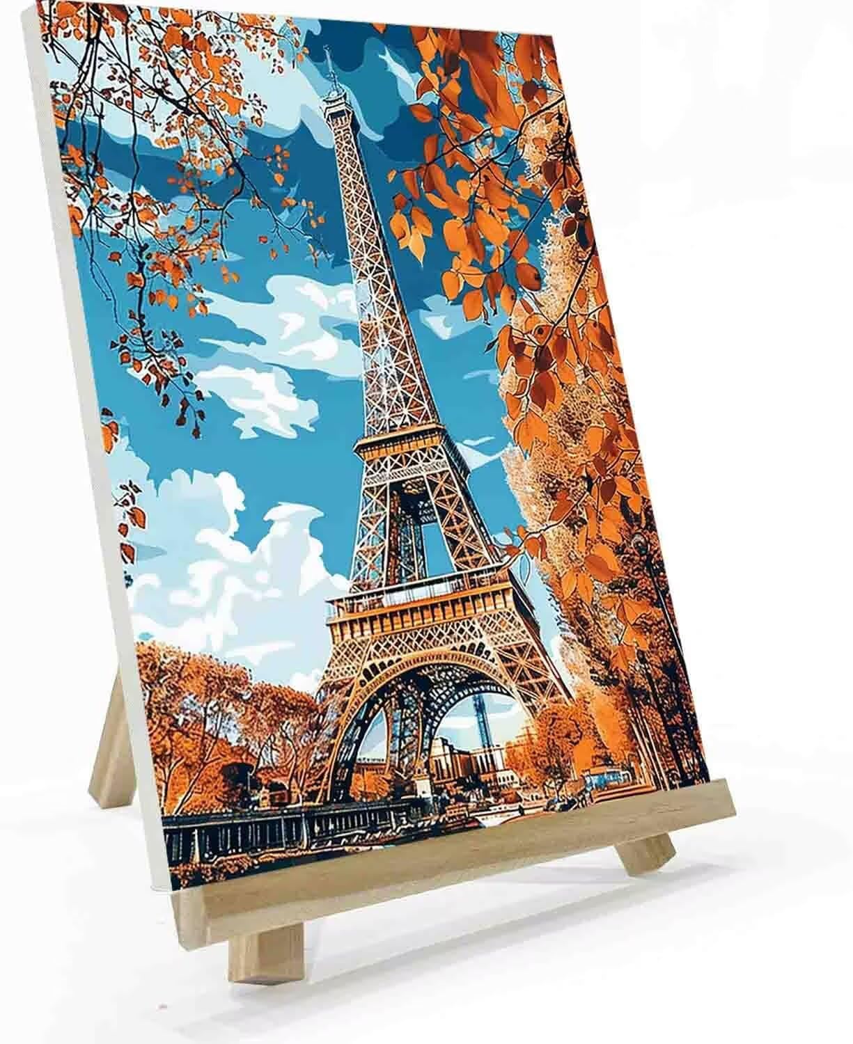 Torre Eiffel Dipingere con i Numeri Adulti, Dipingere con i Numeri Parigi Paint by Numbers con 3 Pennelli e Vernice Acrilica Tela Antipiega Painting by Numbers Kits Regalo 30x40cm (con Telaio) g-C9