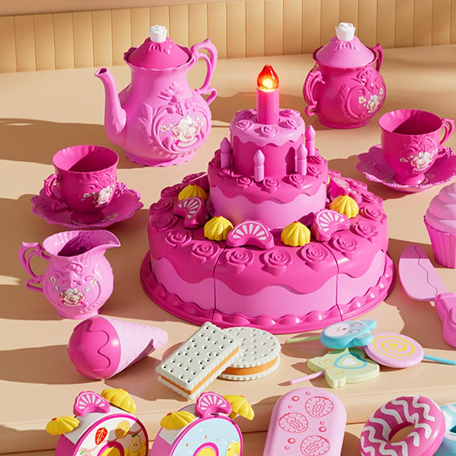 Esercizio di Coordinazione Occhio-Mano: Il giocattolo torta di compleanno a tre strati permette di sperimentare il divertimento ideale del taglio della torta. Assemblando le fette con il tagliatore di torta incluso, si pratica la coordinazione occhio-mano e le abilità motorie fini, in un'attività educativa che aiuta lo sviluppo delle capacità motorie in modo piacevole ed . Divertimento Interattivo e Realistico: Rendi il gioco più vivido e interessante poiché le sulla torta possono accendersi, simulando reali celebrazioni di compleanno con effetti sonori e luminosi realistici. Questo giocattolo interattivo con torta di compleanno offre un'esperienza dinamica che cattura l'immaginazione dei bambini, incoraggiando il gioco di ruolo e l'esplorazione creativa in un ambiente festoso e sicuro per tutte le età. Stimolo Creativo per Bambini: Regala al bambino un presente che amerà, questo giocattolo torta di compleanno è il set che offre ore di divertimento e aiuta a sviluppare le competenze sociali. Un giocattolo ideale che insegna e diverte, stimolando la creatività e l'interazione attraverso il gioco immaginativo. Il giocattolo torta di compleanno è progettato per intrattenere e educare i bambini in modo equilibrato. Promuove il Pensiero Logico: I bambini esplorano la loro immaginazione con una varietà di come stoviglie, tazze da tè, biscotti, gelati e numerosi altri . Con oltre 20 pezzi, possono mescolare e abbinare liberamente per ogni scenario di festa, sviluppando così il pensiero logico e le abilità creative. Il giocattolo torta di compleanno incoraggia la risoluzione di problemi e la pianificazione attraverso il gioco pratico e imaginativo. Costruzione Robusta e Stimolante: Il nostro giocattolo torta di compleanno è realizzato in materiali ABS e PP con bordi lisci e una finitura accuratamente lucidata. Presenta un design colori vivaci che stimola i sensi visivi e l'immaginazione dei bambini. La costruzione robusta assicura stabilità e resistenza, ideale per il gioco attivo e ripetuto. I materiali e la finitura liscia garantiscono sicurezza e longevità, mentre i colori accattivanti favoriscono il gioco immaginativo e lo sviluppo