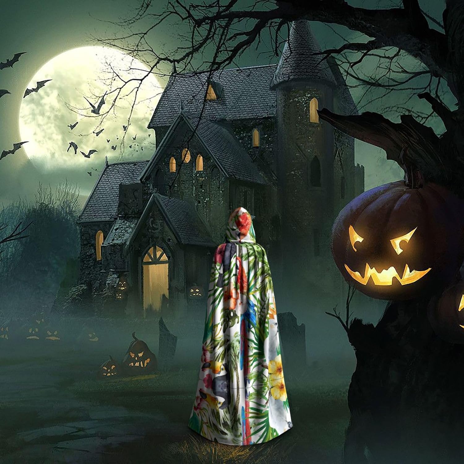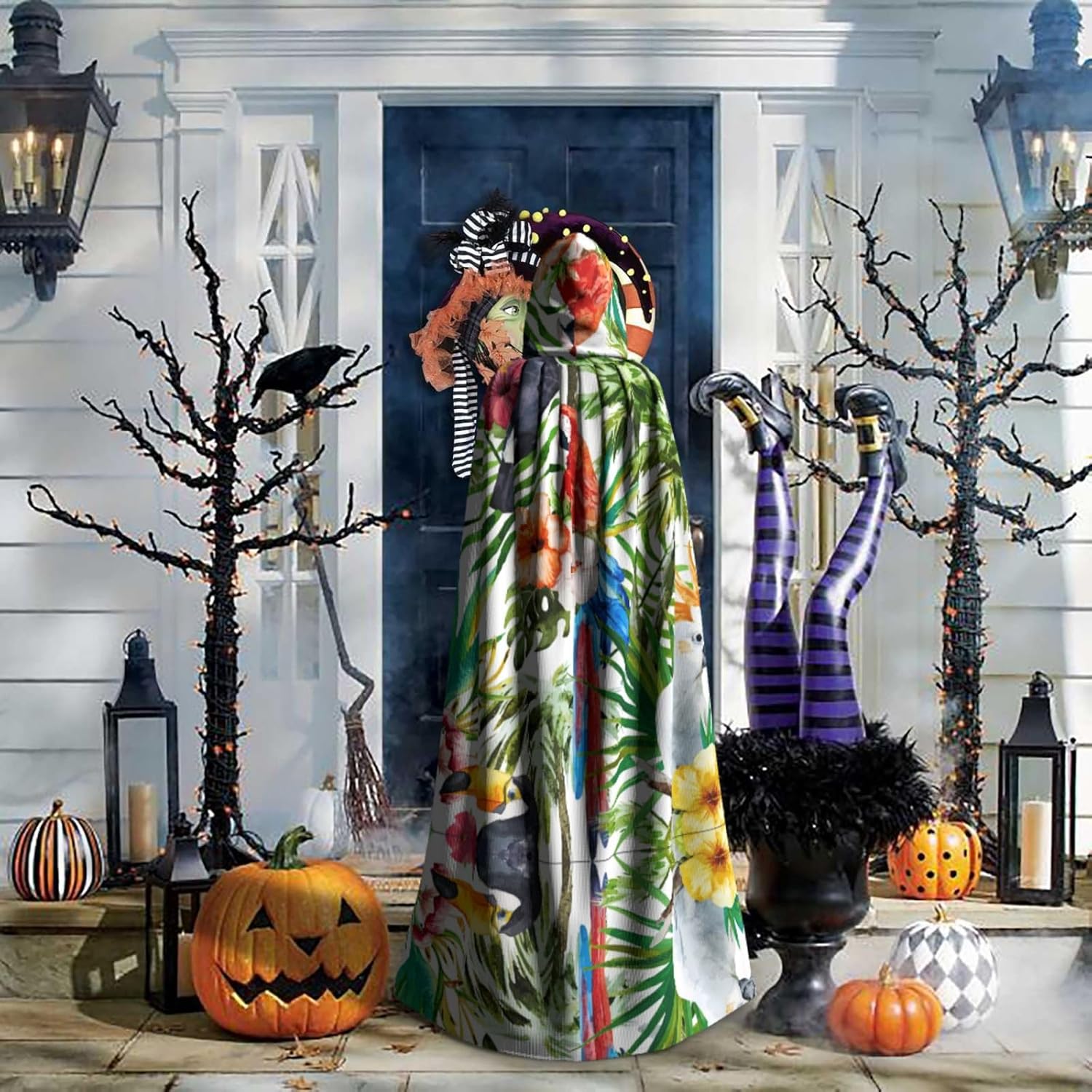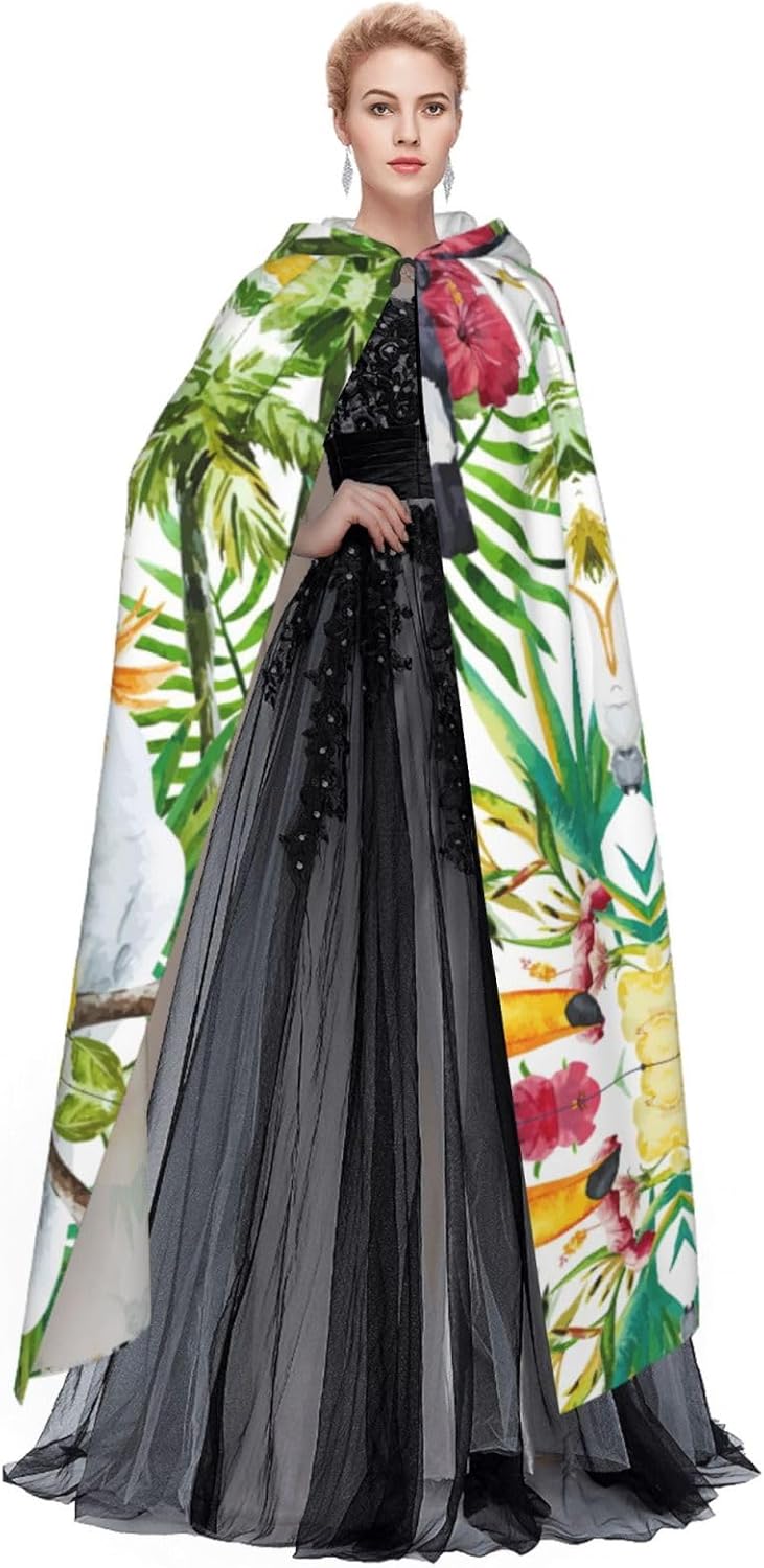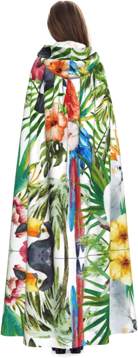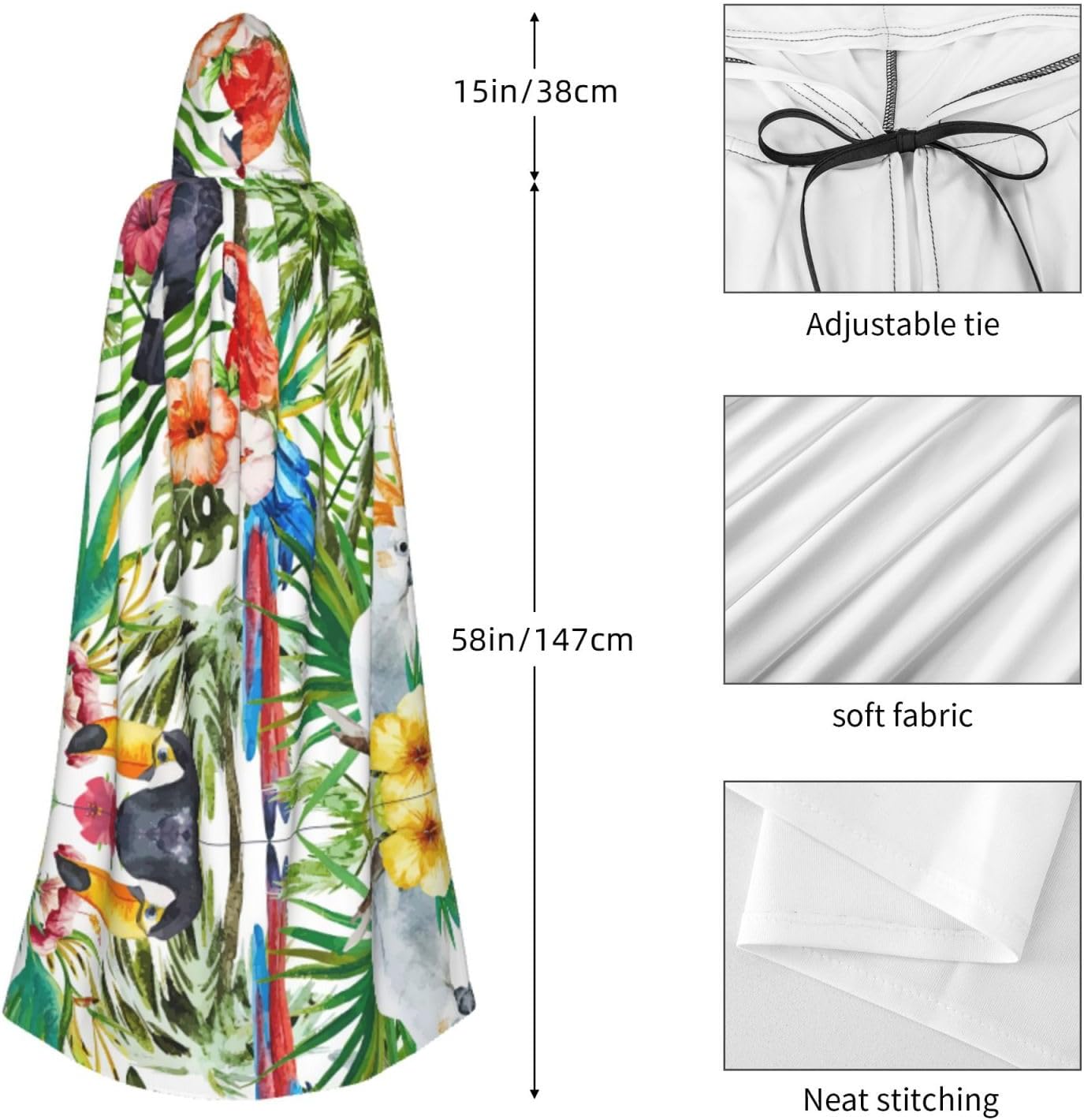 Il mantello con cappuccio per Halloween è realizzato con tessuto in poliestere morbido anche sulla pelle, prevenendo qualsiasi irritazione. Il mantello presenta un ampio cappuccio e uno stile annodato senza cerniere per un design sofisticato ed elegante. Con la sua dimensione universale, offre una copertura completa, adatta a tutti, assicurandoti di distinguerti tra la folla. Questo mantello con stampa di foglie di palma da pappagallo tucano non è solo per Halloween; è abbastanza versatile per cosplay, spettacoli teatrali, balli in maschera, feste a tema e molto altro ancora.