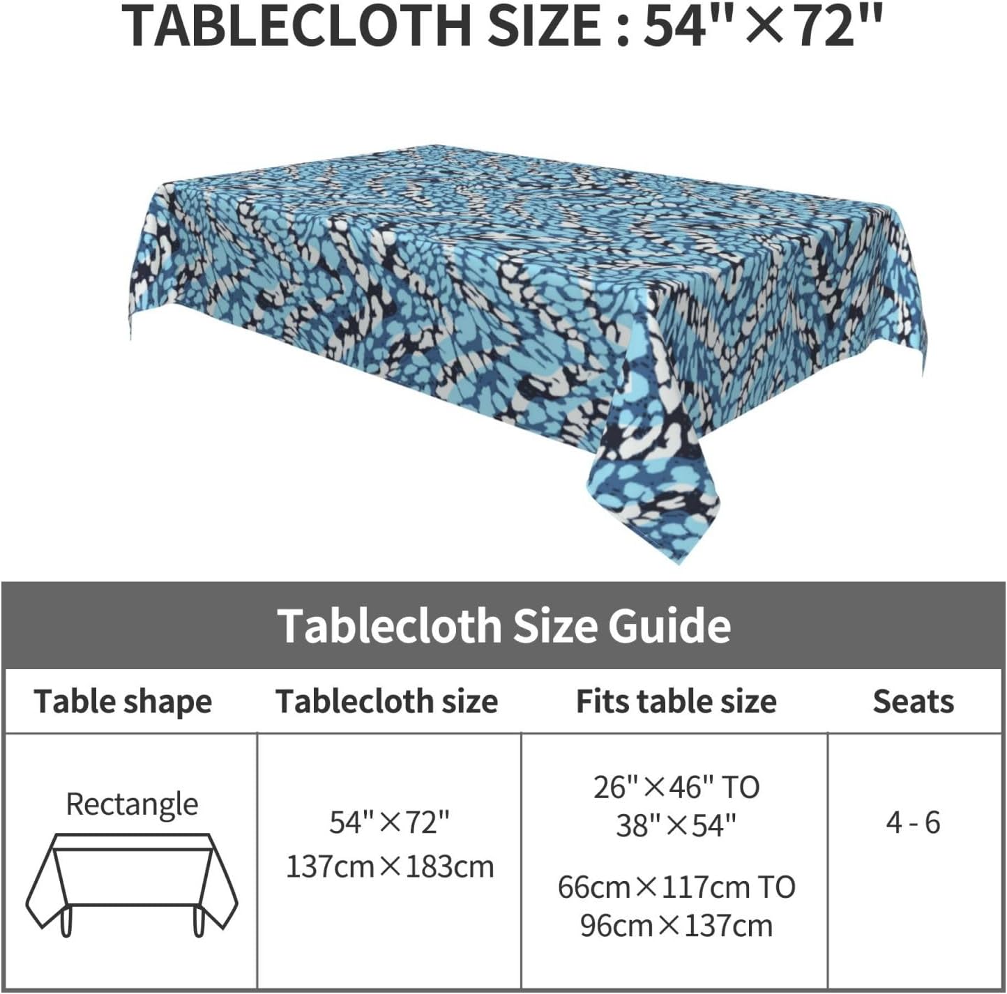 Tessuto tovaglia: la nostra tovaglia leopardata blu astratta è realizzata in tessuto poliestere di alta qualità, offrendo una sensazione morbida e accogliente. Il materiale resistente all'acqua protegge il tuo tavolo da schizzi e macchie, rendendolo una tovaglia ideale per varie occasioni.,Resistente alle pieghe e riutilizzabile: questa tovaglia leopardata blu astratta è resistente alle pieghe e può essere facilmente lavata e riutilizzata per mantenere il tuo tavolo da pranzo fresco e pulito. Perfetto per scopi decorativi e funzionali, sia come tovaglia da pranzo che come tovaglia da esterno. Dimensioni della tovaglia: 54" x 72". Questa tovaglia rettangolare con stampa leopardata blu astratta si adatta a tavoli da 26" x 46" a 38" x 54". È un'aggiunta versatile alla decorazione della tua tavola, adatta come tovaglia da picnic o tovaglia da esterno.,Decorazioni per la casa: queste tovaglie rettangolari blu leopardate astratte non solo proteggono il tuo tavolo da graffi e macchie, ma aggiungono anche un tocco festoso alla tua sala da pranzo. La tovaglia è perfetta per valorizzare l'arredamento della tua casa mantenendo la tavola pulita e protetta