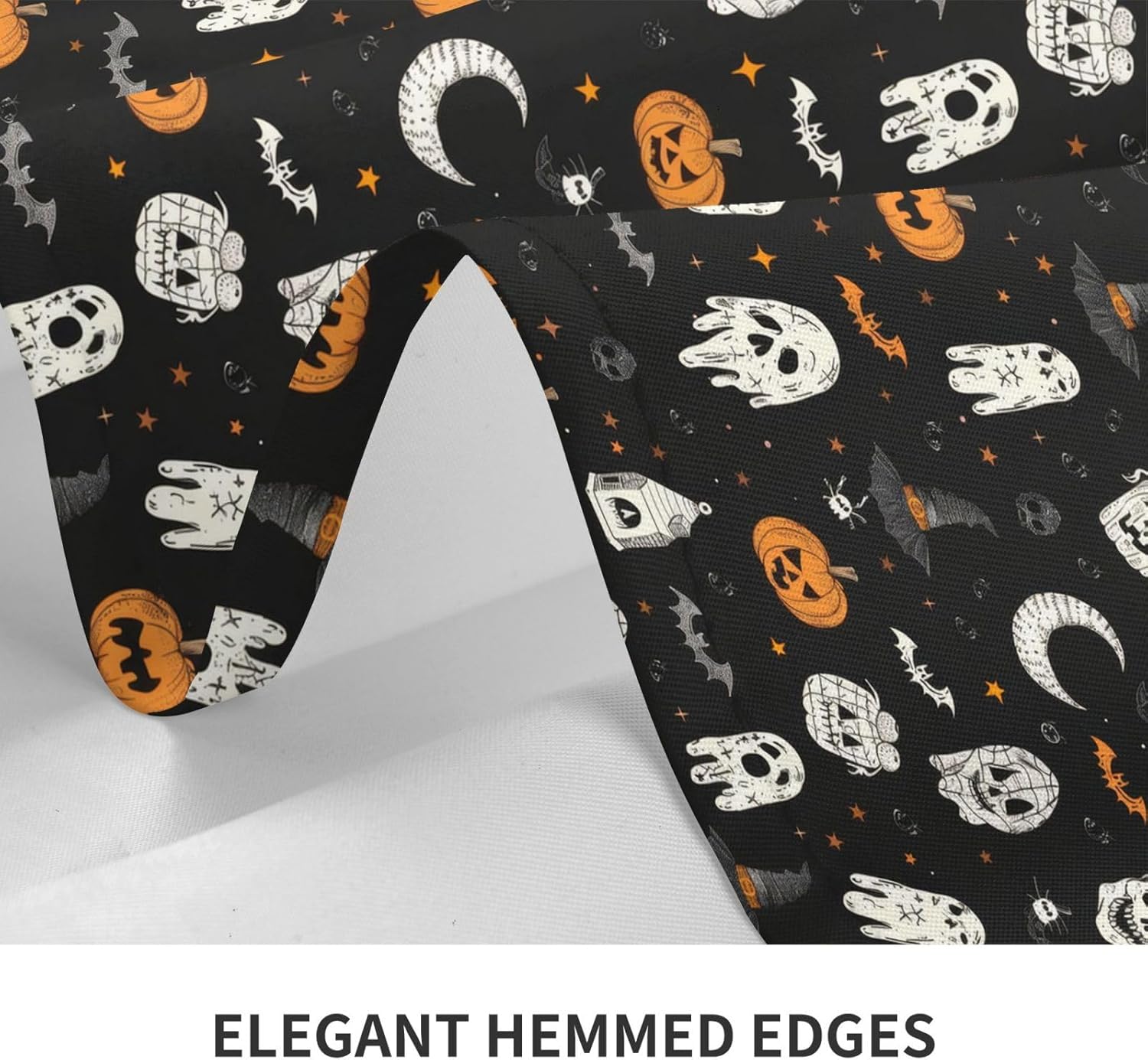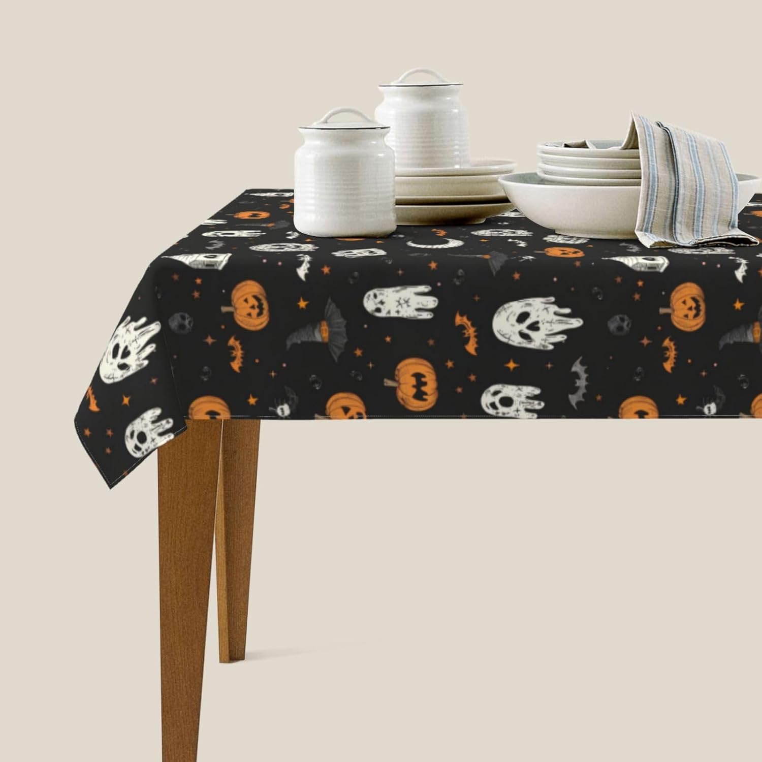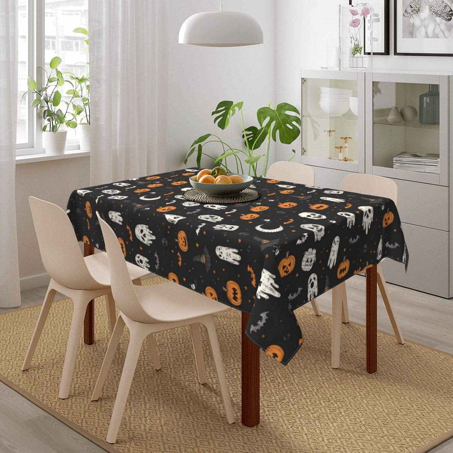 Tessuto tovaglia: la nostra tovaglia con elementi di Halloween è realizzata in tessuto poliestere di alta qualità, fornendo un tocco morbido e accogliente. Il materiale resistente all'acqua protegge il tuo tavolo da schizzi e macchie, rendendolo una tovaglia ideale per varie occasioni. Resistente alle pieghe e riutilizzabile: questa tovaglia con elementi di Halloween è resistente alle pieghe e può essere facilmente lavata e riutilizzata per mantenere il tuo tavolo da pranzo fresco e pulito. Perfetto per scopi decorativi e funzionali, sia come tovaglia da pranzo che come tovaglia da esterno. Dimensioni della tovaglia: 54" x 72". Questa tovaglia rettangolare con elementi di Halloween si adatta a tavoli da 26" x 46" a 38" x 54". MULTIUSO: La nostra tovaglia con elementi di Halloween è adatta a qualsiasi ambiente interno o esterno, inclusi caffè, cene, brunch, buffet, picnic, matrimoni e feste. È un'aggiunta versatile alla decorazione della tua tavola, adatta come tovaglia da picnic o tovaglia da esterno.,Decorazioni per la casa: questa tovaglia rettangolare con elementi di Halloween non solo protegge il tuo tavolo da graffi e macchie, ma aggiunge anche un tocco festoso alla tua sala da pranzo. La tovaglia è perfetta per valorizzare l'arredamento della tua casa mantenendo la tavola pulita e protetta