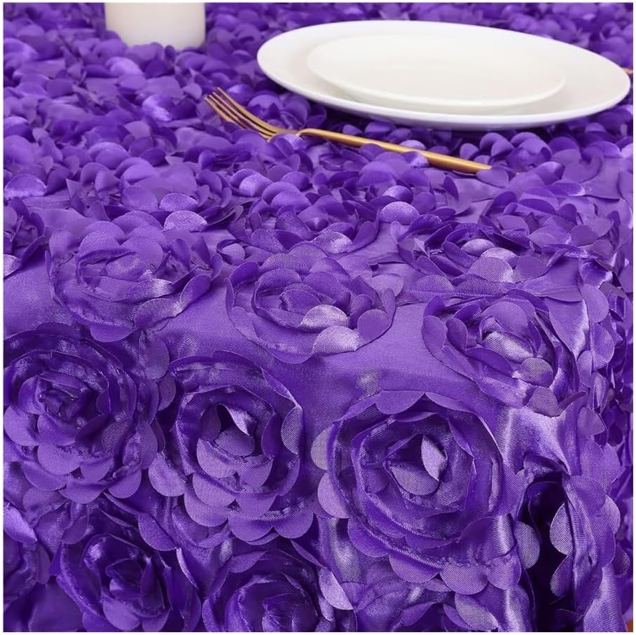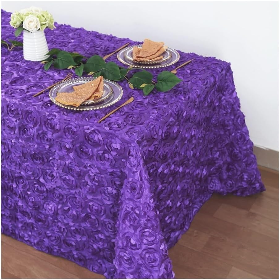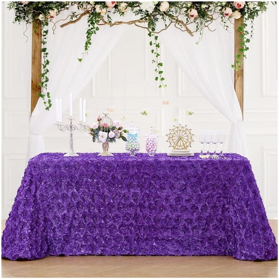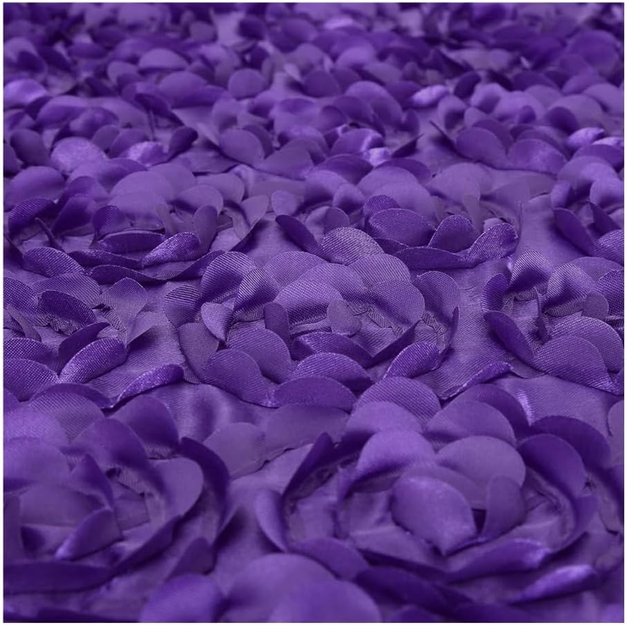 Tovaglia con rosette, 228 x 33 cm, viola, rettangolare, motivo floreale 3D, tovaglia in raso, per cerimonia, feste, decorazione da tavolo (bianco)