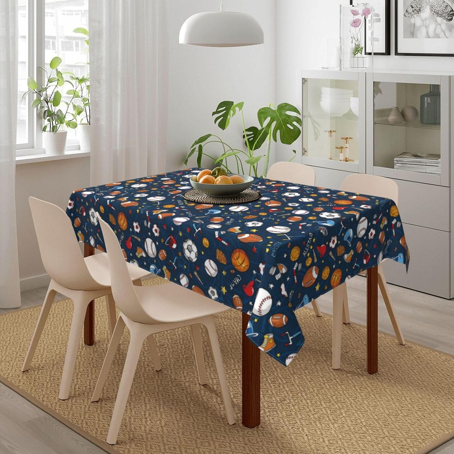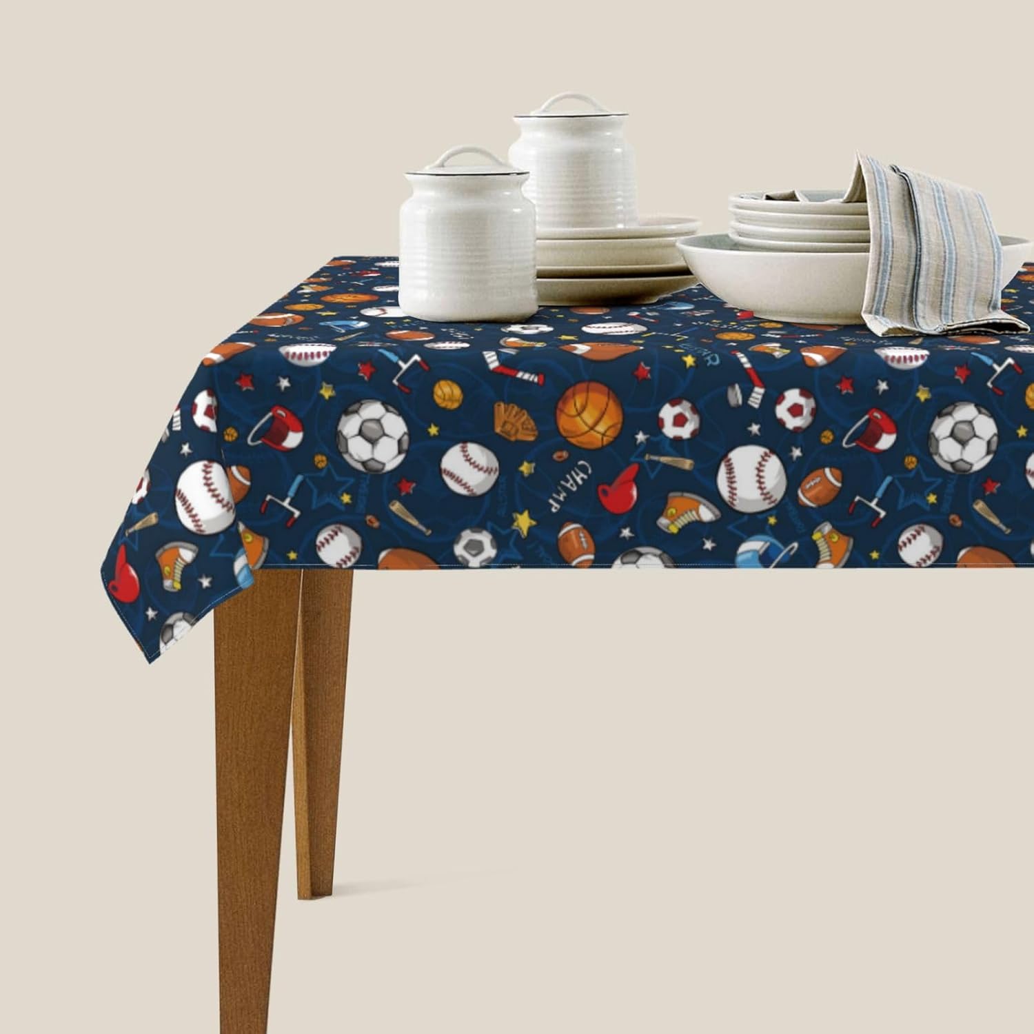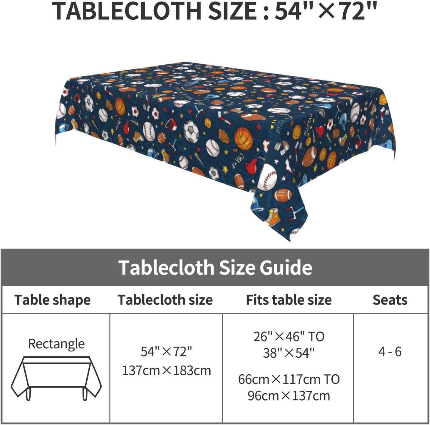 Tessuto tovaglia: la nostra tovaglia da calcio da baseball è realizzata in tessuto poliestere di alta qualità, fornendo un tocco morbido e accogliente. Il materiale resistente all'acqua protegge il tuo tavolo da schizzi e macchie, rendendolo una tovaglia ideale per varie occasioni.,Resistente alle pieghe e riutilizzabile: questa tovaglia da calcio da baseball è resistente alle pieghe e può essere facilmente lavata e riutilizzata per mantenere il tuo tavolo da pranzo fresco e pulito. Perfetto per scopi decorativi e funzionali, sia come tovaglia da pranzo che come tovaglia da esterno. Dimensioni della tovaglia: 54" x 72". Questa tovaglia da calcio da baseball rettangolare si adatta a tavoli da 26" x 46" a 38" x 54". È un'aggiunta versatile alla decorazione della tua tavola, adatta come tovaglia da picnic o tovaglia da esterno.,Decorazioni per la casa: questa tovaglia da calcio rettangolare non solo protegge il tuo tavolo da graffi e macchie, ma aggiunge anche un tocco festoso alla tua sala da pranzo. La tovaglia è perfetta per valorizzare l'arredamento della tua casa mantenendo la tavola pulita e protetta