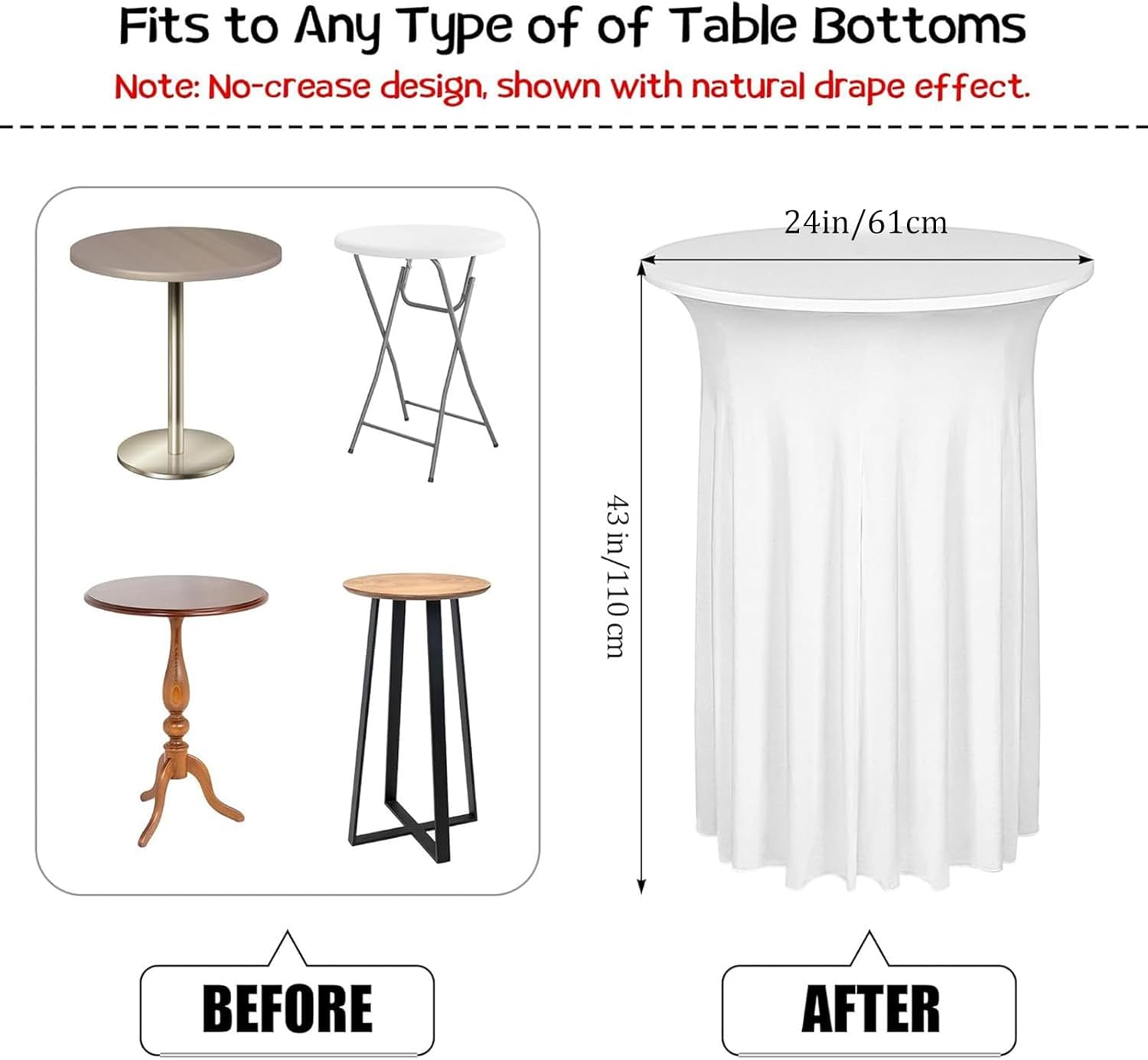 Manutenzione che fa risparmiare tempo: questa tovaglia può essere lavata in lavatrice o a mano, si asciuga naturalmente e si conserva senza pieghe. La tolleranza di 3 cm di lunghezza garantisce un utilizzo adattabile e una facile conservazione Orlo elegante con stabilità: la cintura elastica in elastan con dettaglio orlo appesantito garantisce una vestibilità antiscivolo su tavoli rotondi alti e combina stabilità con un design elegante per eventi Ideale per celebrazioni: che si tratti di un cocktail party, una cena o una festa di compleanno, questa tovaglia aggiunge eleganza a qualsiasi evento e garantisce un'atmosfera accogliente e invitante Materiale robusto ed elastico: realizzata in robusto tessuto spandex, questa tovaglia unisce resistenza ed eleganza. Resiste allo strappo e alla deformazione e le sue proprietà elastiche e opache nascondono gli oggetti sottostanti, mentre la superficie resistente allo sbiadimento garantisce un uso a lungo termine. Regolazione semplice: si apre e si posiziona facilmente per un effetto elegante, con anelli rimovibili per resistenza allo scivolamento e funzionalità ottimizzata