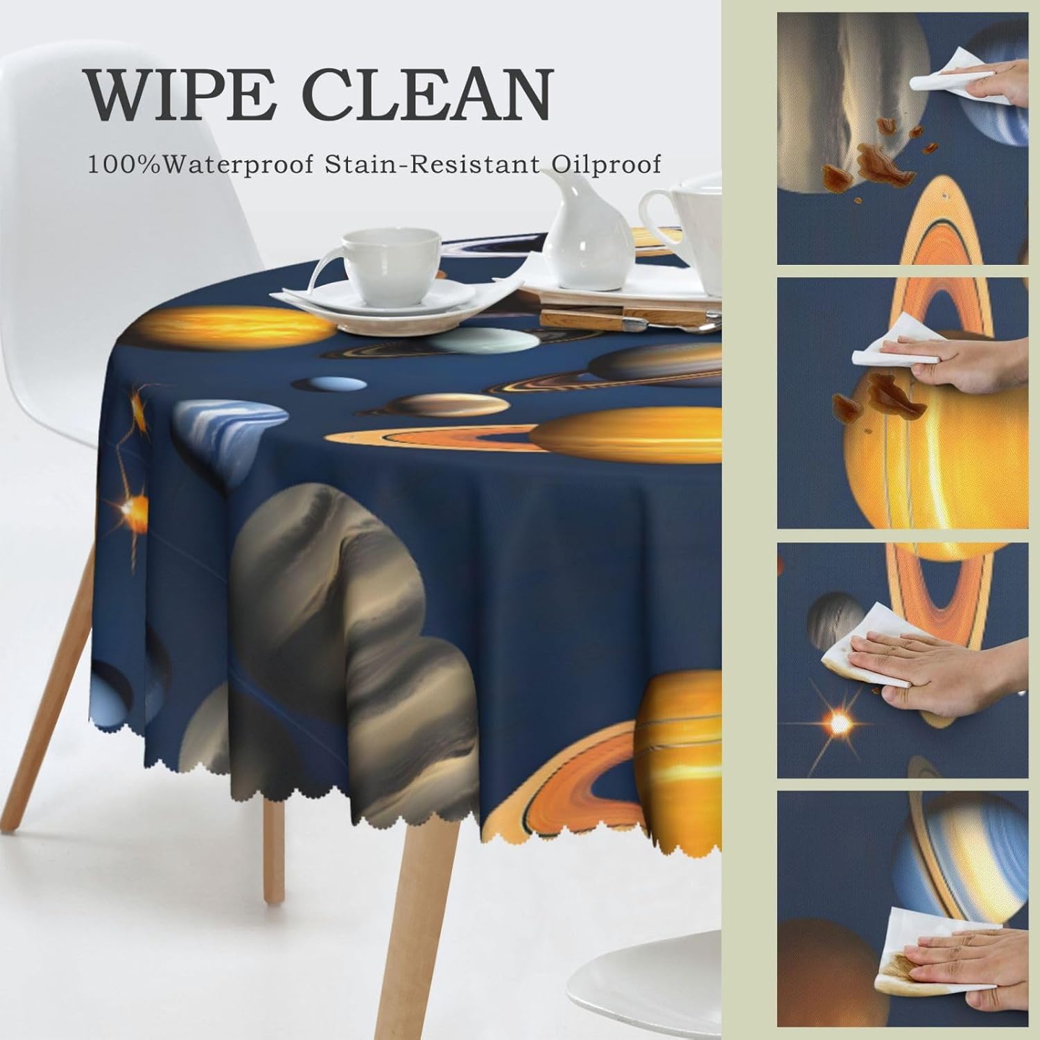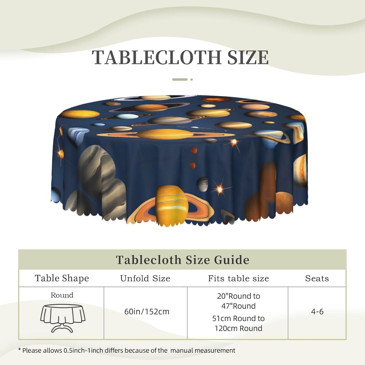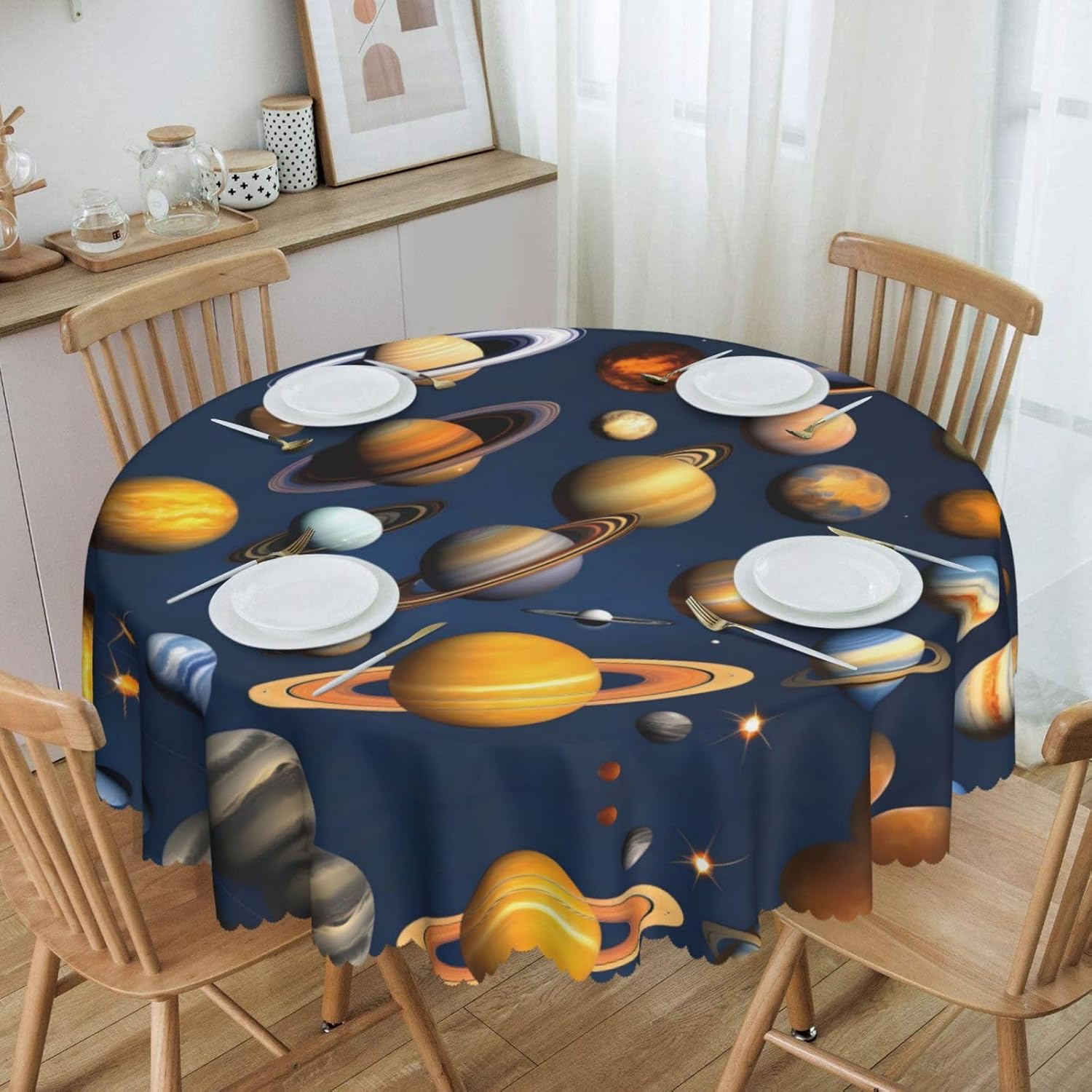 Tovaglia rotonda in pizzo Solar System Planet: 60 pollici di diametro, con dettagli eleganti e raffinati, adatta per tavoli da pranzo e tavoli da pranzo familiari, esaltando l'atmosfera della stanza, come un'opera d'arte. 【Materiale della tovaglia】 È realizzata al 100% in poliestere, che non è facile da immergere in acqua e protegge il piano del tavolo. È morbido e caldo, ha una consistenza delicata, una buona resistenza alle pieghe e non sbiadisce né si deforma dopo ripetuti lavaggi. Ampia gamma di usi: è possibile pranzare sia all'interno che all'esterno. I caffè creano un'atmosfera piacevole, le cene in famiglia aggiungono calore, i picnic uniscono natura e cibo e le feste di matrimonio sono elementi decorativi, adatti a tutti i tipi di tavole rotonde. Morbido al tatto: la tovaglia sembra seta, ha una buona resistenza alle pieghe, protegge il piano del tavolo dalle macchie, rende il piano del tavolo in tinta unita pieno di vitalità e un nuovo aspetto. La tovaglia è facile da pulire: può essere lavata a mano o in lavatrice e non può essere candeggiata. Evitare la luce solare diretta per evitare lo sbiadimento. La stiratura a bassa temperatura e una cura adeguata possono prolungarne la durata e accompagnarti a lungo.