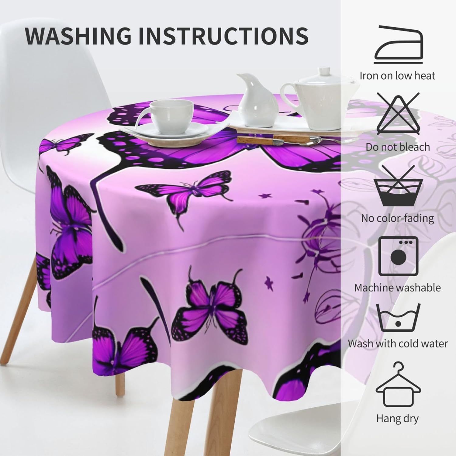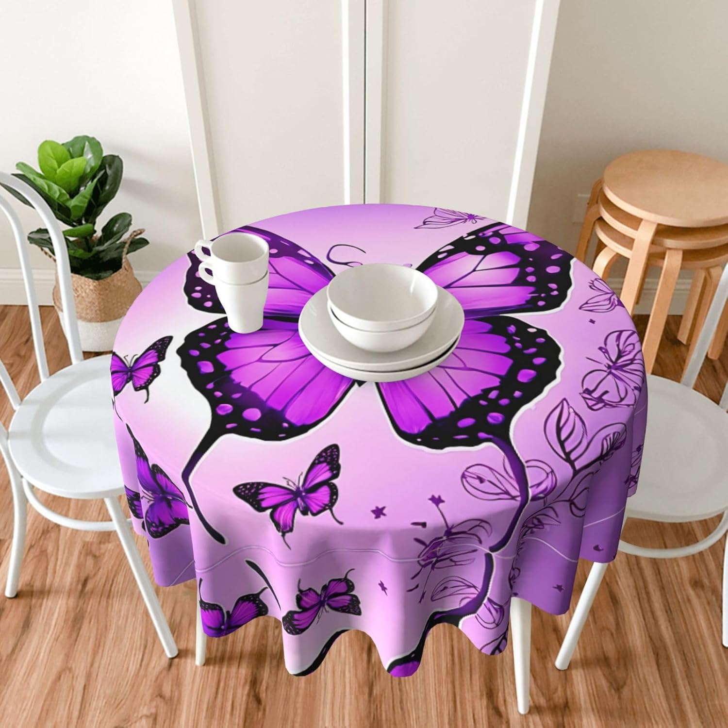 Tessuto DUREVOLE Antimacchia e Antiversamento con Farfalla Viola: Realizzata in poliestere di alta qualità, questa tovaglia rotonda presenta una superficie a prova di perdite che protegge la tua zona pranzo da schizzi, macchie di cibo e usura, garantendo un uso duraturo. COLORI VIVENTI E RESISTENTI allo sbiadimento: i colori vivaci della tovaglia rimangono luminosi e freschi anche dopo numerosi lavaggi. Il design resistente allo sbiadimento li rende perfetti per uso interno ed esterno e aggiunge un'atmosfera allegra ad ogni pasto. Versatile per tutte le sale da pranzo: ideale per una varietà di occasioni come cene di famiglia, brunch, picnic, barbecue, matrimoni e feste. Il design rotondo si adatta perfettamente a tavolini da tè, tavoli da pranzo o allestimenti da picnic, fornendo un'aggiunta funzionale e decorativa al tuo spazio. Facile da pulire: questa tovaglia non è solo elegante ma anche pratica. È lavabile in lavatrice o può essere lavato a mano con facilità per una pulizia senza problemi. Non devi preoccuparti di scolorimento, restringimento o macchie gravi dopo ogni lavaggio. DIMENSIONE PERFETTA PER QUALSIASI TAVOLA ROTONDA: Con un diametro di 60 pollici, questa tovaglia è progettata per adattarsi alla maggior parte dei tavoli rotondi standard, rendendola la scelta ideale per qualsiasi evento. Il tessuto senza pieghe li rende facili da stendere e hanno sempre un bell'aspetto.