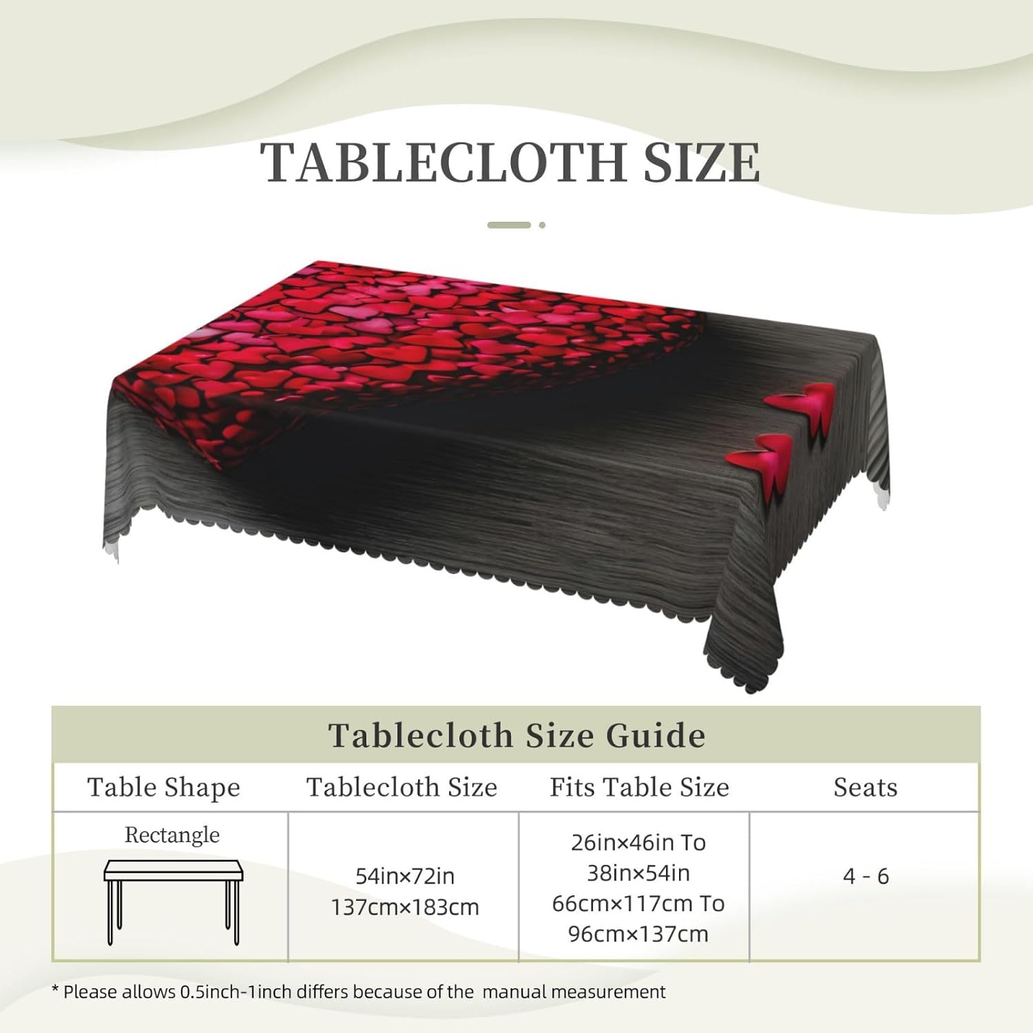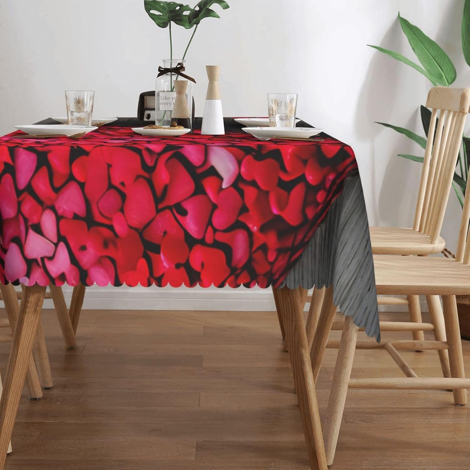 Questa tovaglia decorativa rettangolare a forma di cuore rosso che cade è una tovaglia con motivo a cuore rosso da 137x183 cm realizzata in materiale poliestere, calda e morbida, buona resistenza alle pieghe, può essere lavata e riutilizzata, protegge dalla polvere e protegge da ammaccature, scheggiature e graffi. Tovaglia con motivo a cuori rossi che cadono, può essere utilizzata sia all'interno che all'esterno, ideale per feste, matrimoni, campeggio, patio, compleanno in famiglia, buffet, barbecue, tavoli da cucina, ecc. Tovaglia quadrata con motivo a cuori rossi, bordo in pizzo semicircolare, Attenzione: non candeggiare, non esporre alla luce del sole, sono accettabili sia il lavaggio a mano che in lavatrice a temperatura ambiente e la stiratura a bassa temperatura. In caso di problemi o domande, contattateci, vi risponderemo entro 24 ore.
