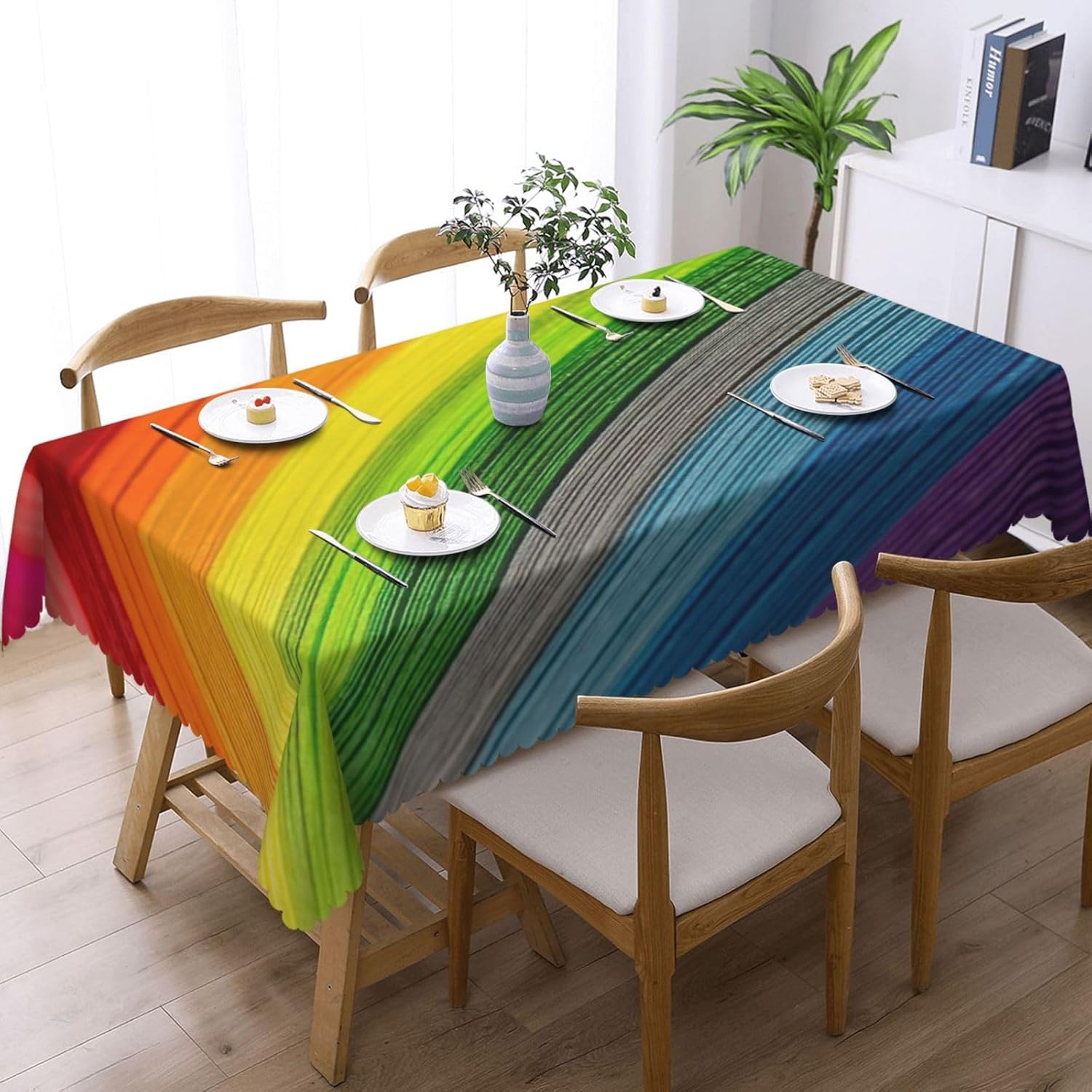 Questa tovaglia rettangolare con stampa a strisce color arcobaleno misura 137x183 cm Tovaglia con stampa a strisce color arcobaleno, realizzata in materiale poliestere, calda e morbida, buona resistenza alle pieghe, può essere lavata e riutilizzata, protegge dalla polvere e protegge da ammaccature, scheggiature e graffi. Tovaglia con stampa a righe color arcobaleno, può essere utilizzata sia all'interno che all'esterno, ideale per feste, matrimoni, campeggio, patio, compleanno in famiglia, buffet, barbecue, tavoli da cucina, ecc. Tovaglia quadrata con stampa a righe color arcobaleno, bordo in pizzo semicircolare, Attenzione: non candeggiare, non esporre alla luce solare, sono accettabili sia il lavaggio a mano che in lavatrice a temperatura ambiente e la stiratura a bassa temperatura. Se avete problemi o domande, contattateci, vi aiuteremo a rispondere entro 24 ore