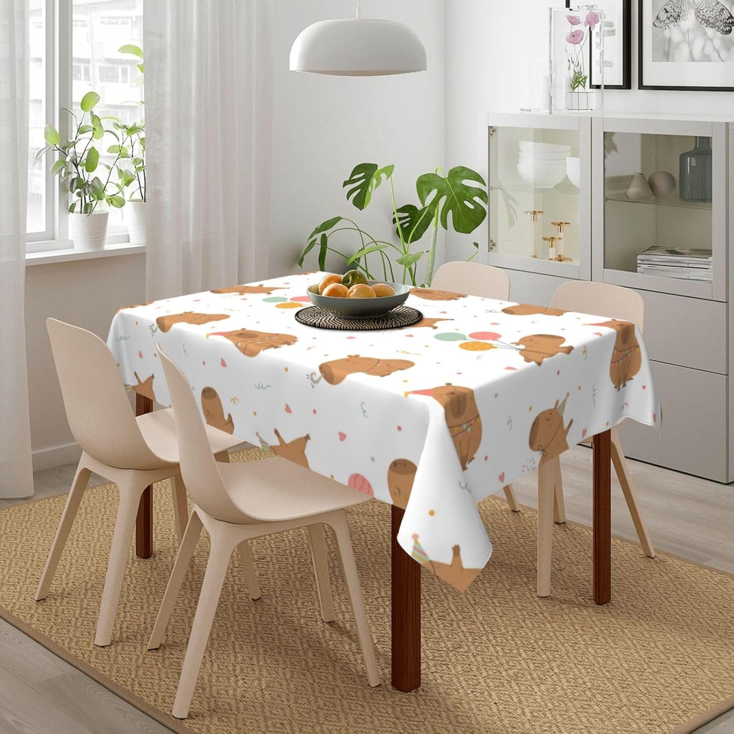 Tessuto tovaglia: la nostra tovaglia per compleanno Capybaras è realizzata in tessuto poliestere di alta qualità per una sensazione morbida e accogliente. Il materiale resistente all'acqua protegge il tuo tavolo da schizzi e macchie, rendendolo una tovaglia ideale per varie occasioni.,Resistente alle pieghe e riutilizzabile: questa tovaglia per compleanno di Capybaras è resistente alle pieghe e può essere facilmente lavata e riutilizzata per mantenere il tuo tavolo da pranzo fresco e pulito. Perfetto per scopi decorativi e funzionali, sia come tovaglia da pranzo che come tovaglia da esterno. Dimensioni della tovaglia: 54 x 72 pollici. Questa tovaglia rettangolare per compleanno di Capybaras si adatta a tavoli da 26 x 46 pollici a 38 x 54 pollici.,Uso versatile: la nostra tovaglia per compleanno di Capybaras è adatta a qualsiasi ambiente interno o esterno, inclusi caffè, cene, brunch, buffet, picnic, matrimoni e feste. È un'aggiunta versatile alla decorazione della tua tavola, adatta come tovaglia da picnic o tovaglia da esterno.,Decorazioni per la casa: queste tovaglie rettangolari per compleanno di Capybara non solo proteggono il tuo tavolo da graffi e macchie, ma aggiungono anche un tocco festoso alla tua sala da pranzo. La tovaglia è perfetta per valorizzare l'arredamento della tua casa mantenendo la tavola pulita e protetta