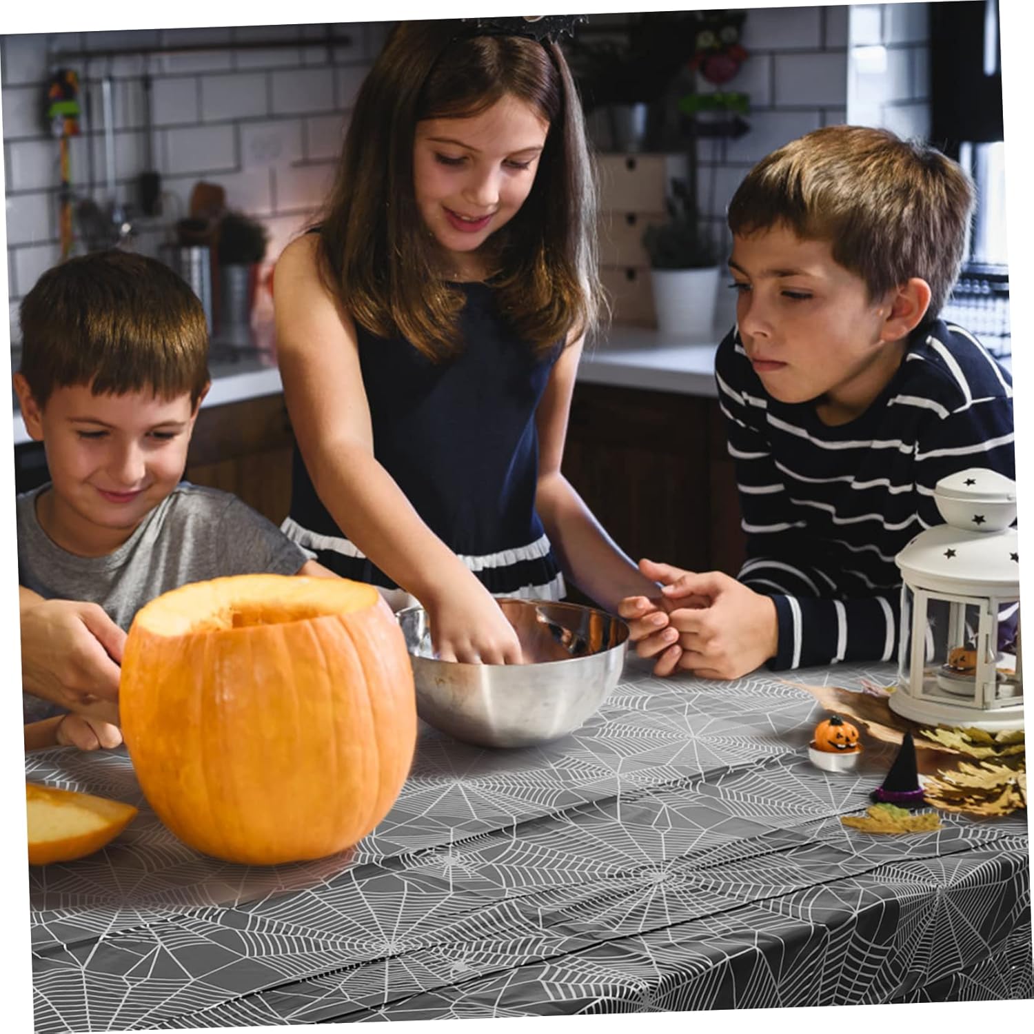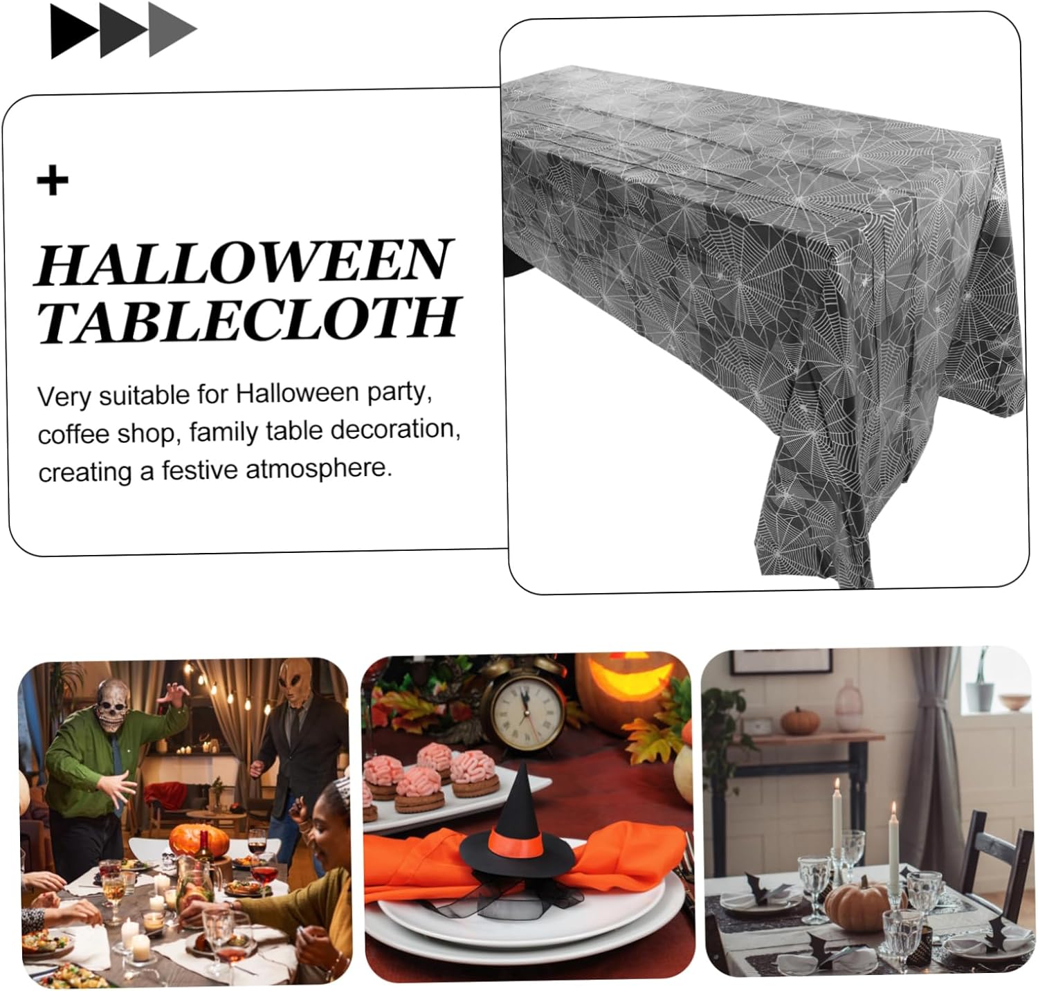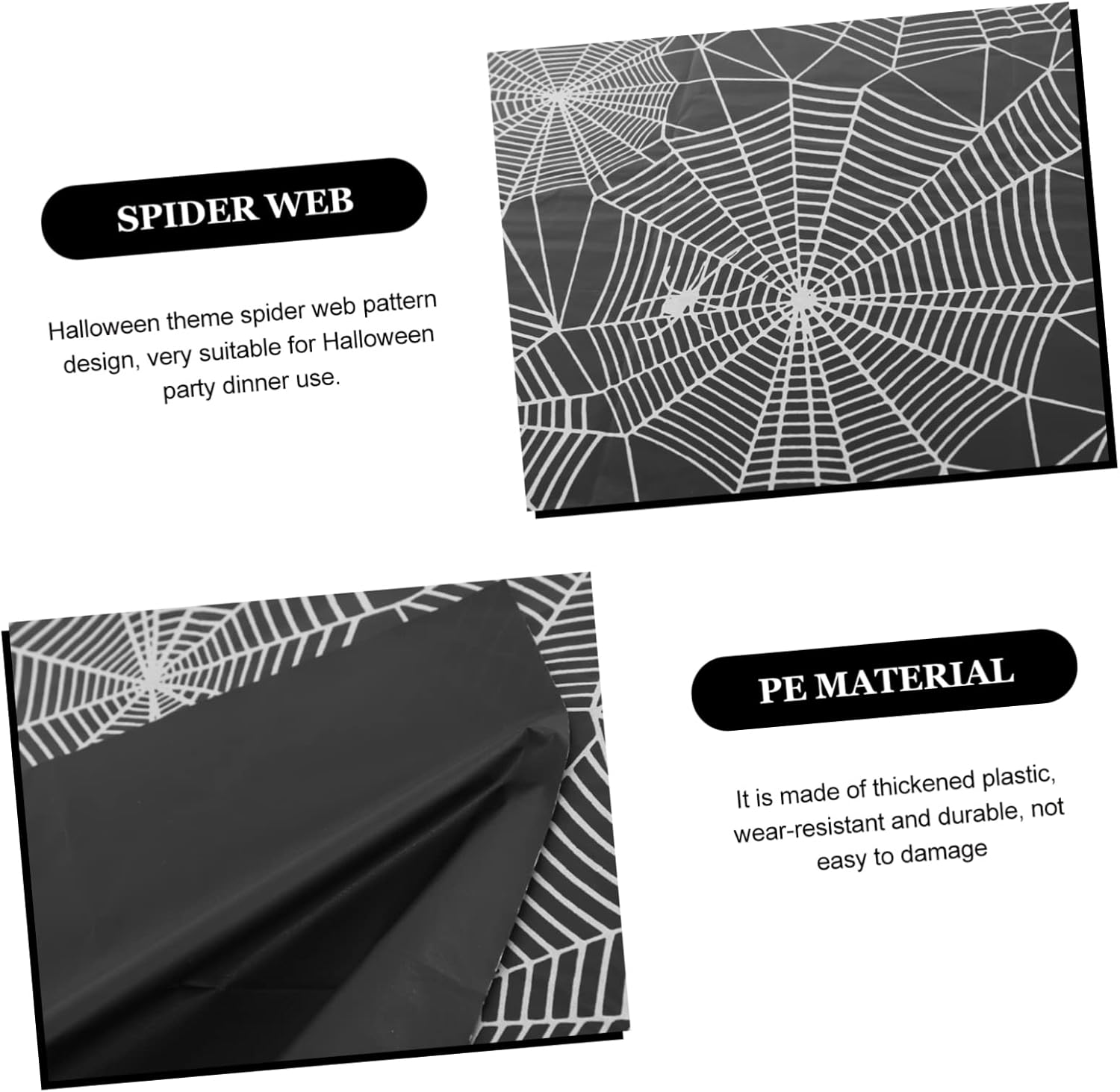 Tovaglia per feste: il design con motivo a ragnatela ti aiuta a creare un'atmosfera di festa spettrale sul tavolo di Halloween. Tovaglia decorativa - La dimensione di questa tovaglia è adatta alla maggior parte dei tavoli e soddisfa le tue esigenze, tovaglia di Halloween. Tovaglia vintage a ragnatela - Ottima decorazione di Halloween per creare un'atmosfera allegra sul tavolo della ragnatela di Halloween. Decorazione da tavola Web - Protegge bene la tavola e il cibo dalle macchie sul tavolo, decorazioni di compleanno horror. Tovaglia per feste di Halloween - Non è adatta solo per l'uso domestico, ma anche per decorare tavoli in ristoranti, caffè, ecc., decorazioni per tavoli da festival.