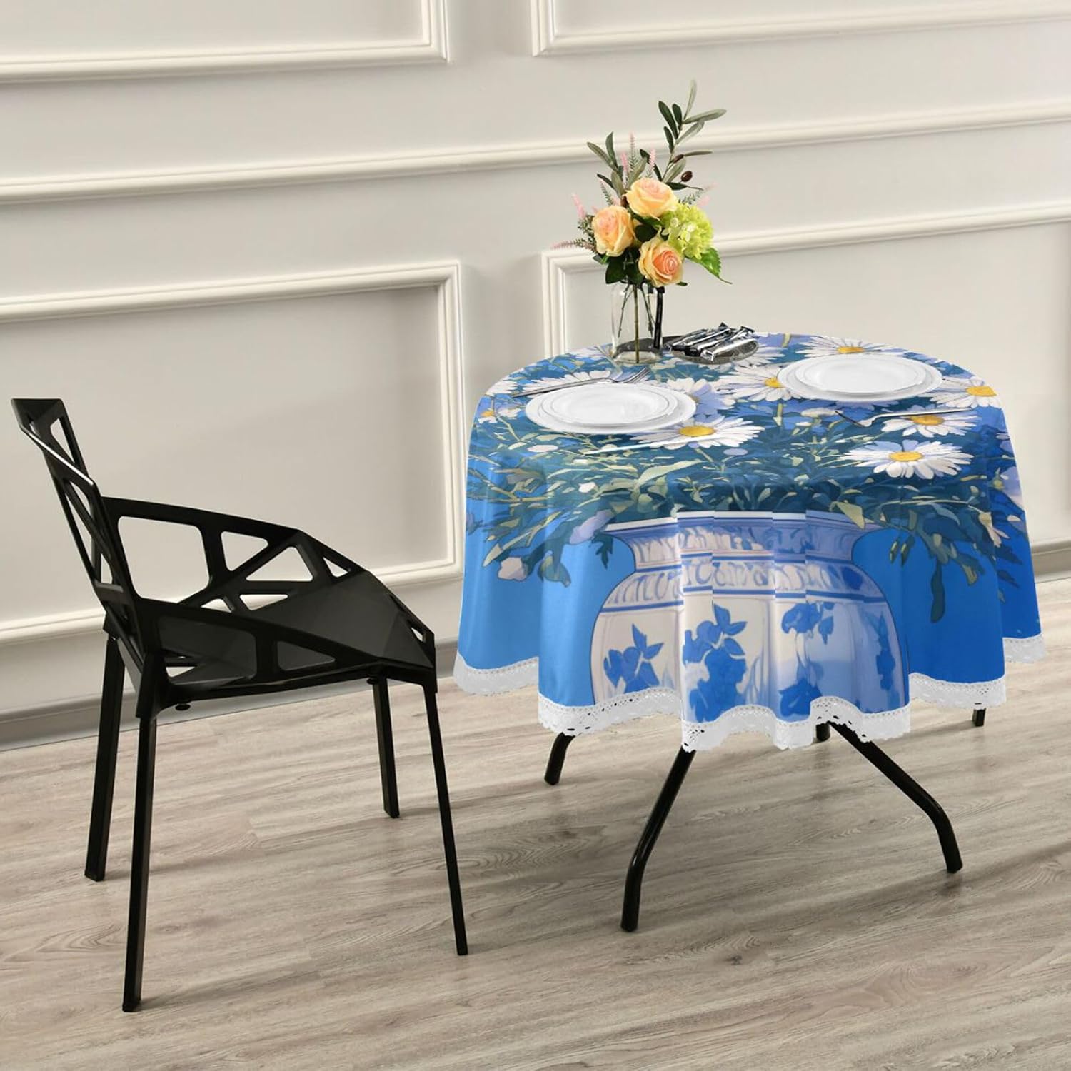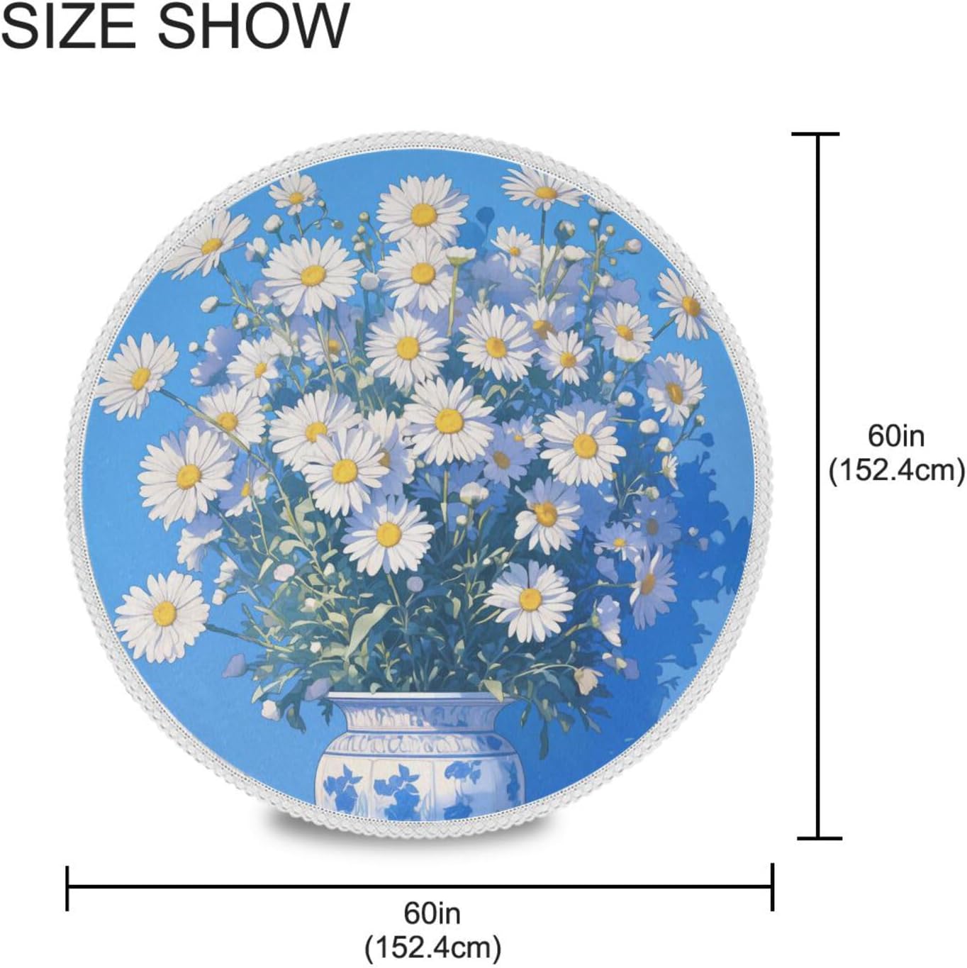 Buon materiale: realizzato in poliestere ecologico con tessuto spesso. Questi materiali della tovaglia in tessuto hanno una forte resistenza al calore, una resistenza favorevole alle rughe e una lunga durata. 【Misura adatta】 Queste tovaglie in tessuto hanno un diametro di 60 pollici e il pizzo bianco è largo 4 pollici. Adatto per tavoli rotondi con un diametro compreso tra 30" e 40". MULTIUSO - Protegge il tessuto della tovaglia da graffi, macchie, schizzi e usura imprevisti. Perfetto per feste, buffet, catering, cene, celebrazioni, attività quotidiane al chiuso, brunch, picnic all'aperto e altro ancora. Regala alla tua famiglia e ai tuoi amici una vacanza meravigliosa e lussuosa insieme. Design: l'elegante processo di stampa è perfetto per la decorazione del tessuto della tovaglia. I bordi in pizzo sono delicati e il filo non si stacca facilmente, aggiungendo un tocco di eleganza alla tua tavola e alla decorazione della casa. Consigli per il lavaggio: questa tovaglia in tessuto è lavabile a mano o in lavatrice. Lascialo asciugare appeso e non sbiadirà.