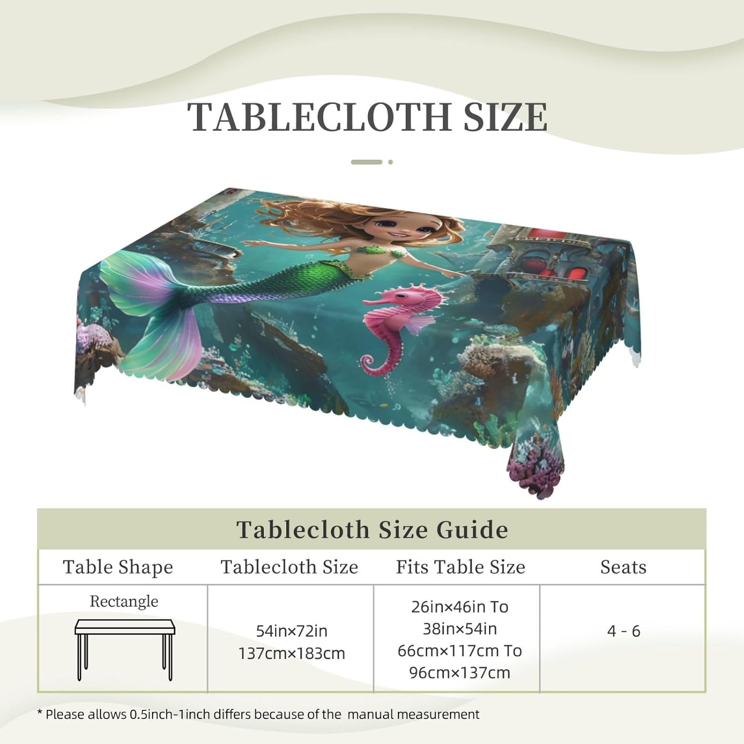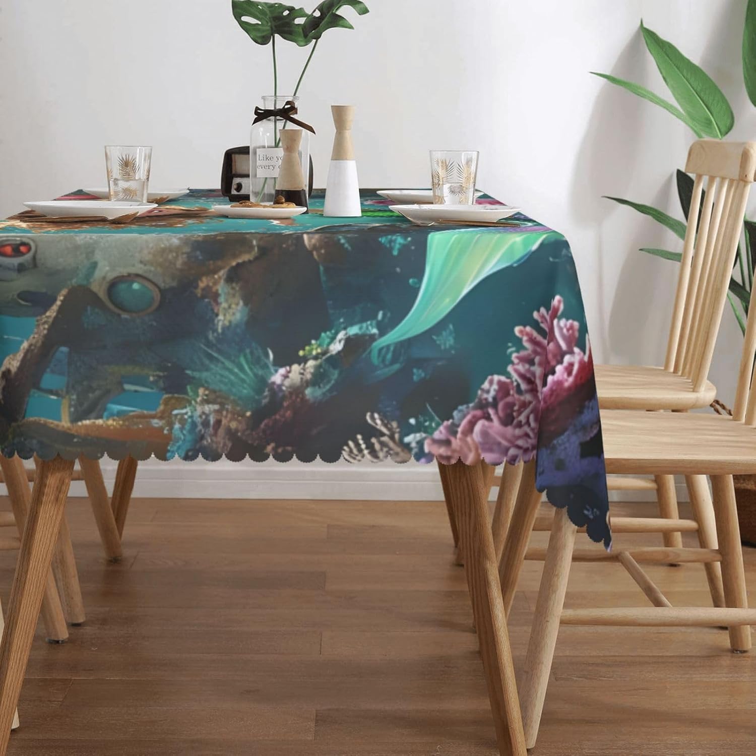 【Castello della Sirena Subacqueo Impermeabile e Decorativo】Proteggi e abbellisci la tua tavola con la nostra tovaglia impermeabile di alta qualità. Aggiunge un tocco di eleganza a qualsiasi sala da pranzo e protegge il tavolo da schizzi e macchie. VESTIBILITÀ PERFETTA: questa tovaglia quadrata è progettata per adattarsi a tavoli larghi fino a 38 pollici e lunghi fino a 54 pollici. Le dimensioni sono 54" x 72" e forniscono una copertura sufficiente per il tuo tavolo. 【Design Elegante】La tovaglia presenta una stampa su un lato su tutta la superficie con un bellissimo bordo in pizzo, aggiungendo un tocco di raffinatezza alla tua esperienza culinaria. MATERIALE IN POLIESTERE DI ALTA QUALITÀ: Realizzata al 100% in fibra di poliestere, la nostra tovaglia offre una sensazione calda e morbida, eccellente resistenza alle pieghe e facile manutenzione. È lavabile in lavatrice e può essere riutilizzato per garantire protezione e decorazione durature alla tua tavola. MULTIUSO - Adatta per cene al chiuso e all'aperto, questa tovaglia è perfetta per bar, cene, brunch, picnic, matrimoni e feste. Offre un equilibrio ideale tra funzionalità ed estetica.